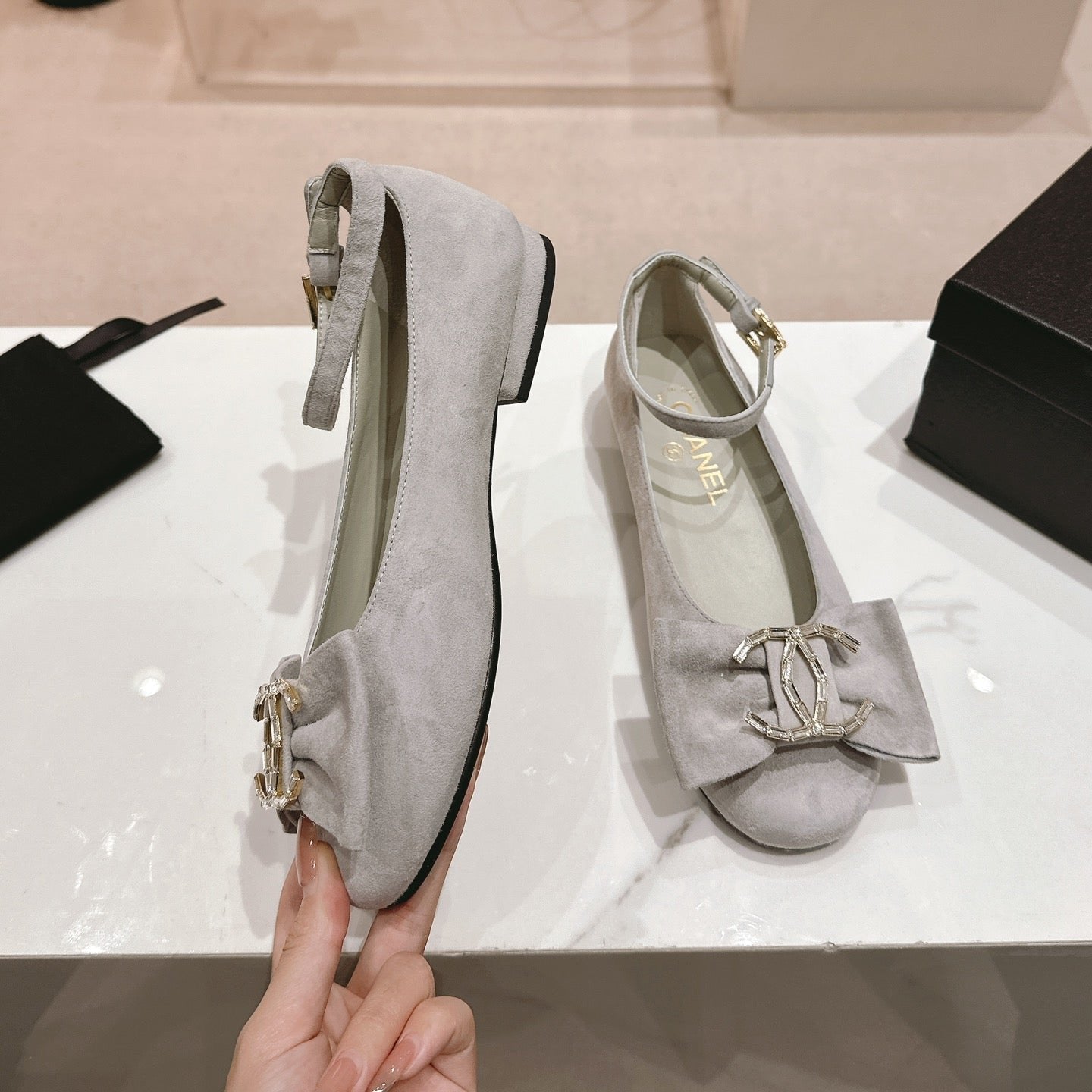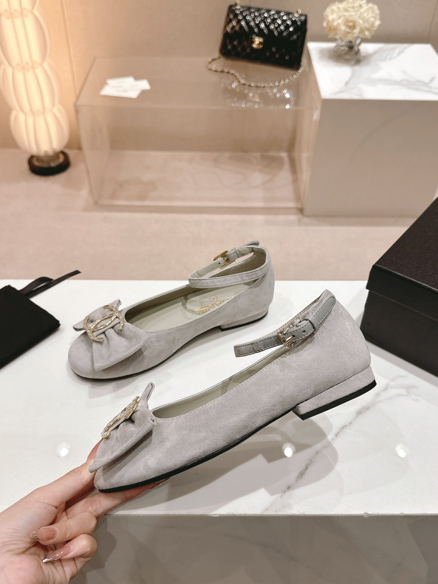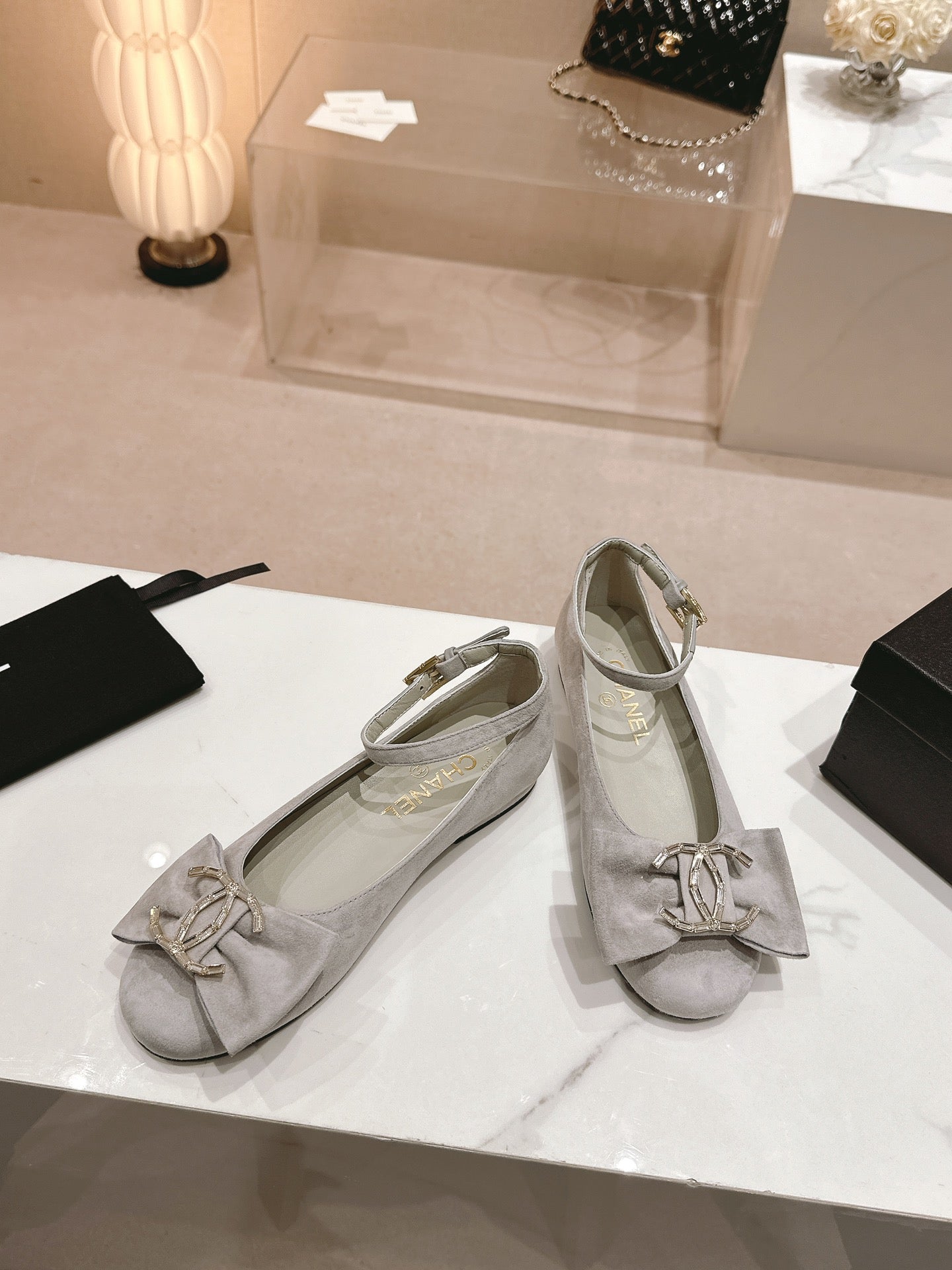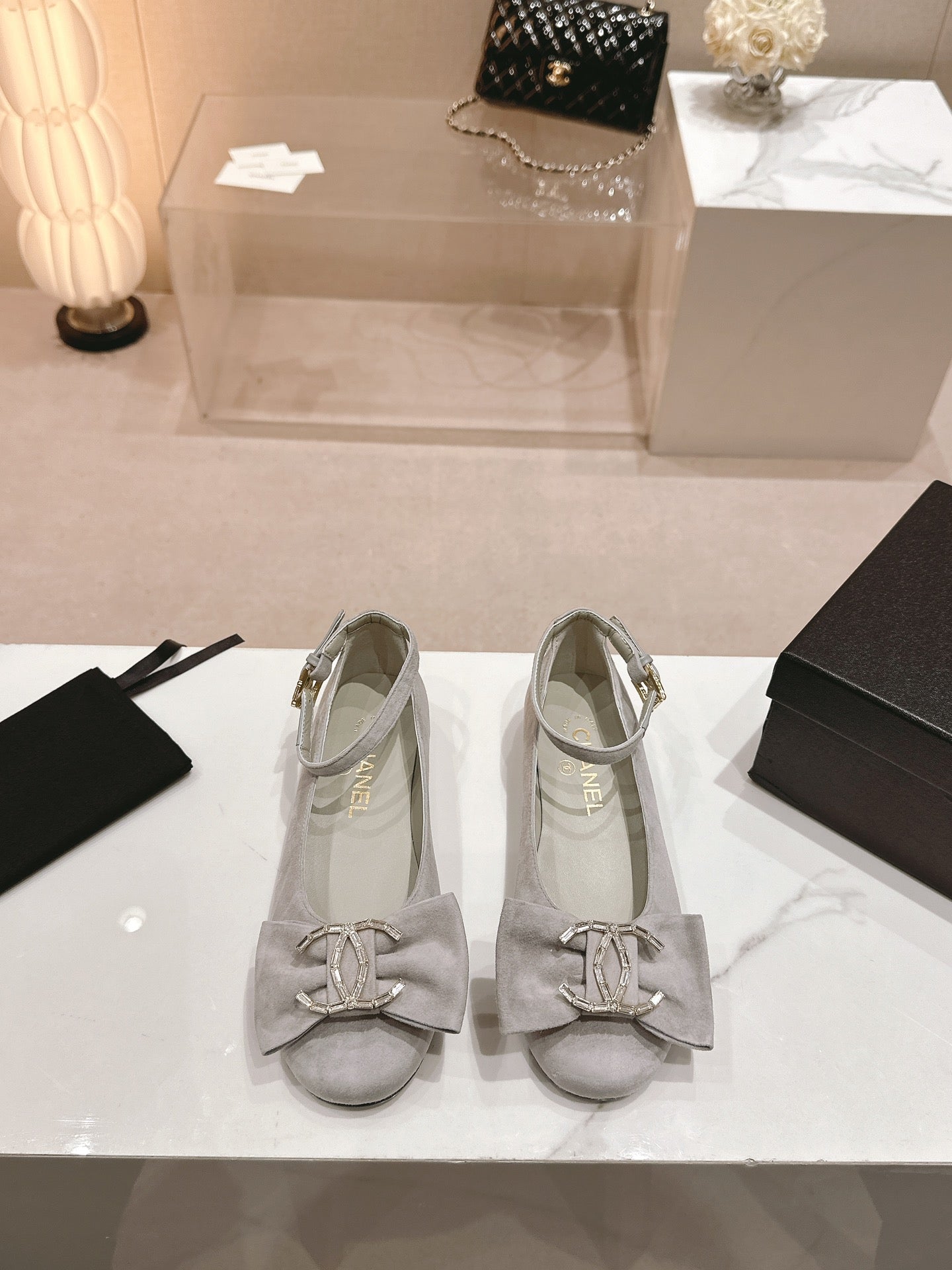 CC Mary Jane Grey Bow Tie Velvet And Lambskin