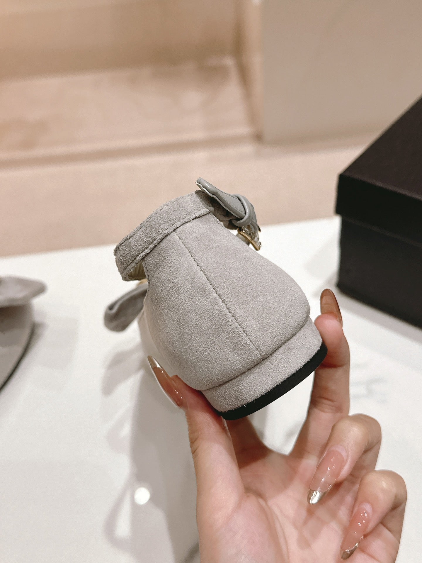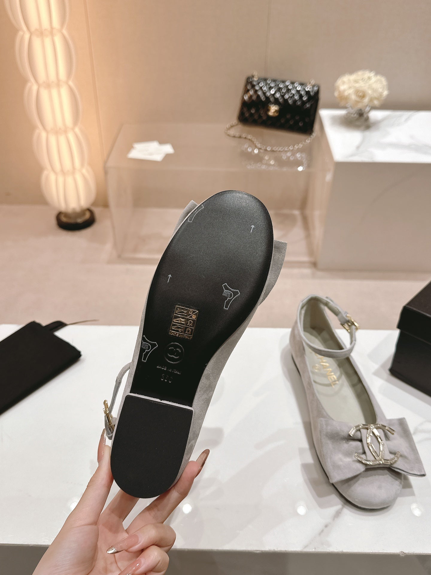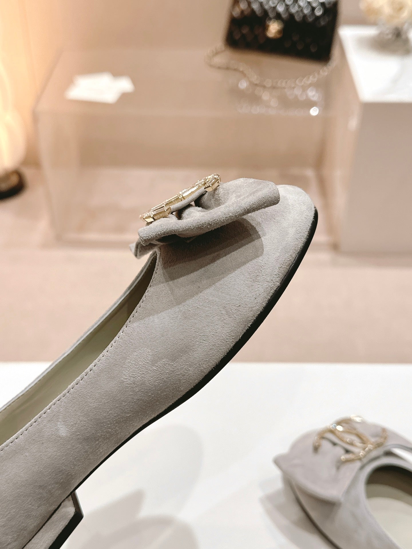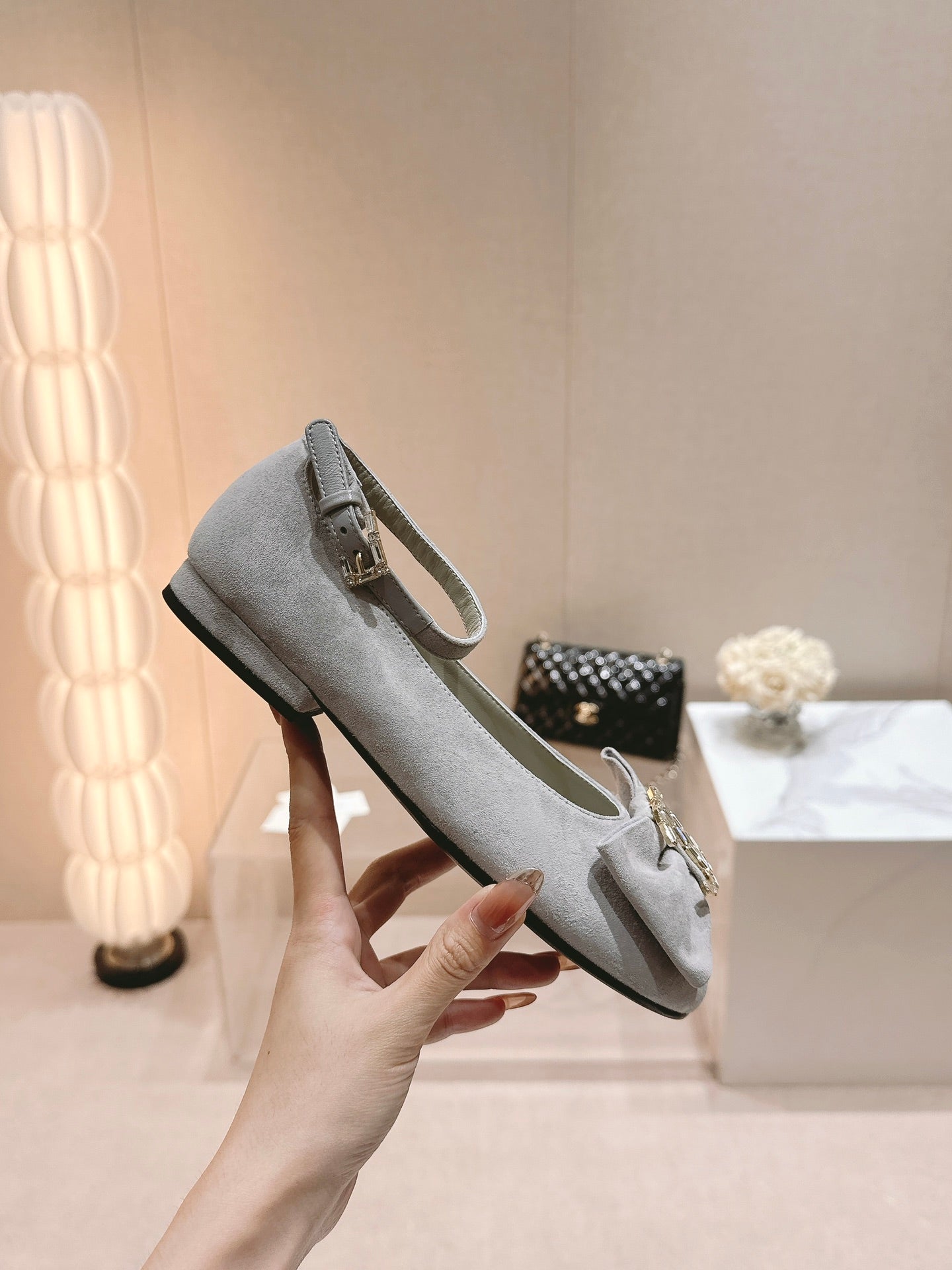 CC Mary Jane Grey Bow Tie Velvet And Lambskin