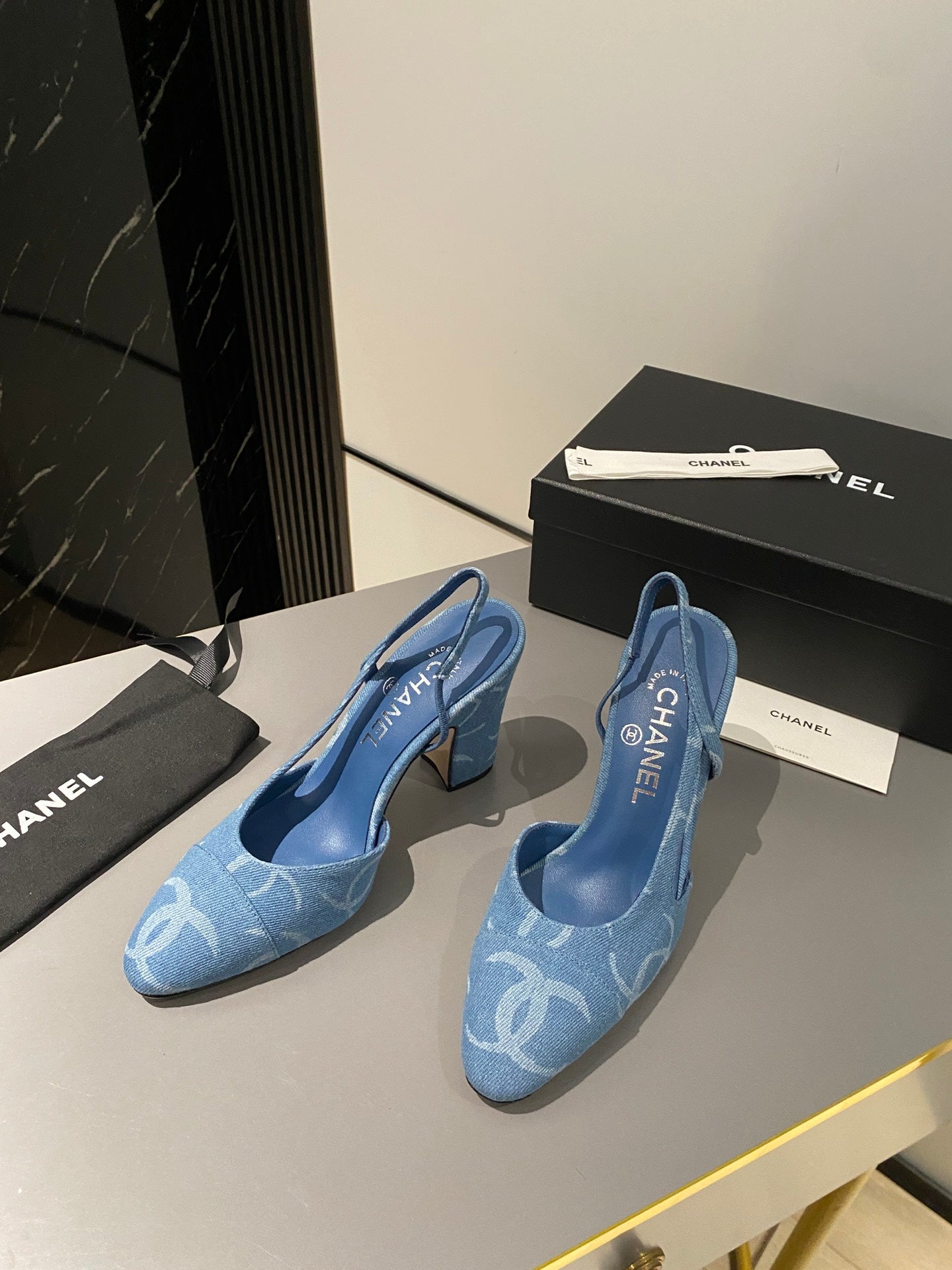 CC Slingback 95mm Light Blue Denim Fabric