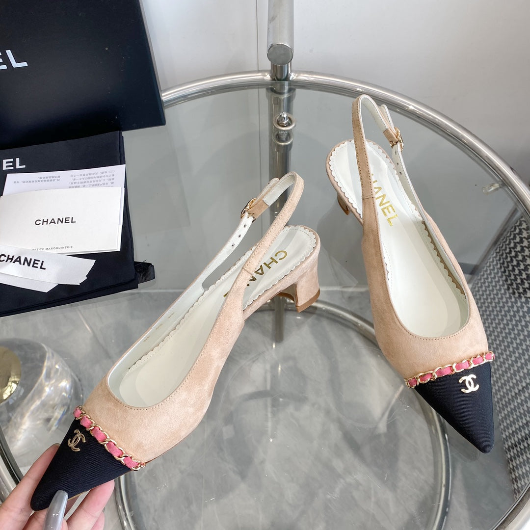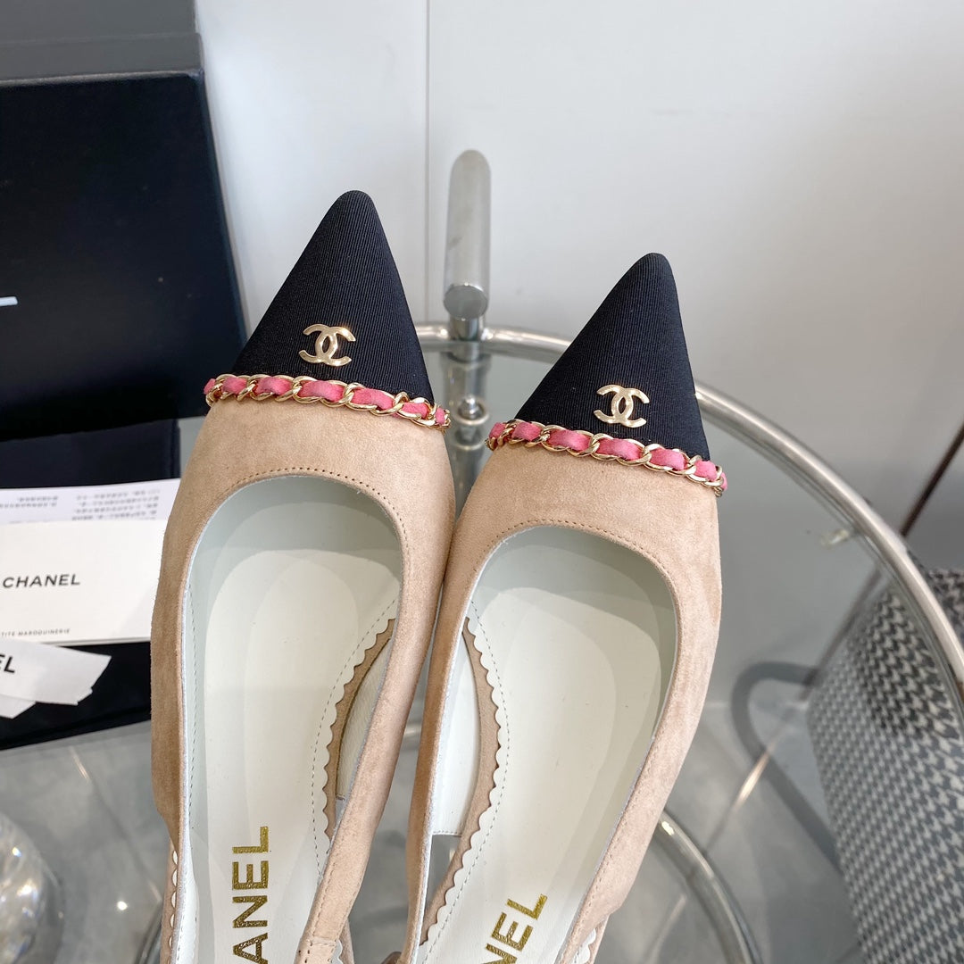 cc slingback pumps 45 beige seude black grosgrain point toe 582852