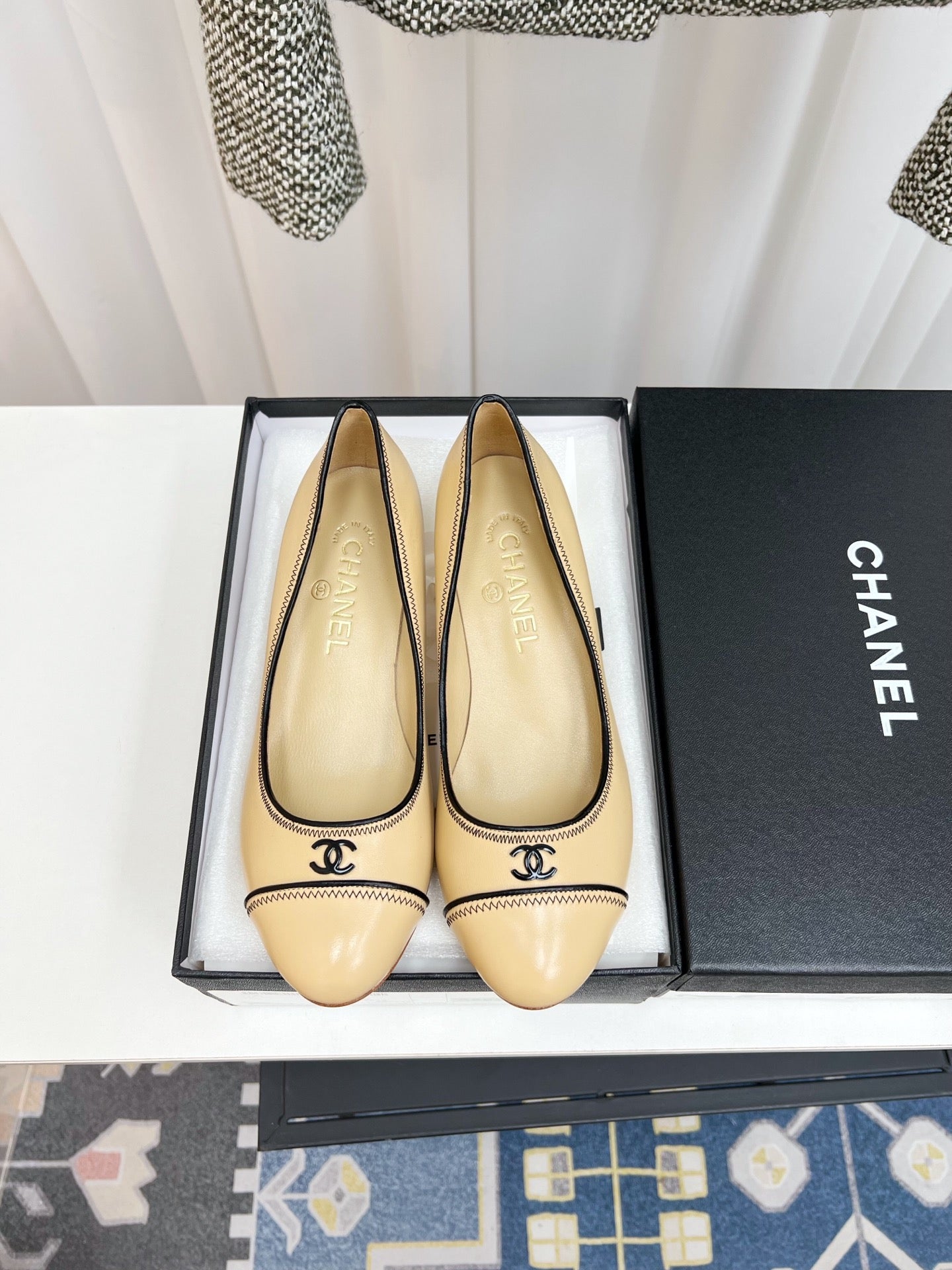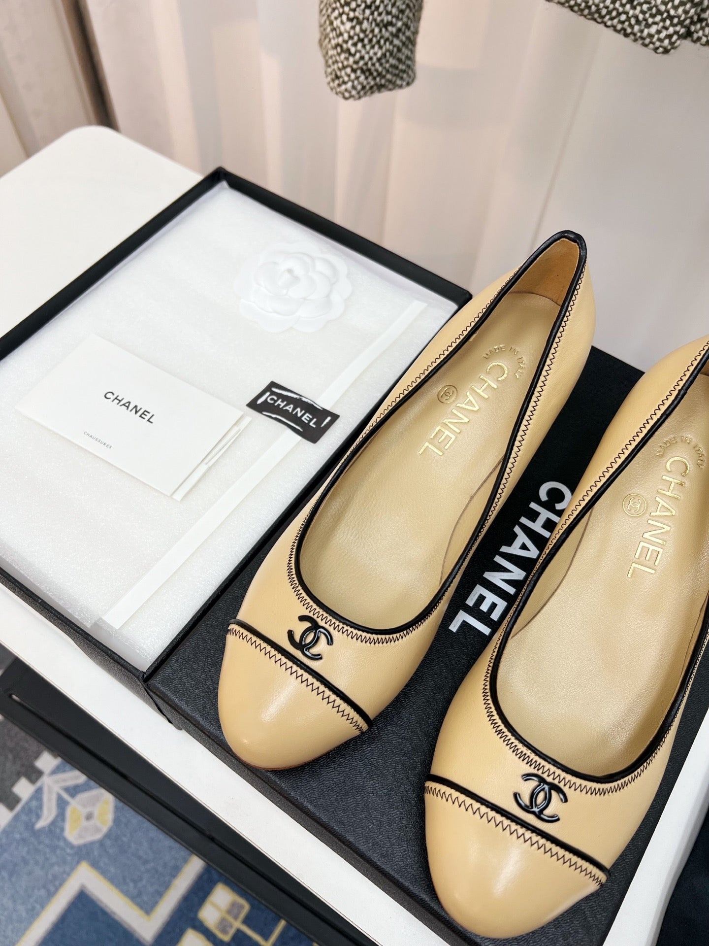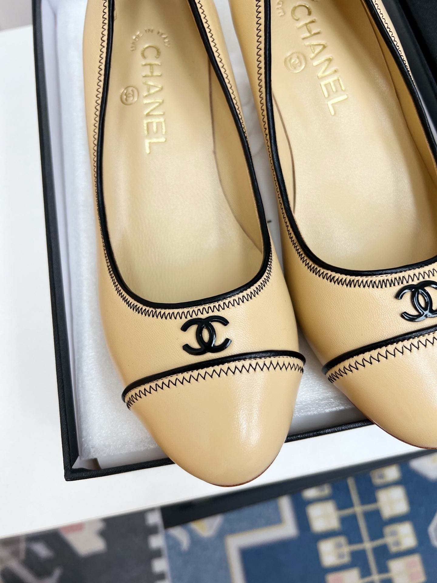 CC Slingback With Black Contrast Stitching Beige Lambskin 476708