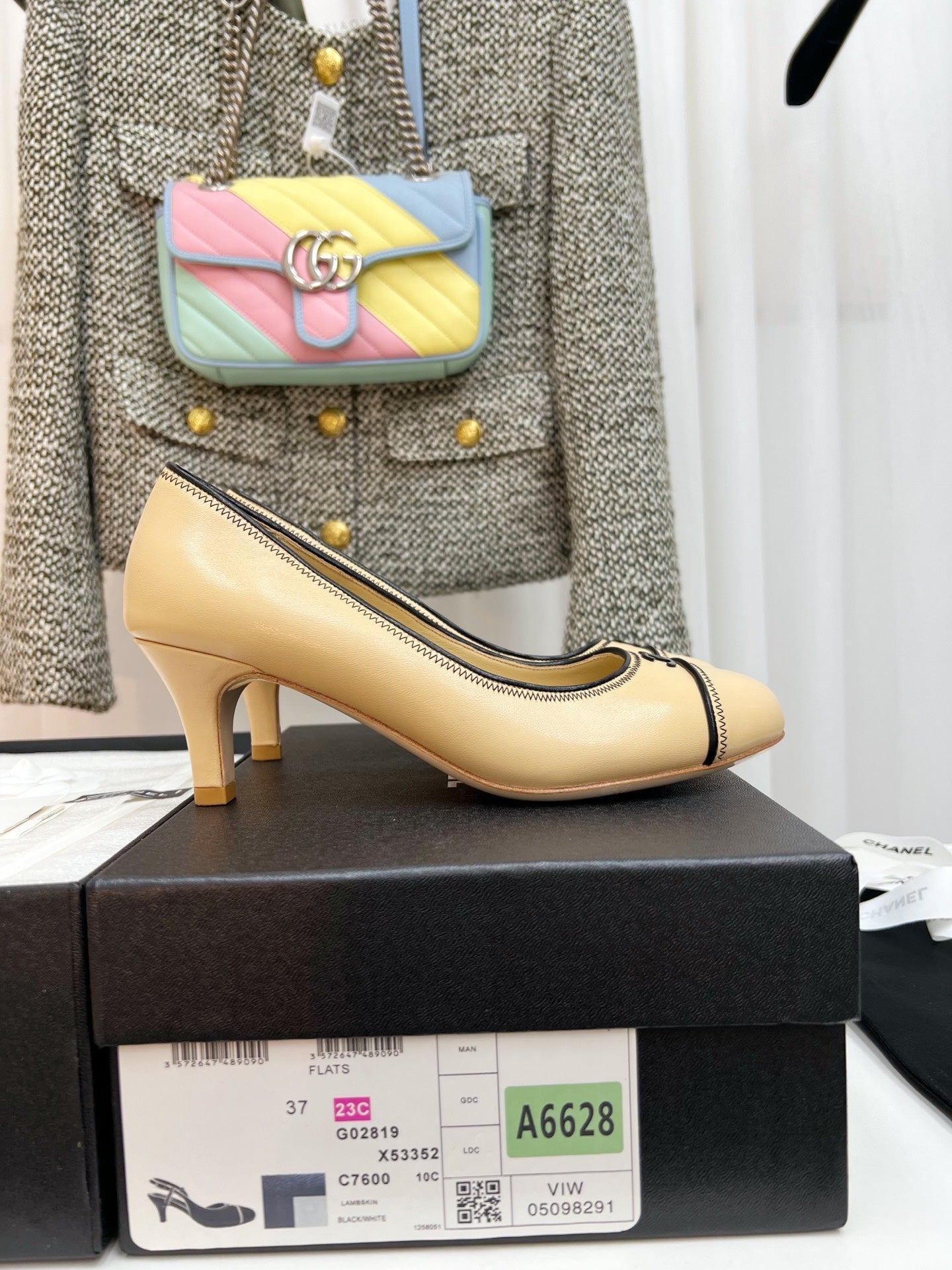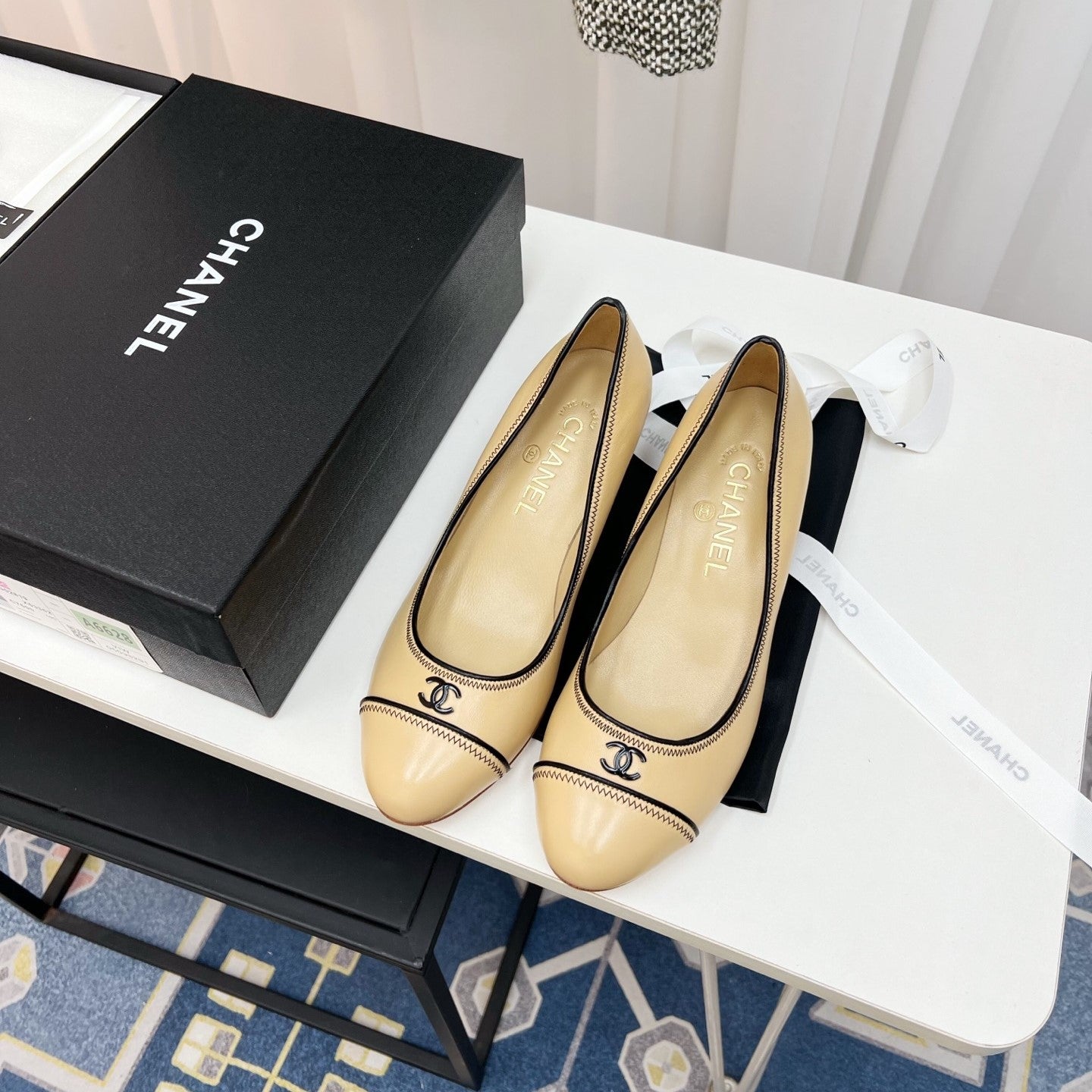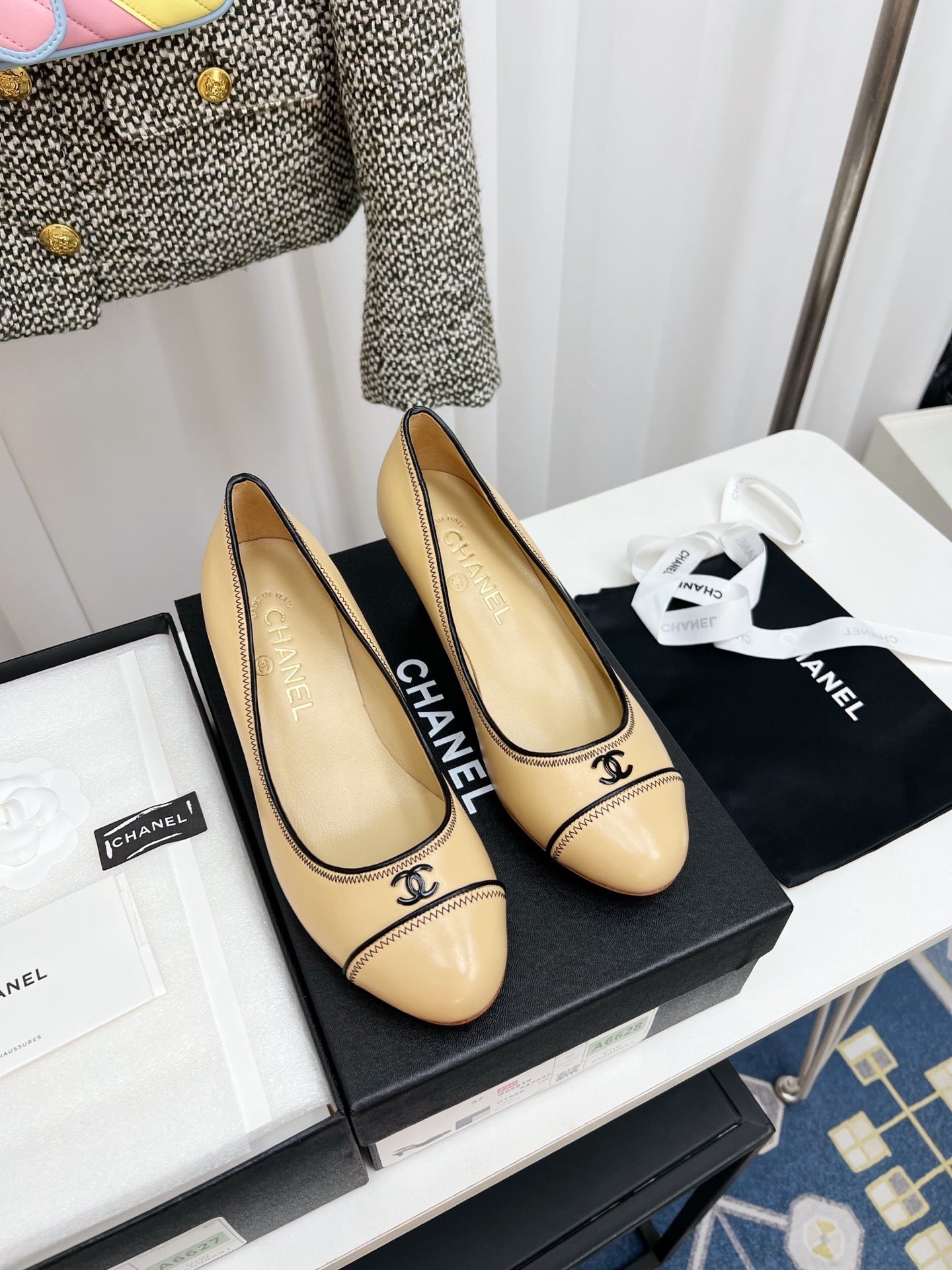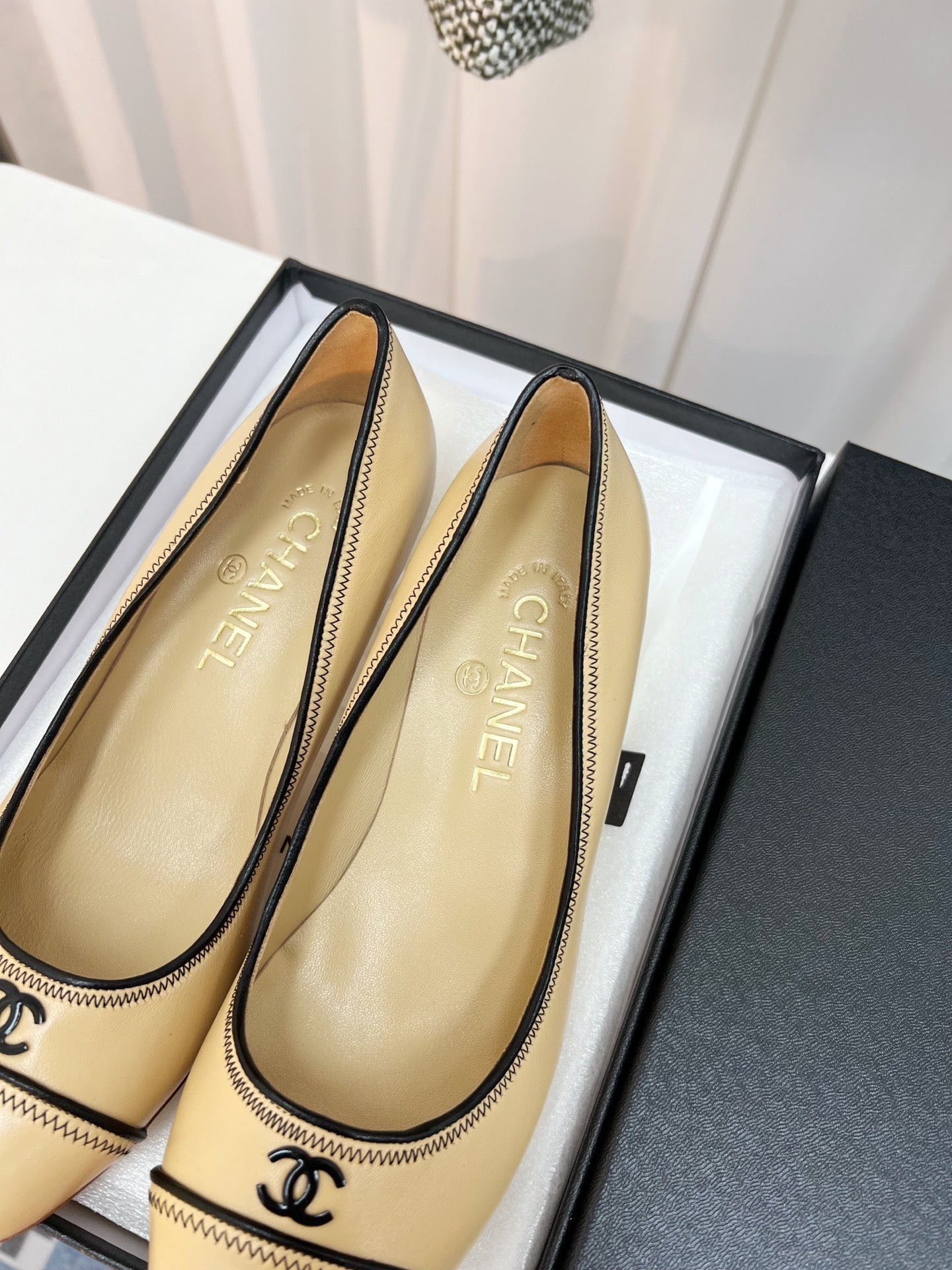 CC Slingback With Black Contrast Stitching Beige Lambskin 476708