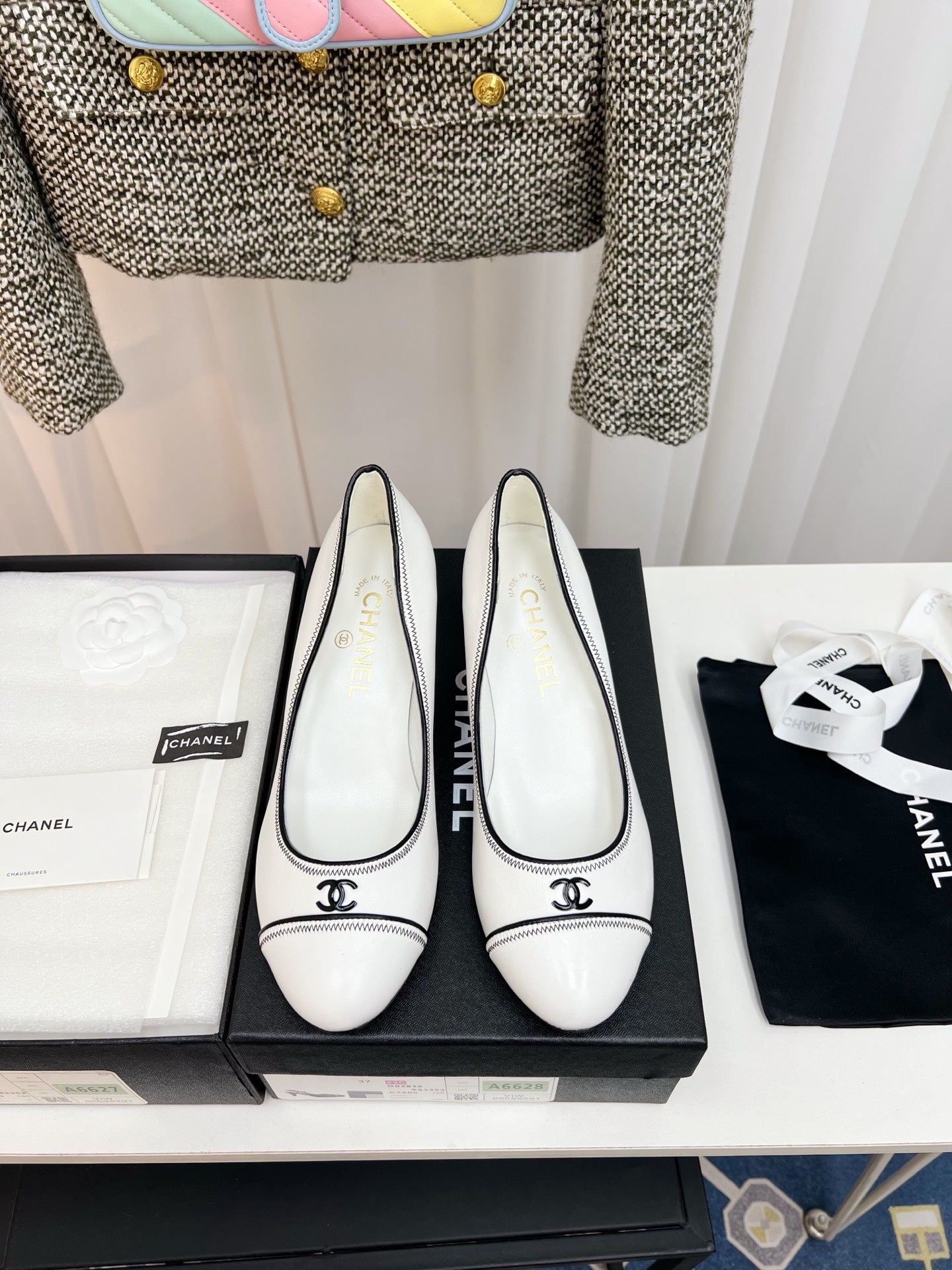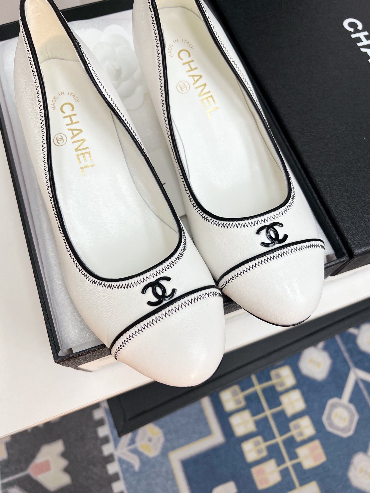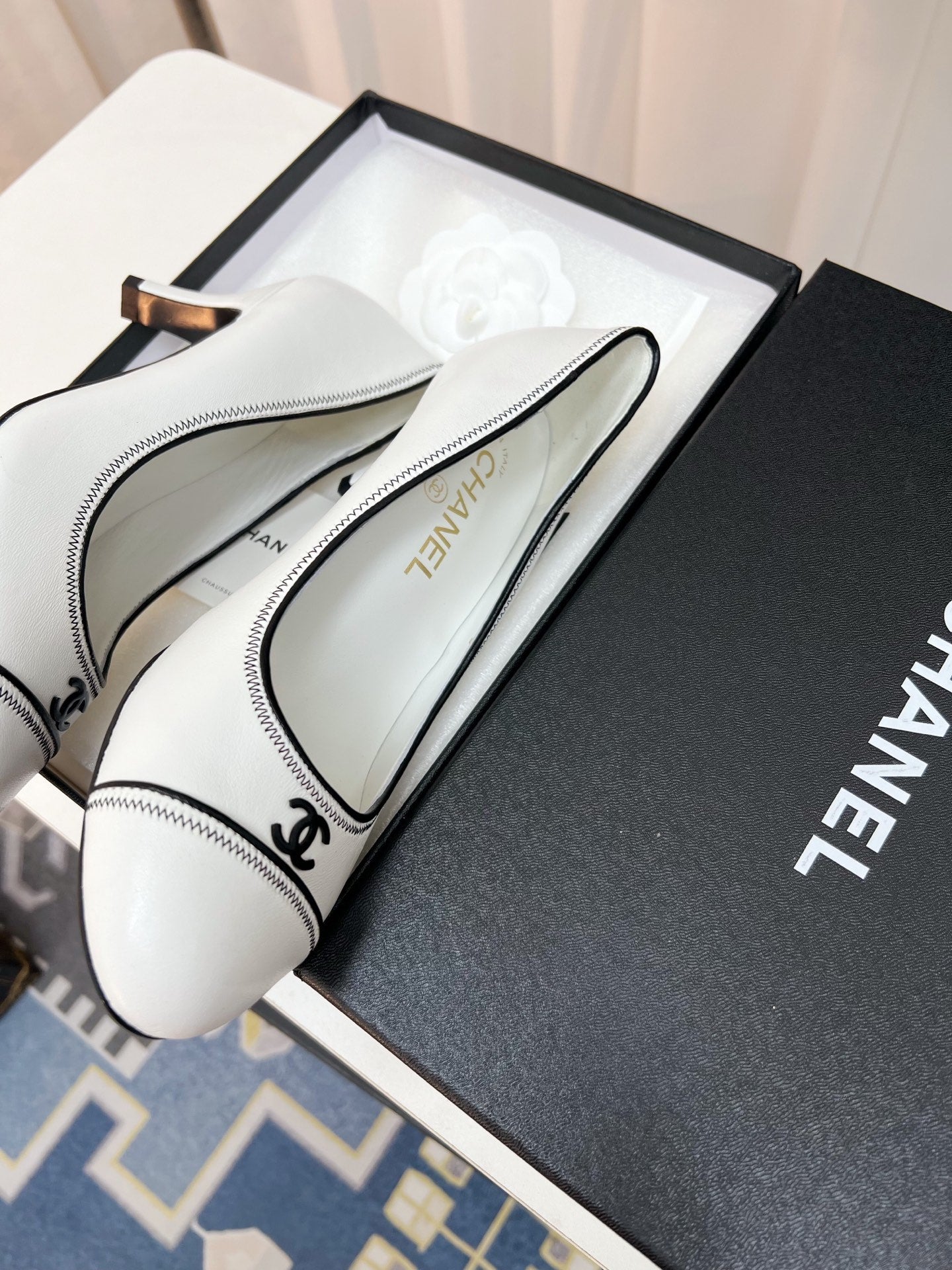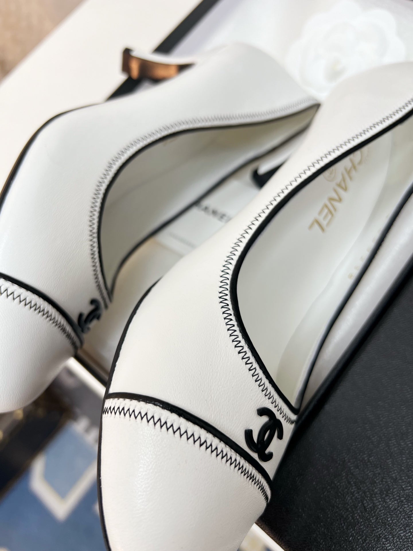 CC Slingback With Black Contrast Stitching White Lambskin 476709