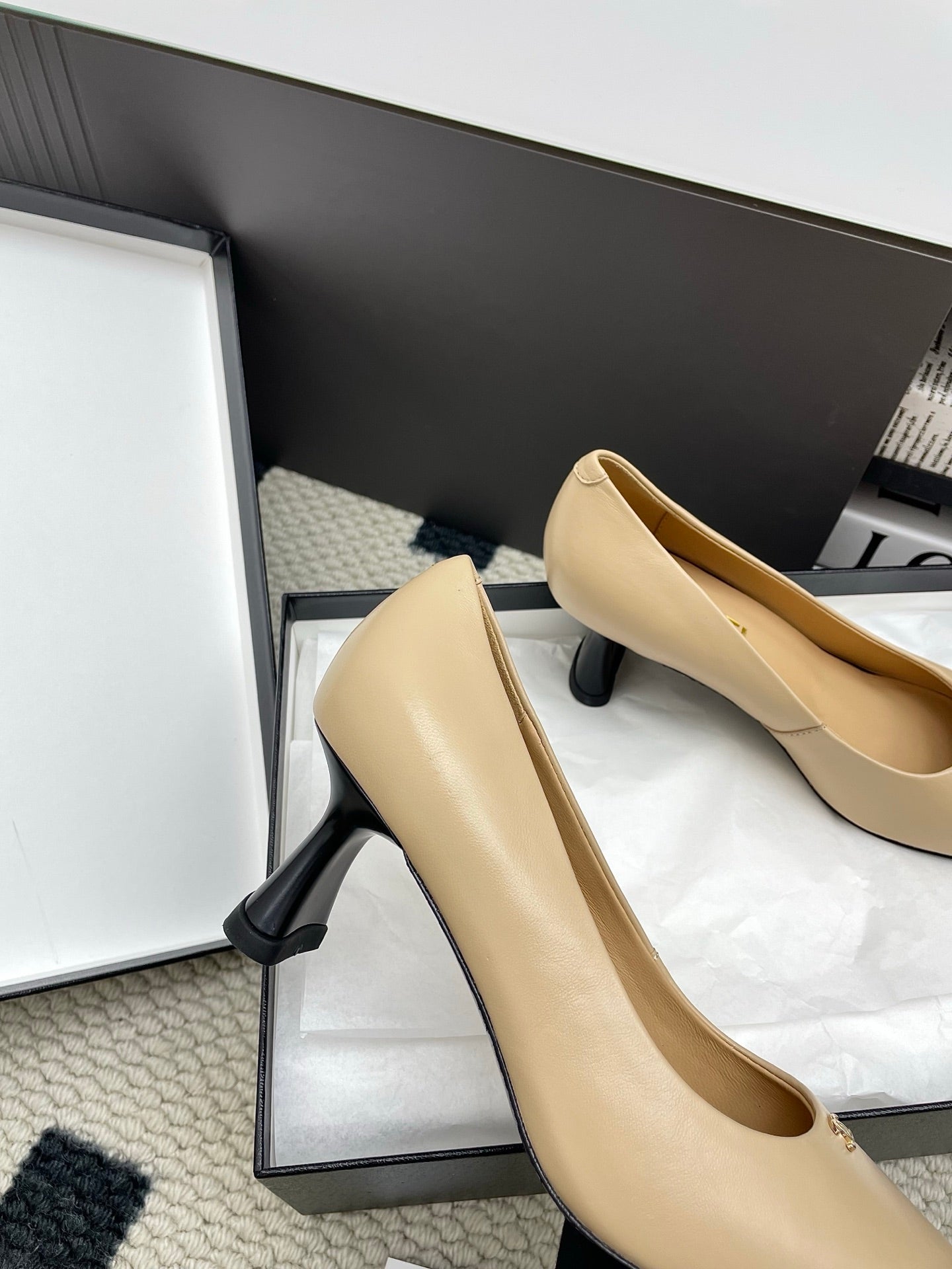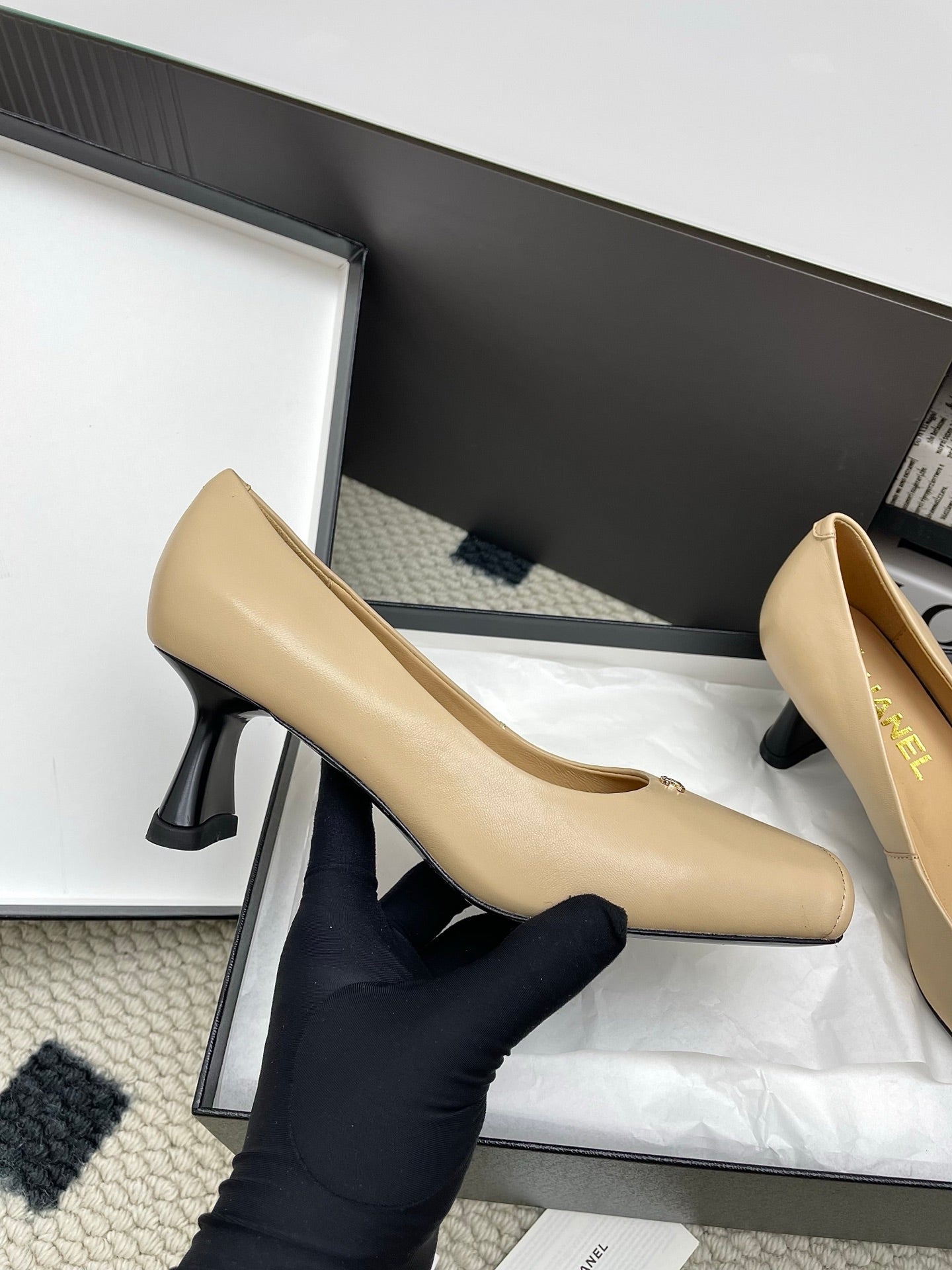 CC Square-Toe Pumps 65mm Beige Sheepskin 427014