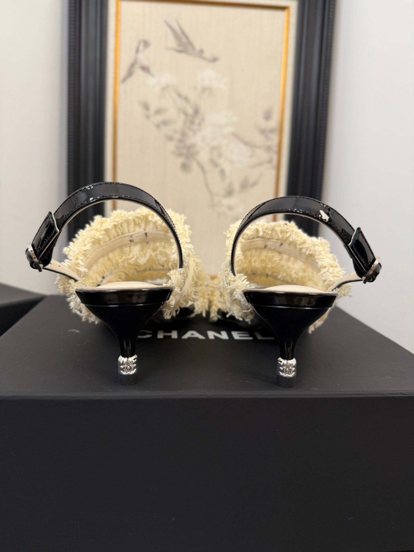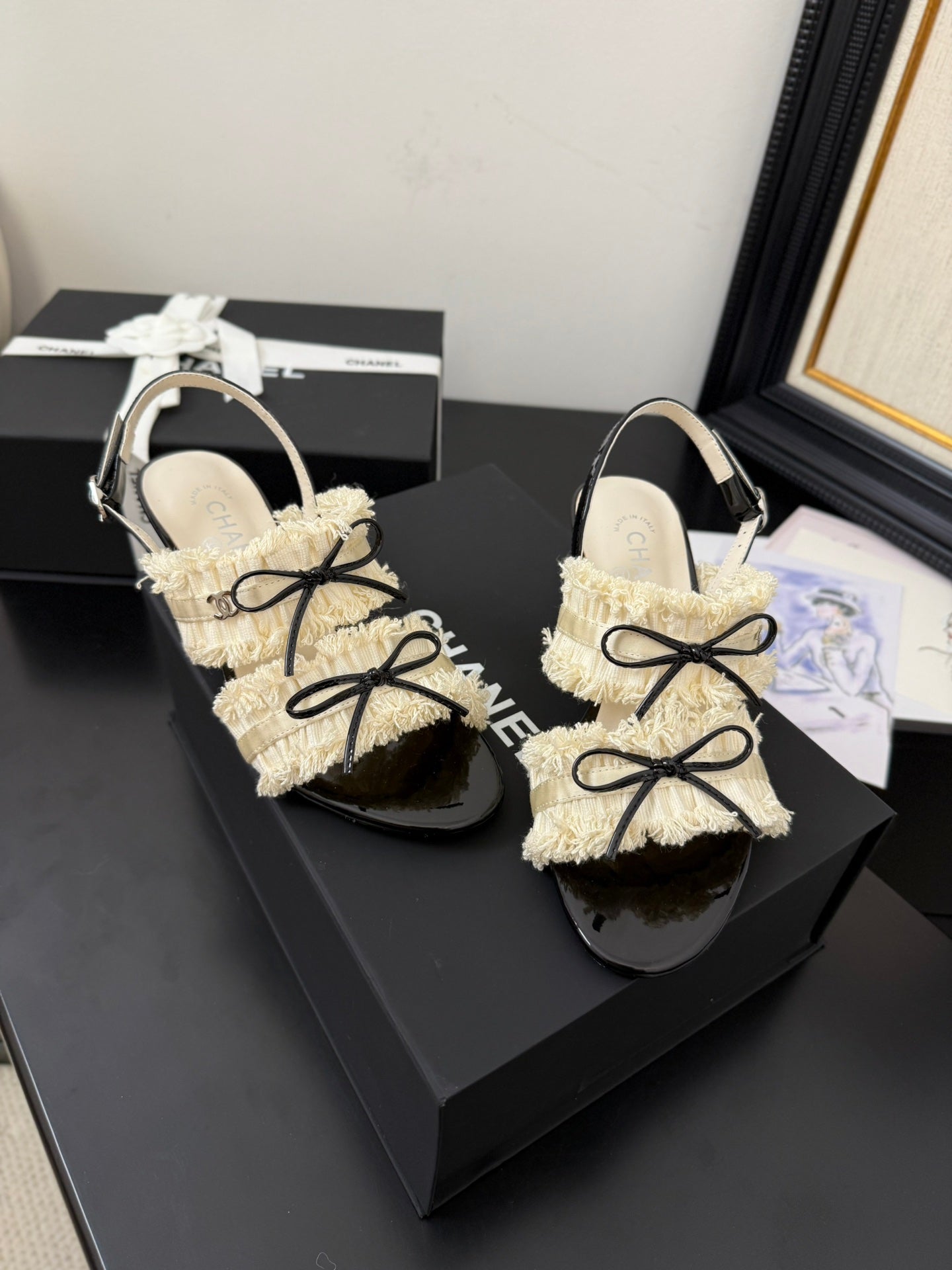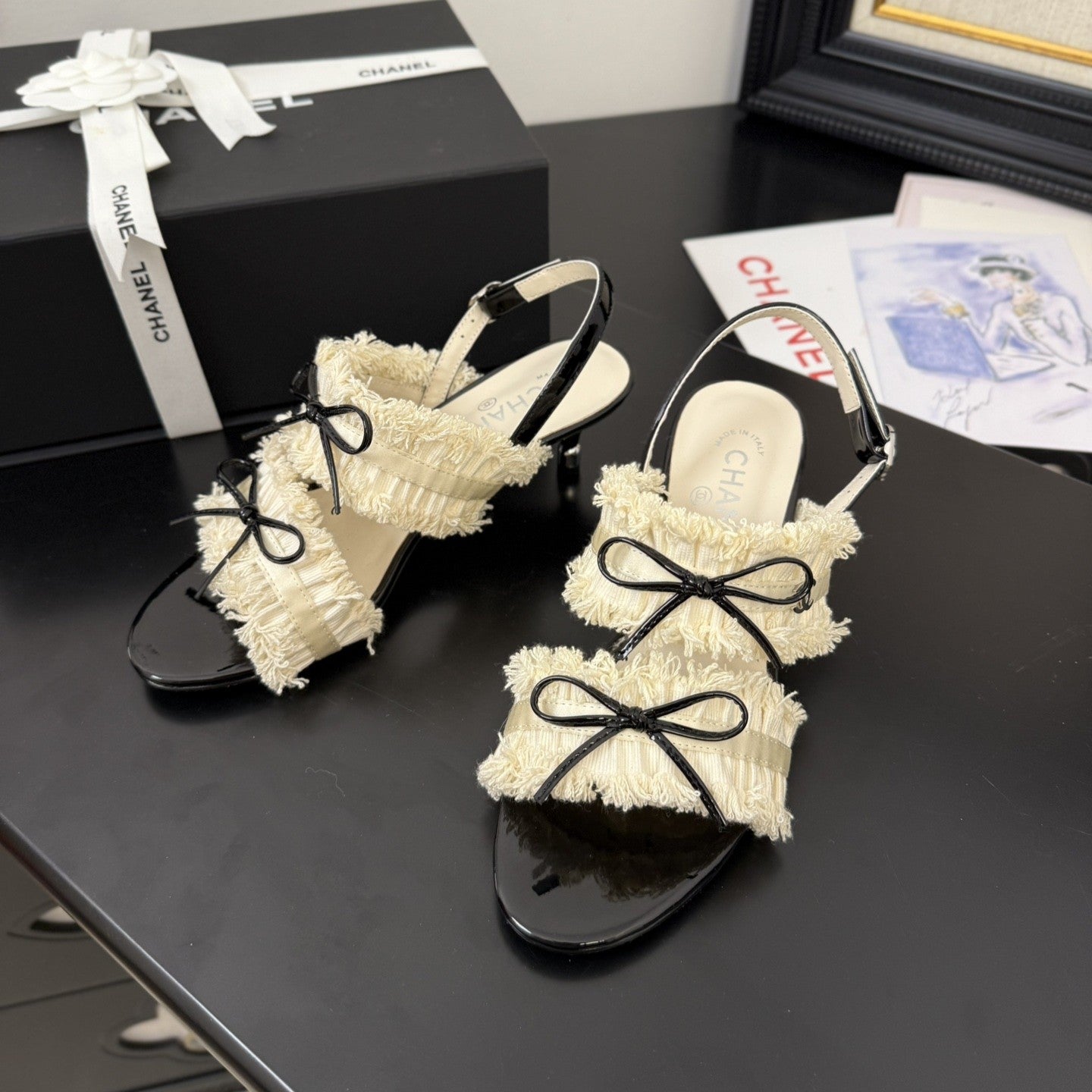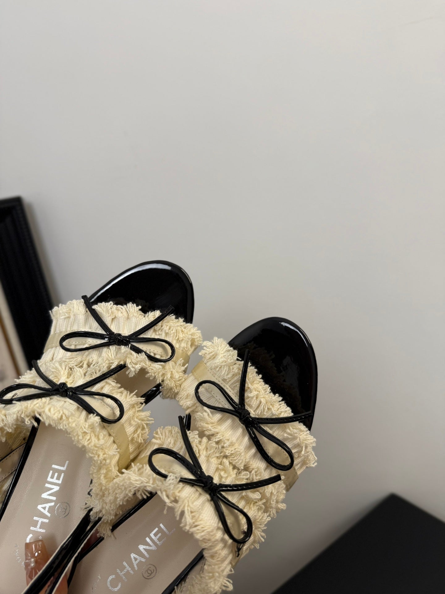 cc25 slingback sandal ̣65mm bow black grosgrain white canvas 233589