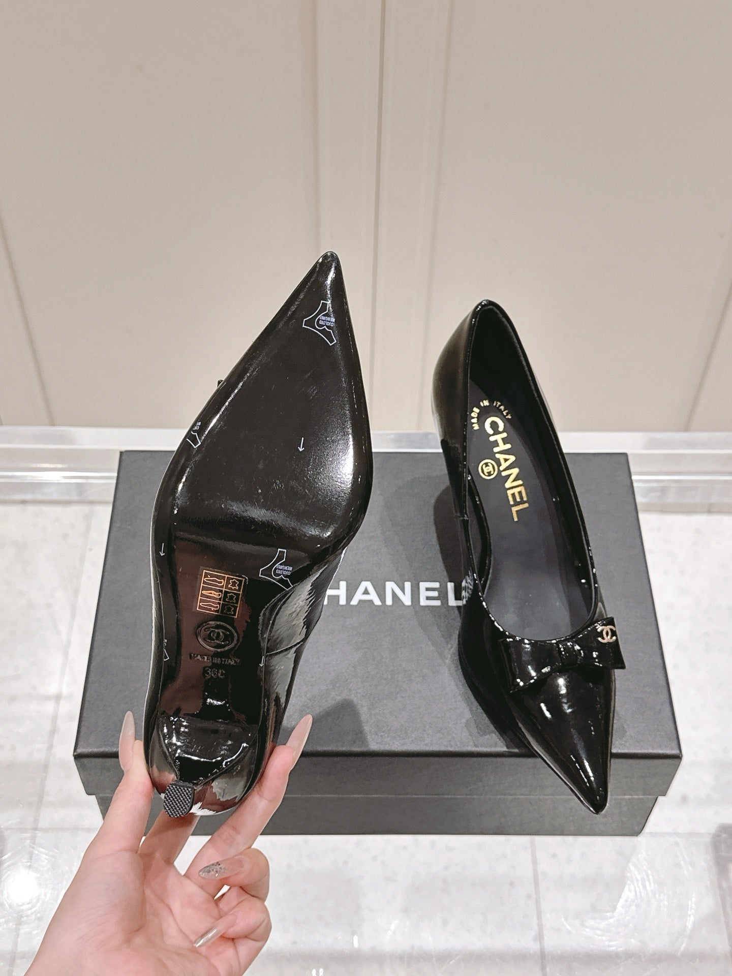Chanel 25A Heel Pump Black Patent Calfskin 393069