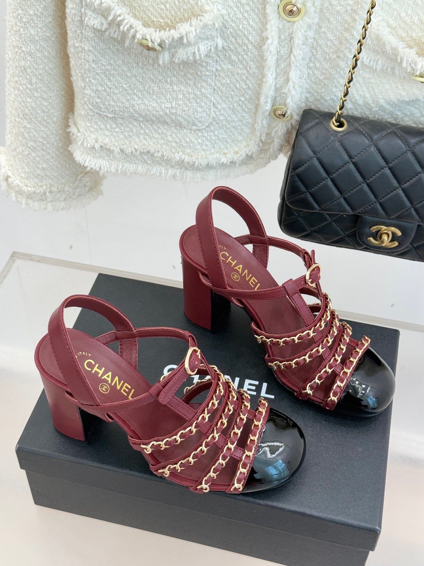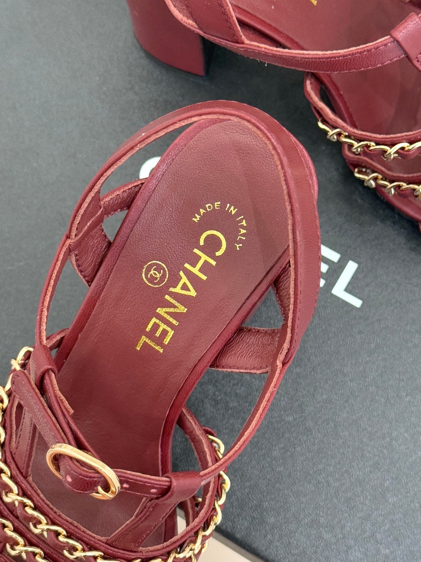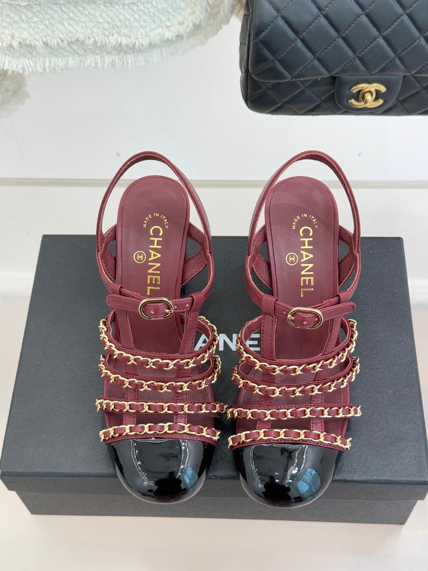 - Materials: Lambskin & Patent Leather