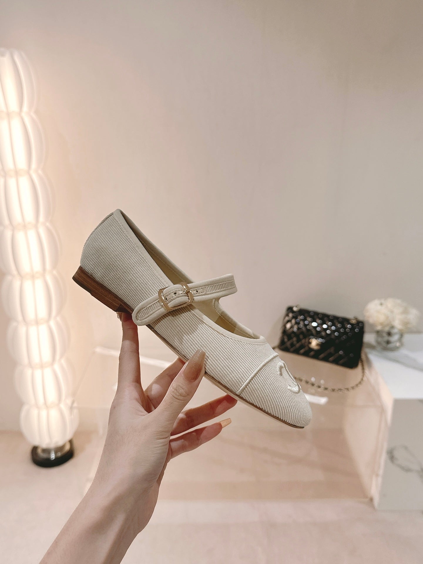 mary jane flat white corduroy
