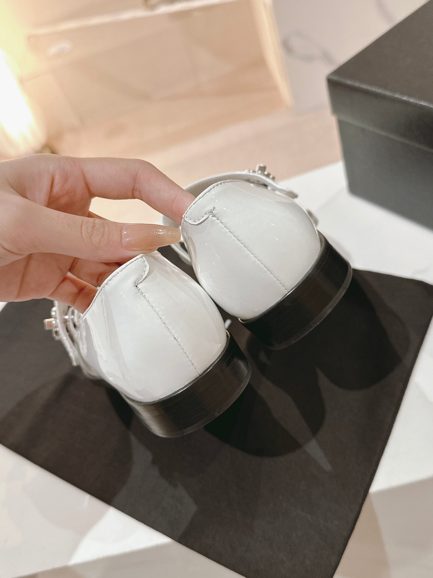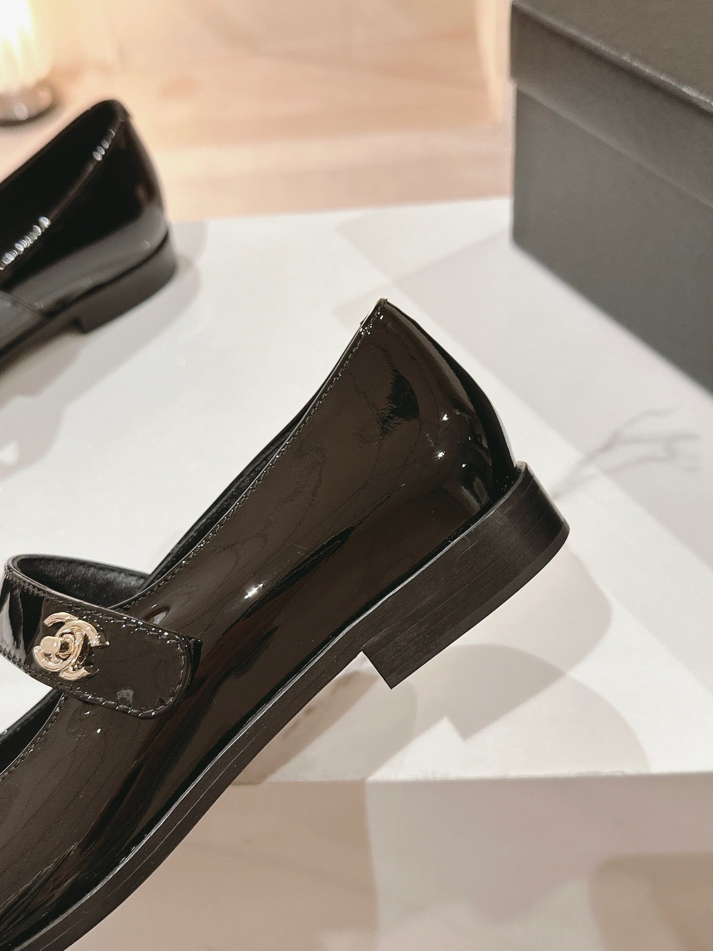 mary janes beige black patent calfskin