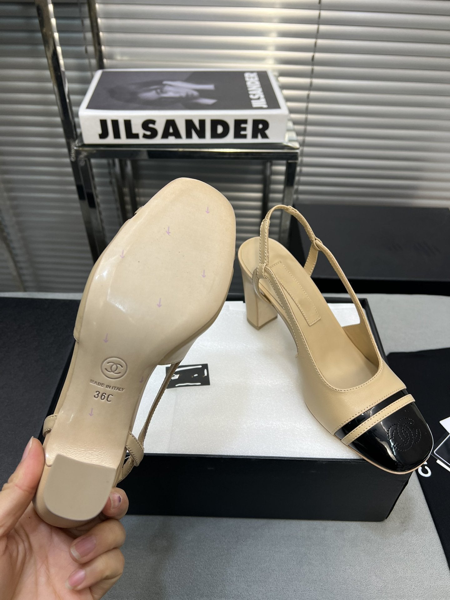 slingbacks beige black goatskin