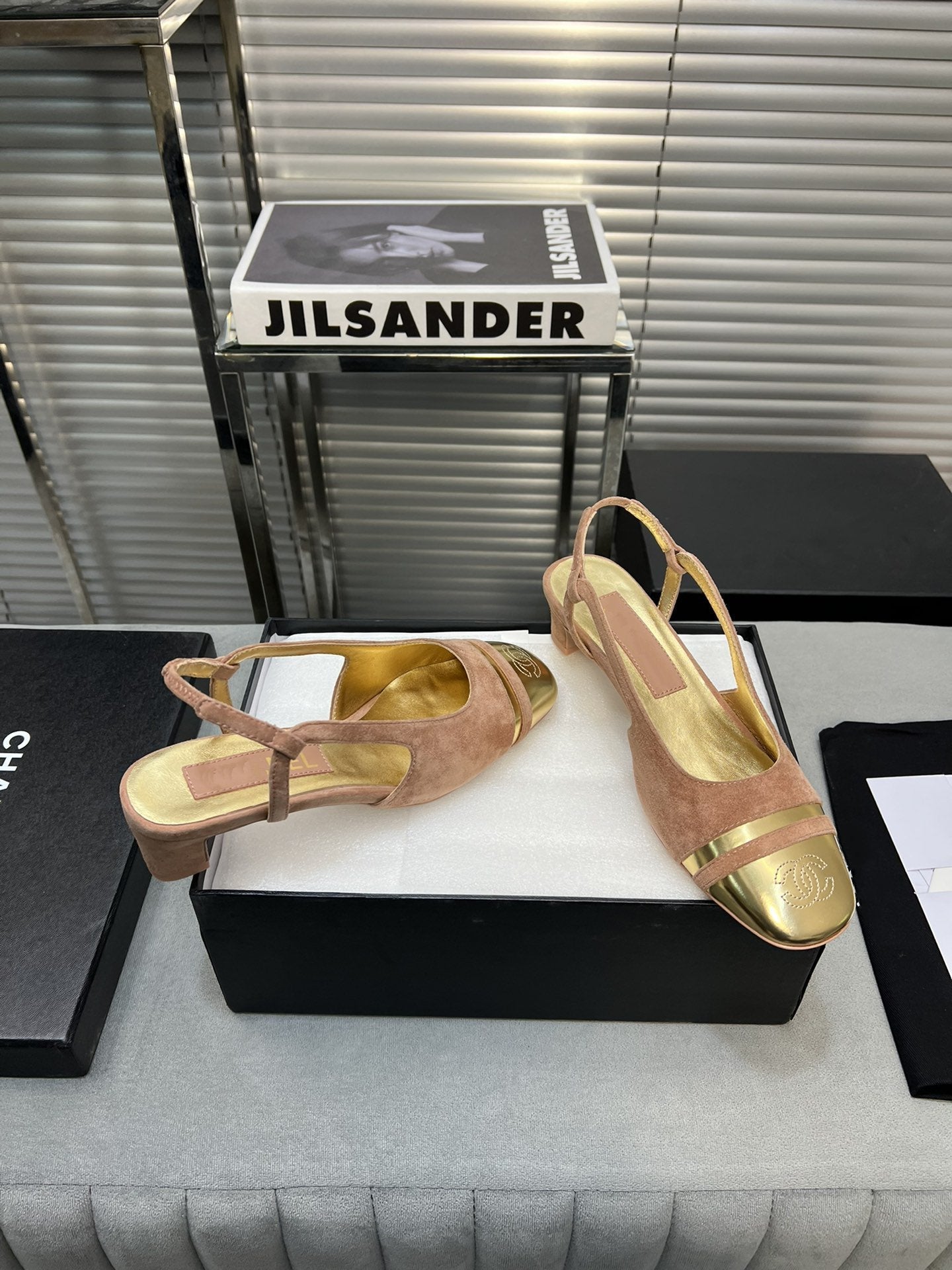 slingback light beige suede silver metalic lambskin square toe 5.0