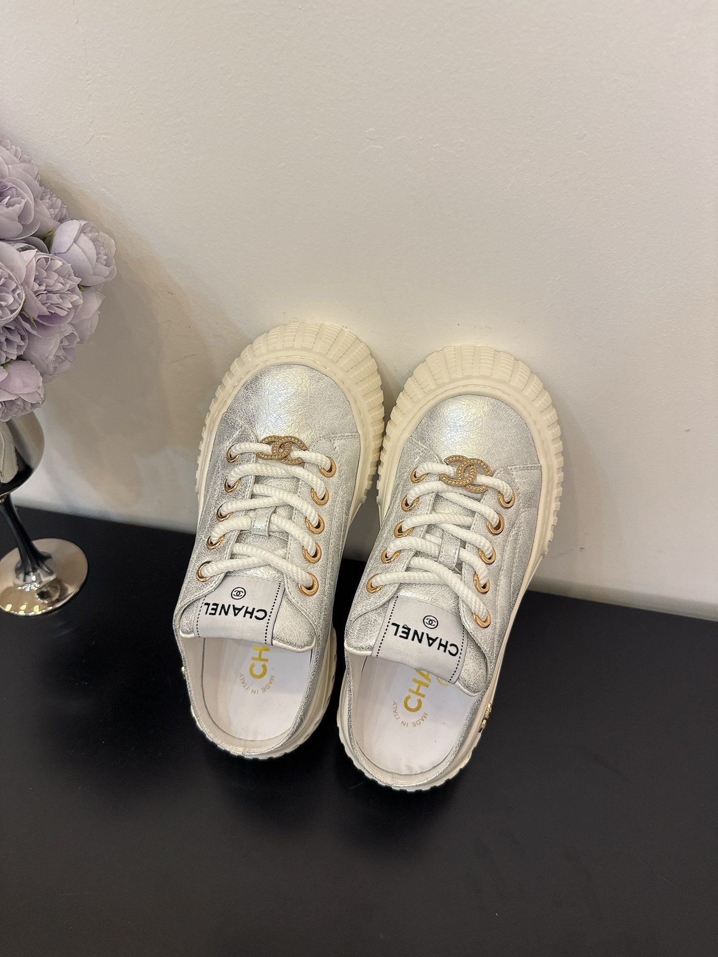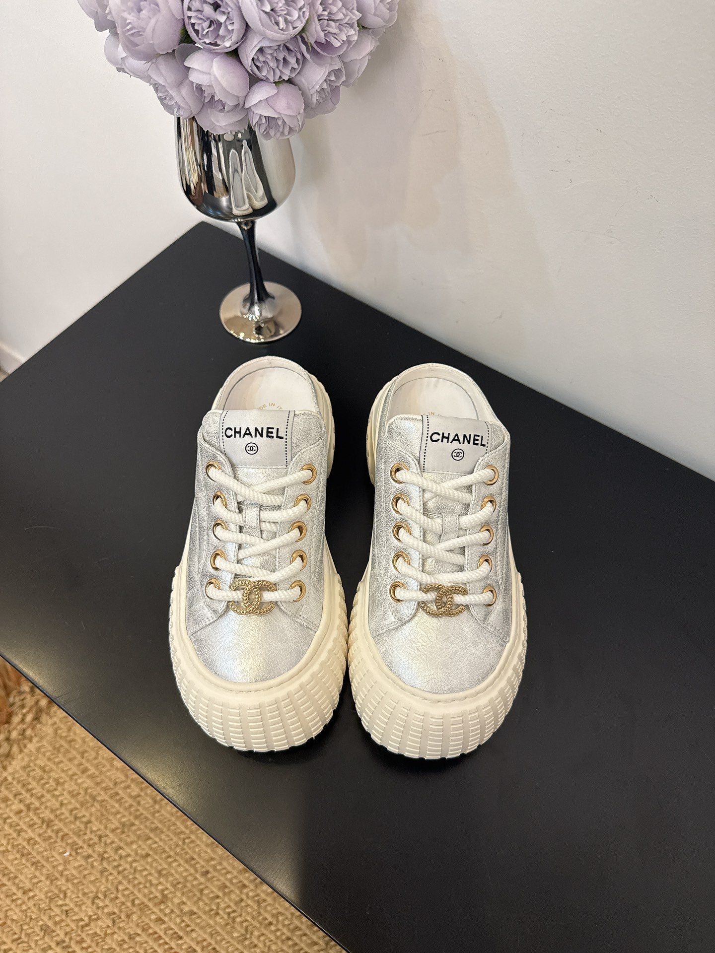 CC 25 Mules Platfrom Silver Lambskin 331632