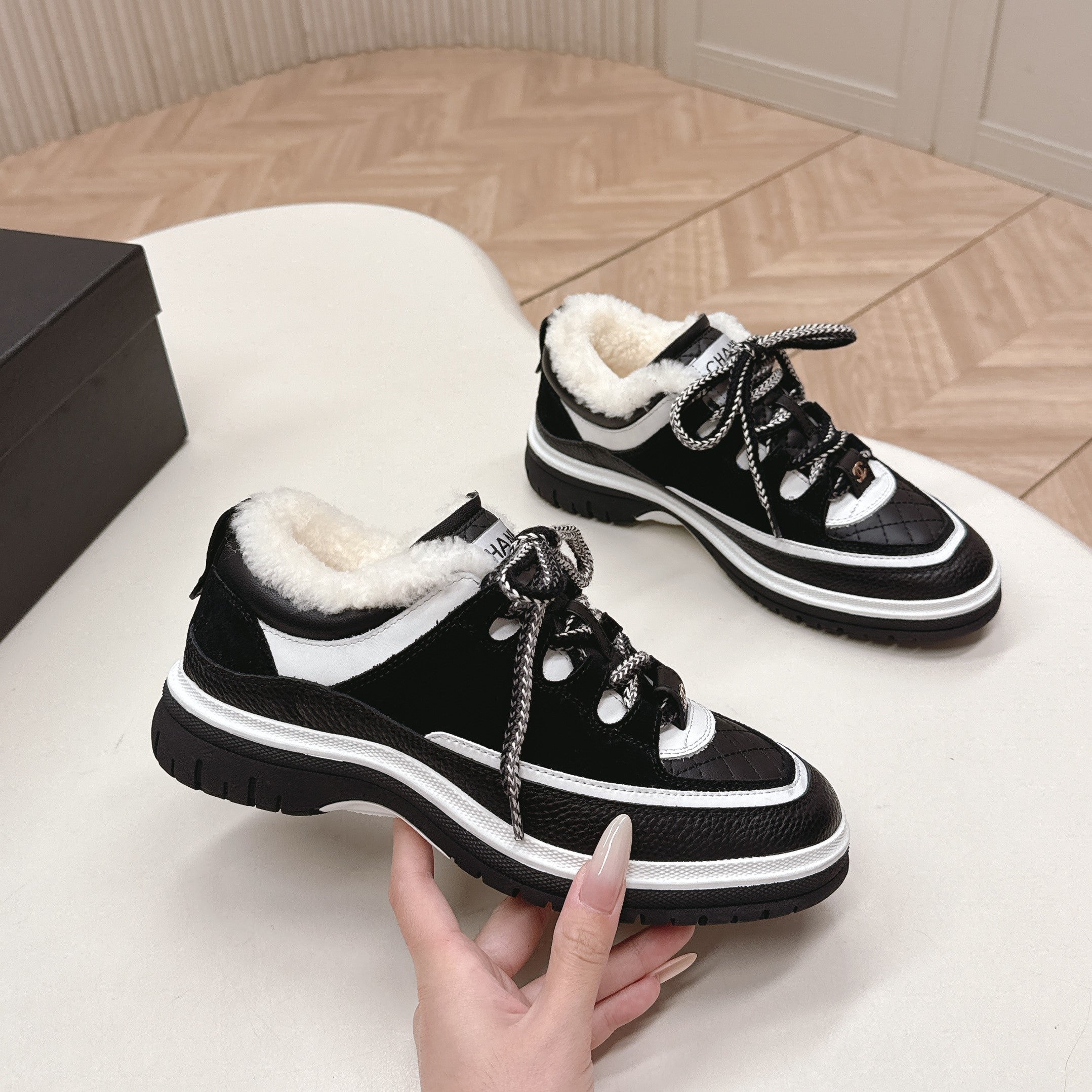 CC 25B Panda Sneakers Black White Fur Leather 542366