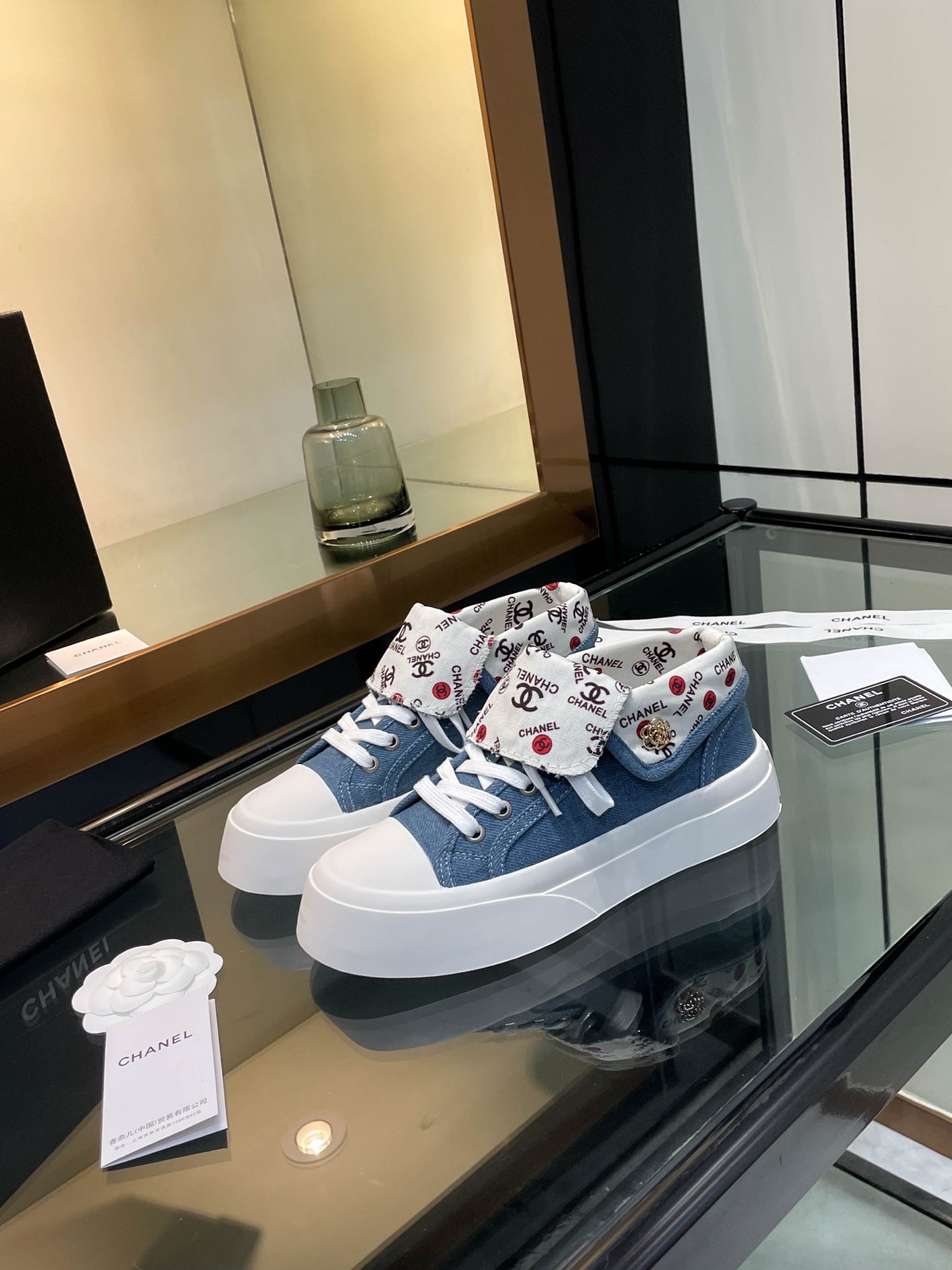 CC 25SS Biscuit Shoes 50mm Blue Canvas 413826