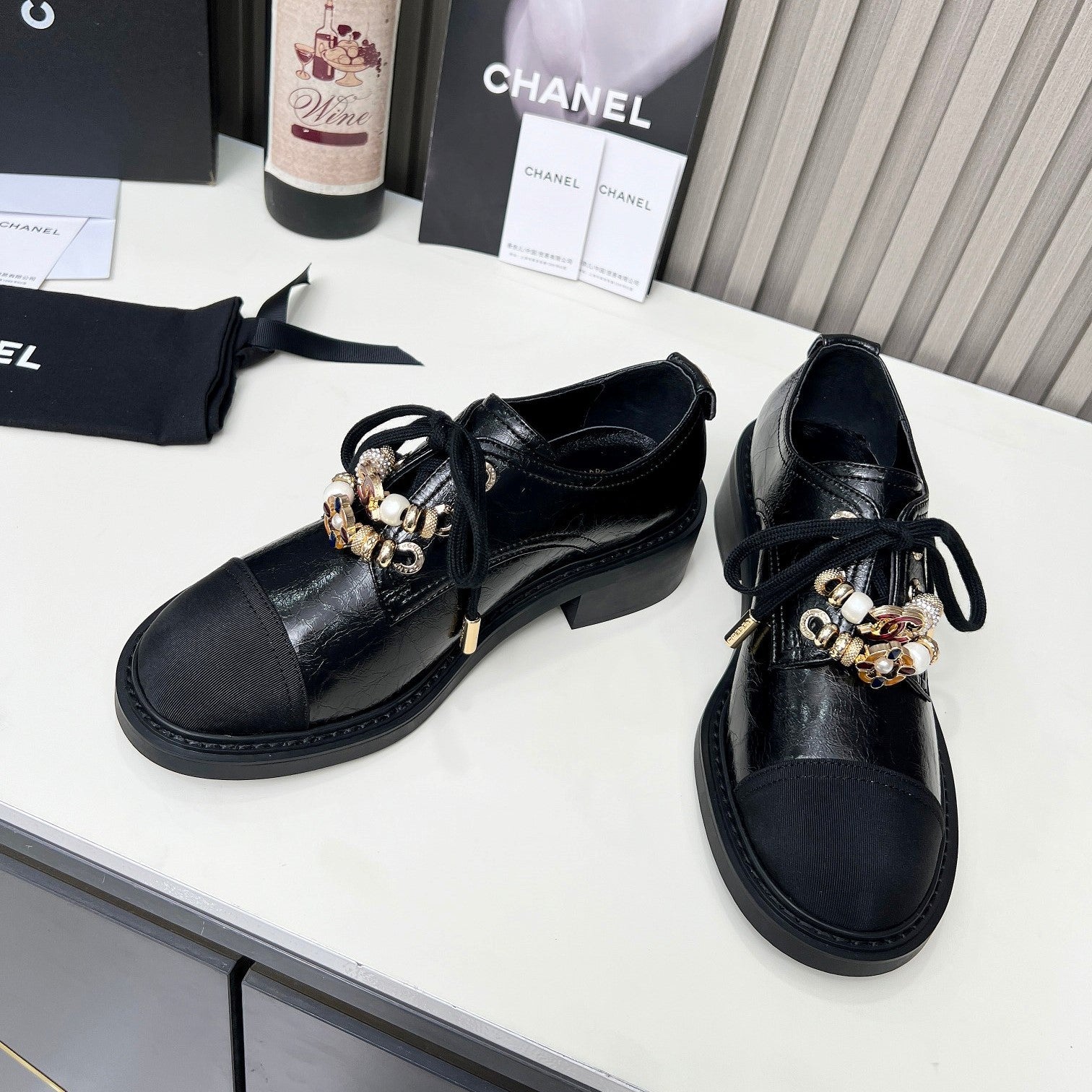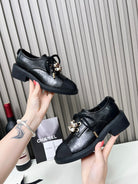 CC Flat Shoe Black Shiny Aged Calfskin