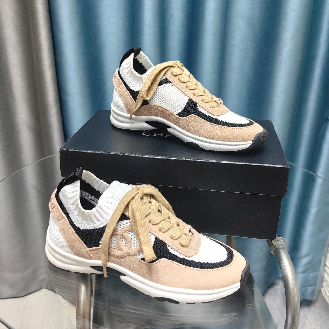 CC Sneaker Beige White Suede And Polyester Mesh Fabric