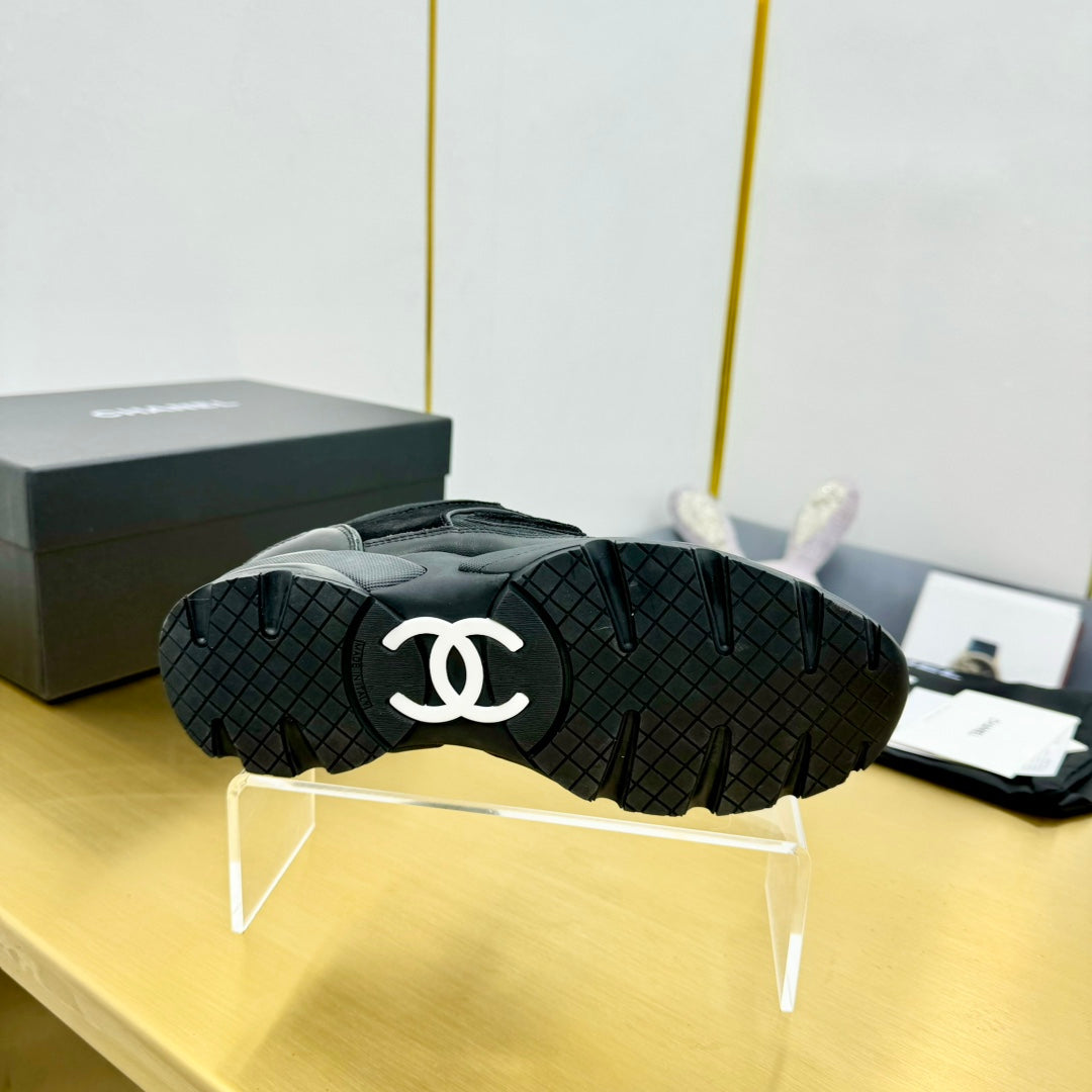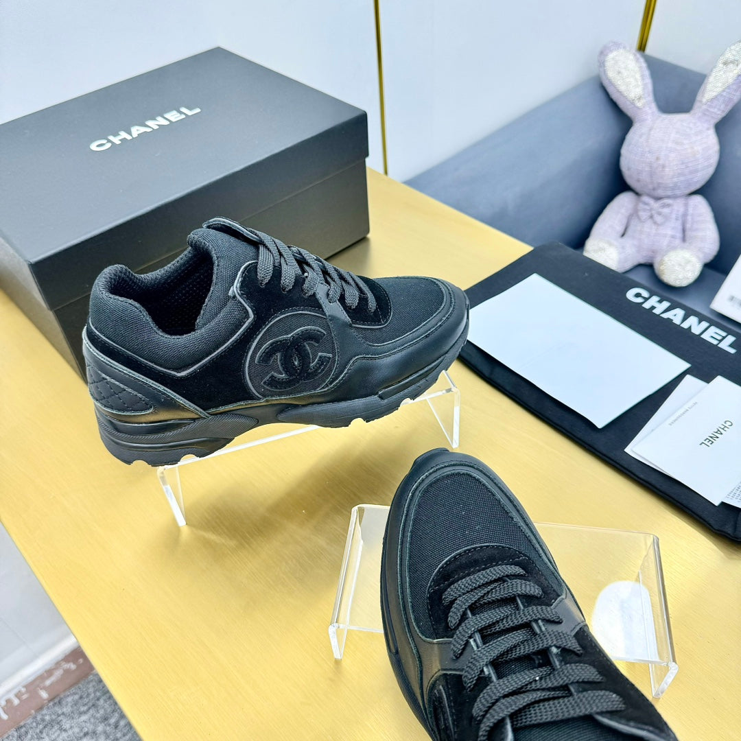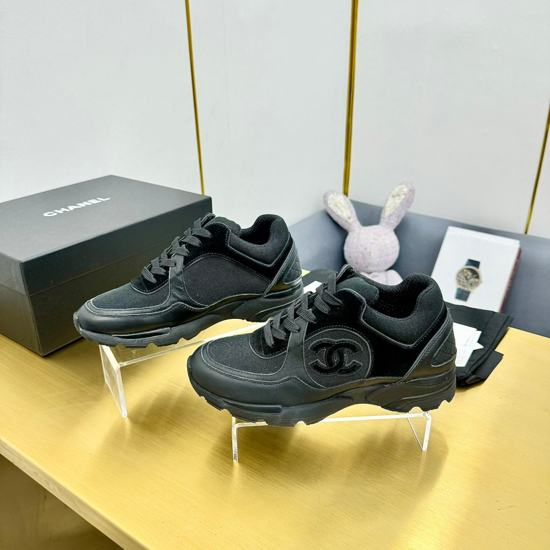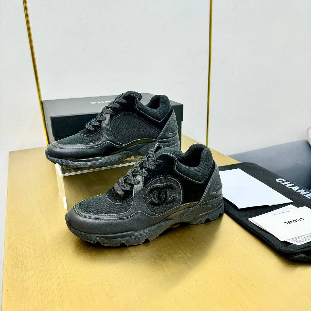 cc womens sneaker in black wool tweed and suede calfskin 137612
