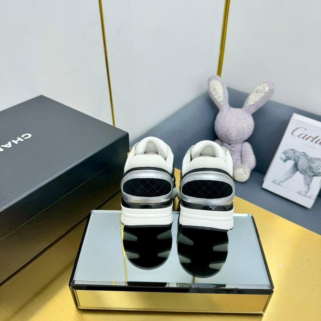 cc womens sneaker in white wool tweed silver calfskin and black suede calfskin 137577