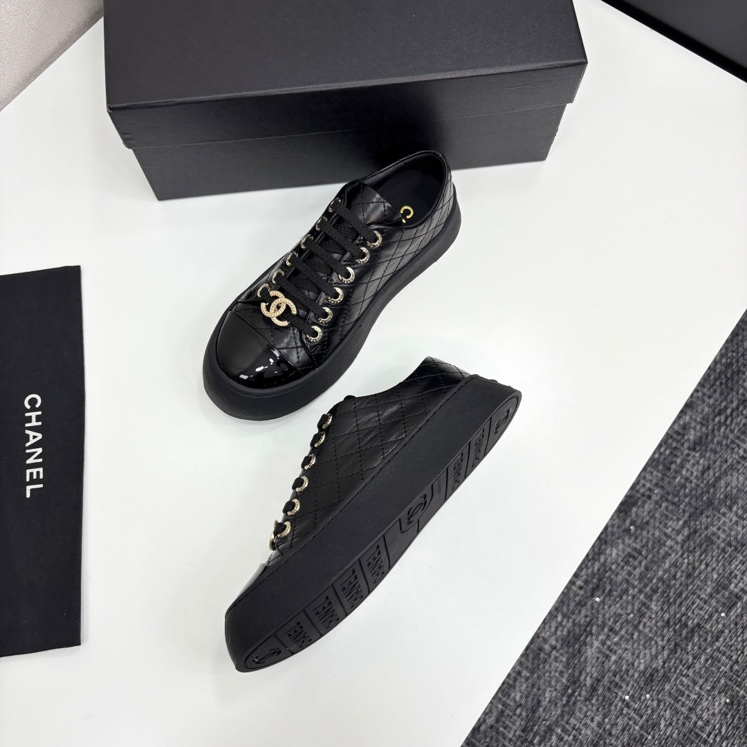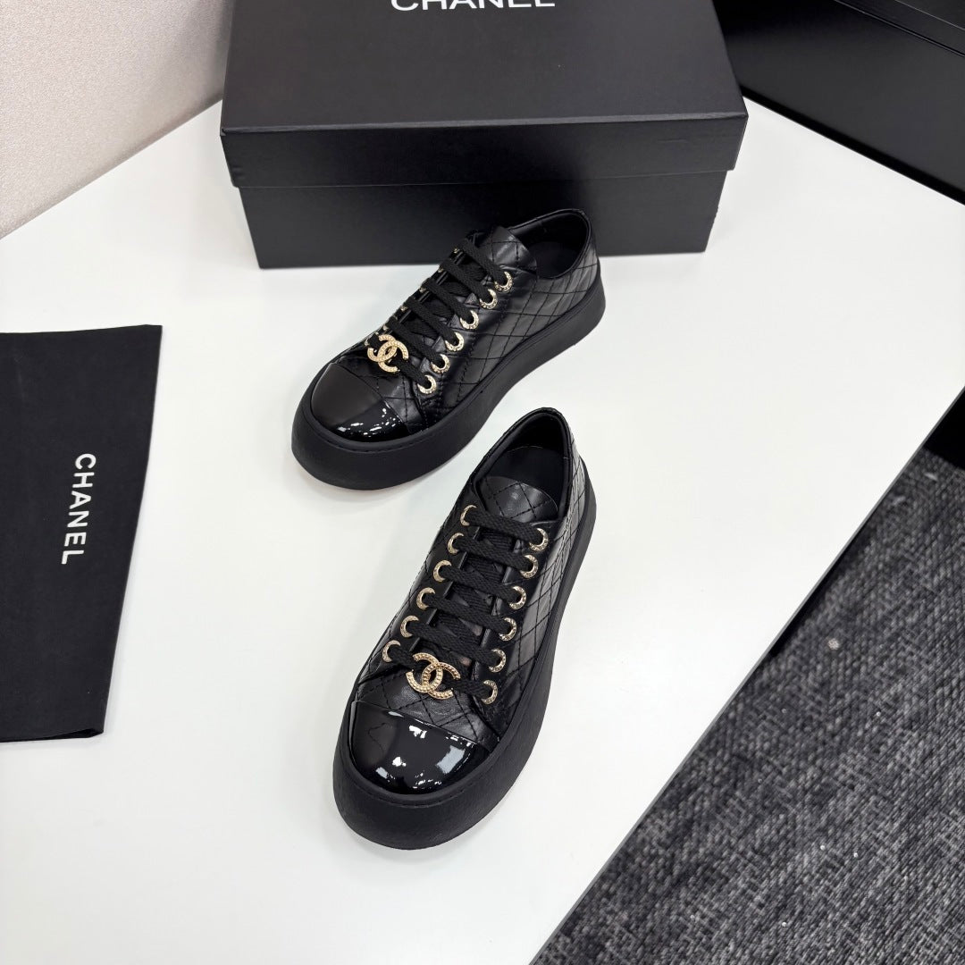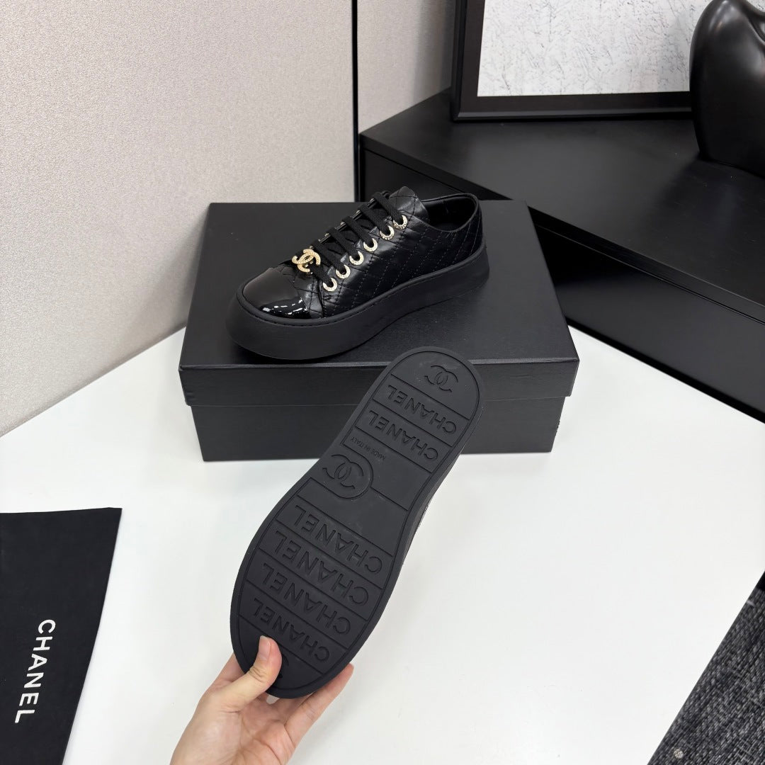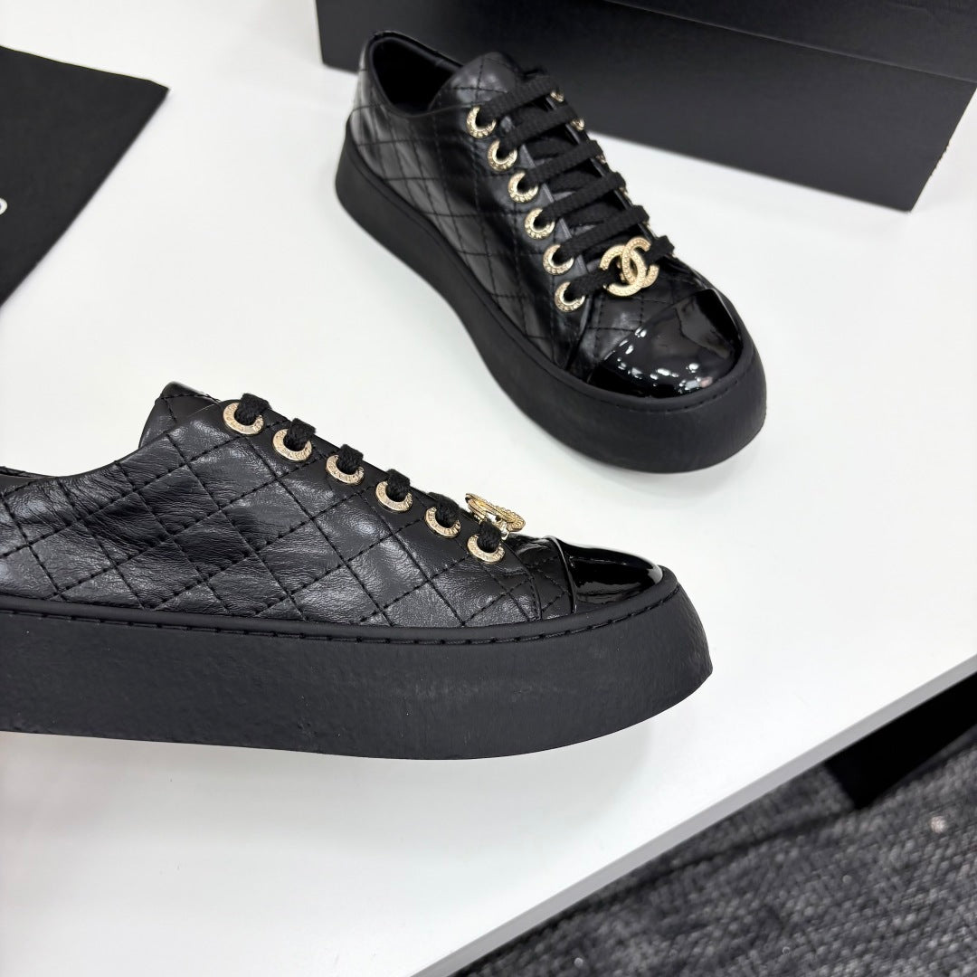 CC25 Lace-up Sneakers Black Cowhide And Patent Leather 352498