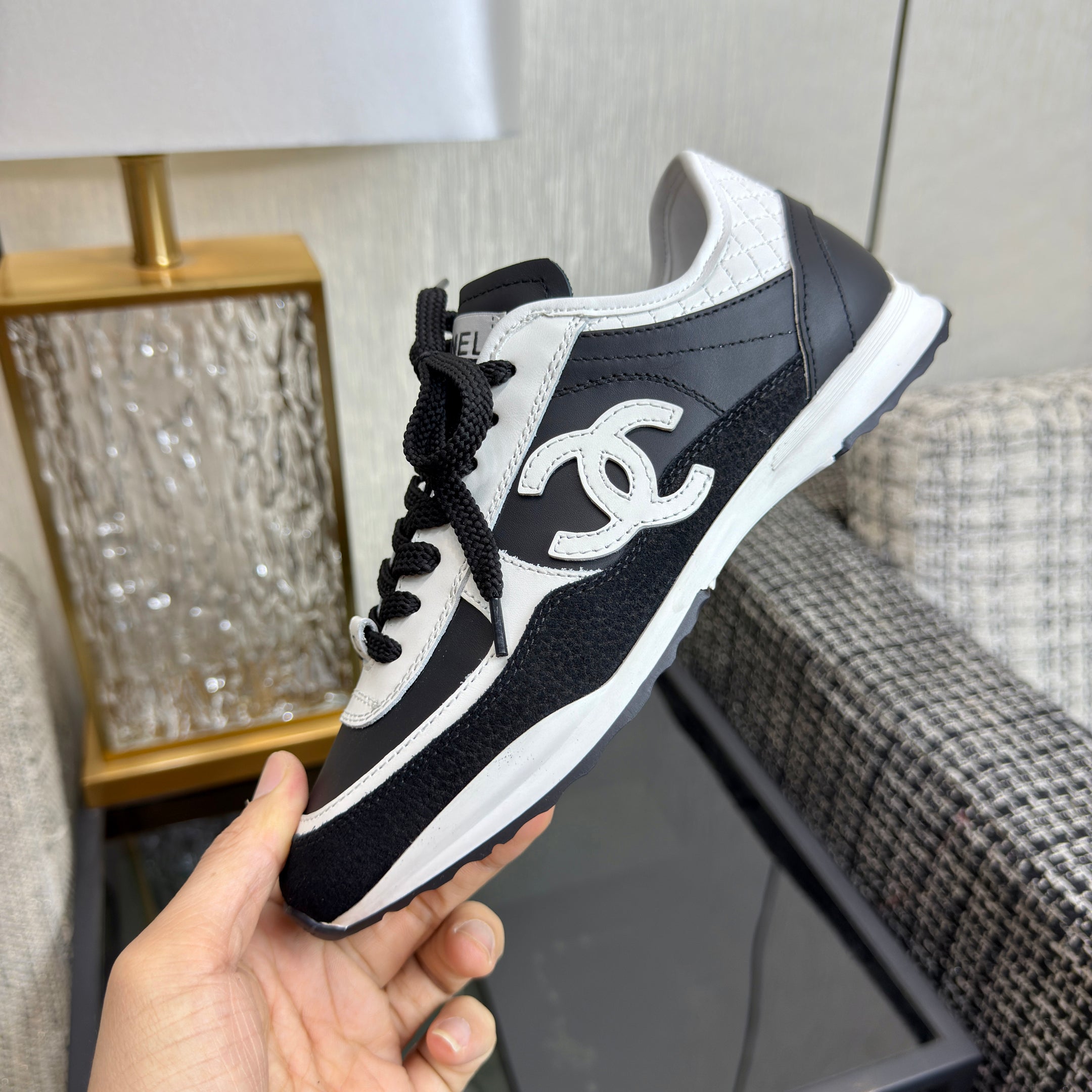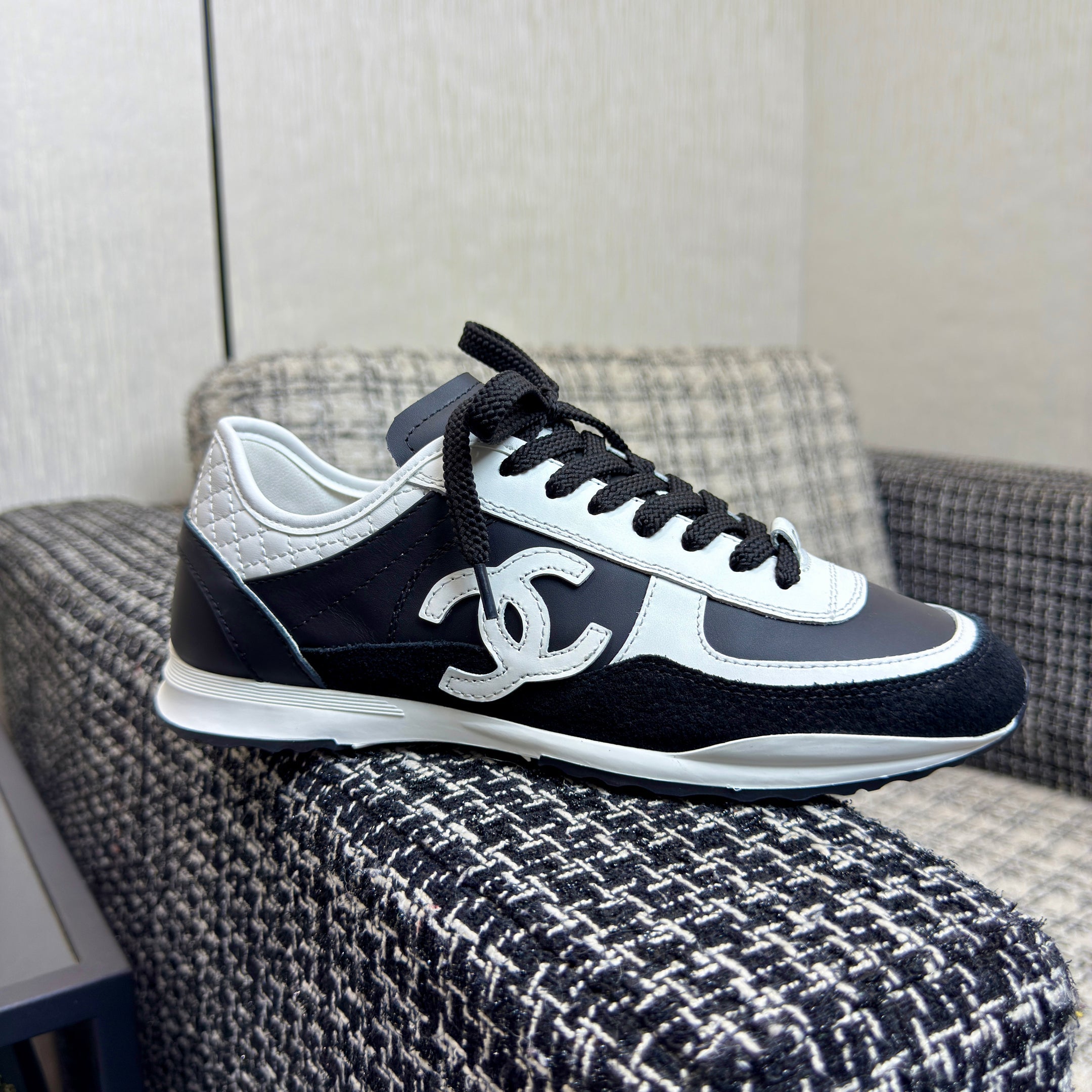 Chanel 2025 Sneaker Black mix White Cowhite & Suede 507458