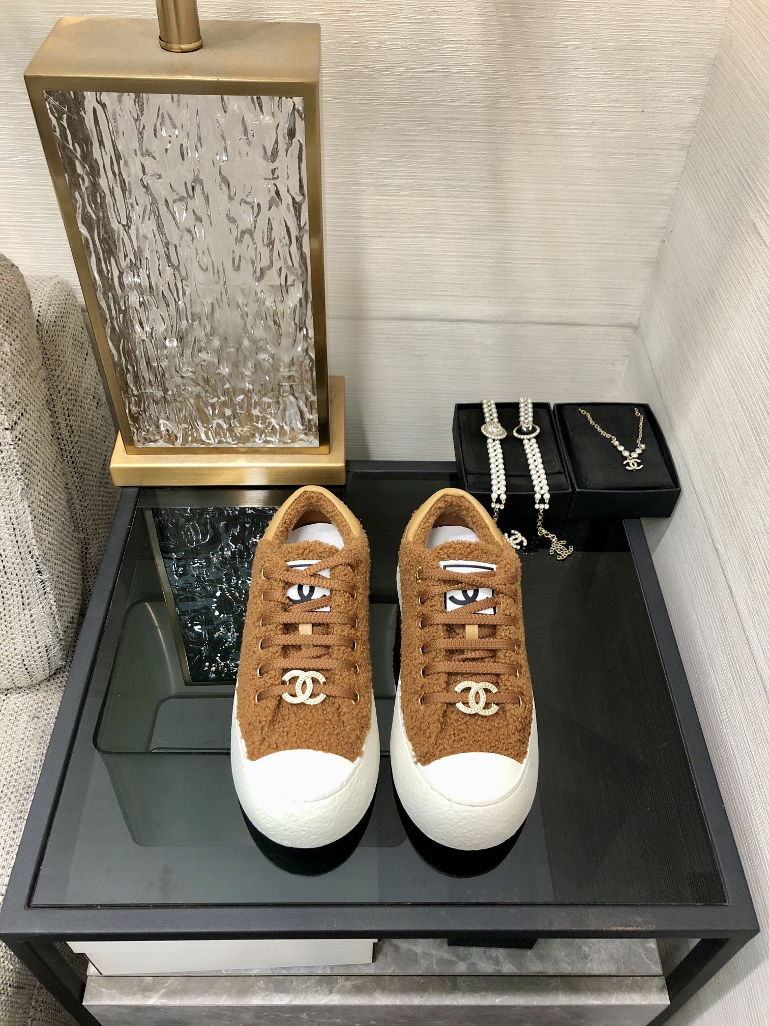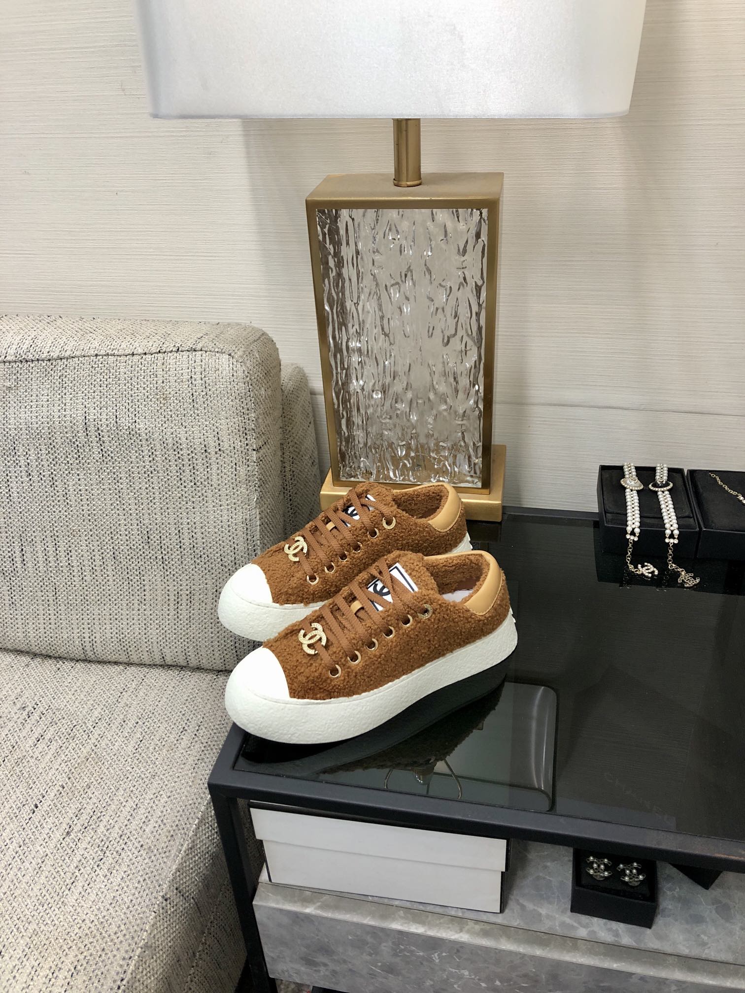 cc sneaker beige tweed yellow suede