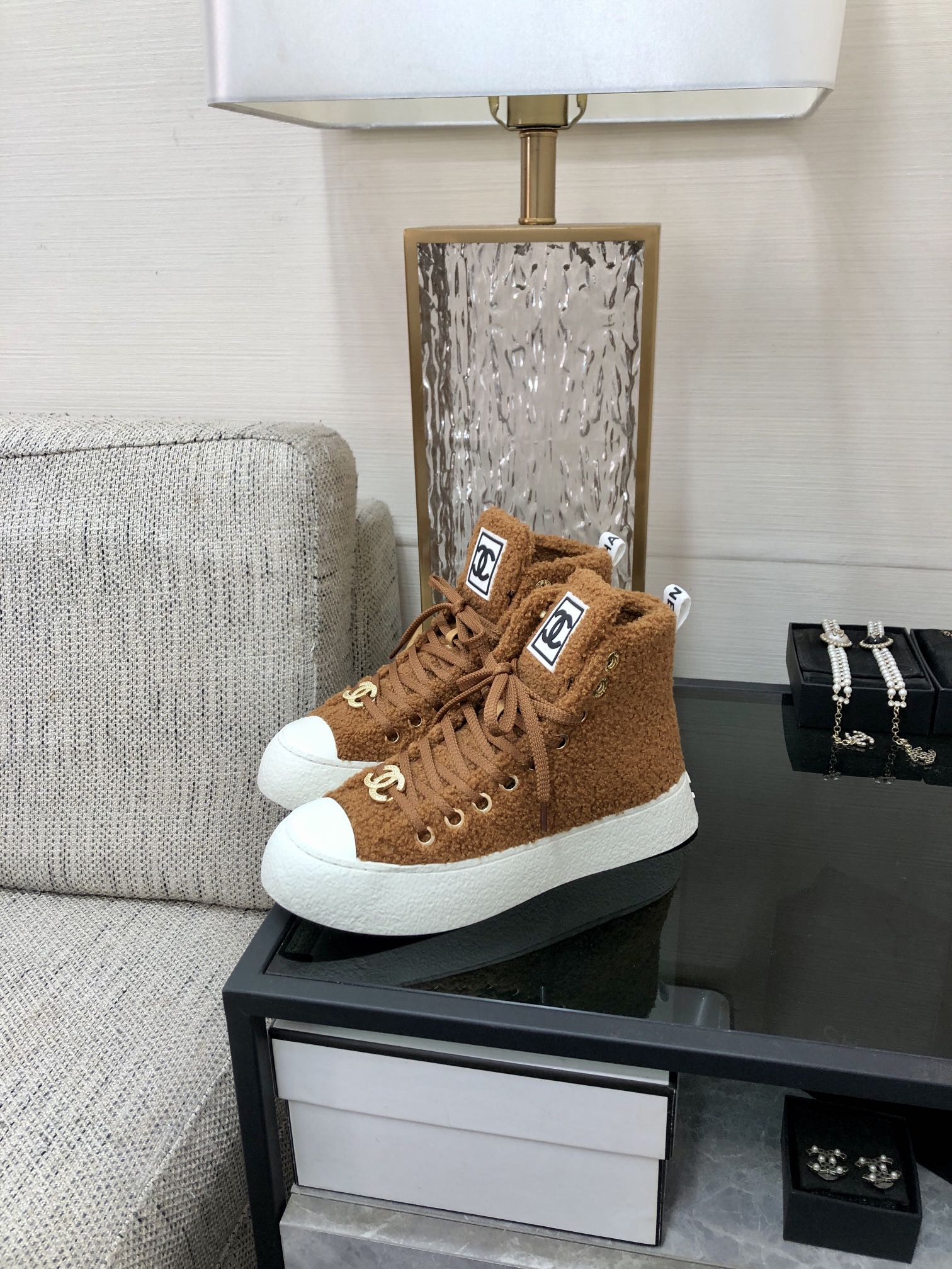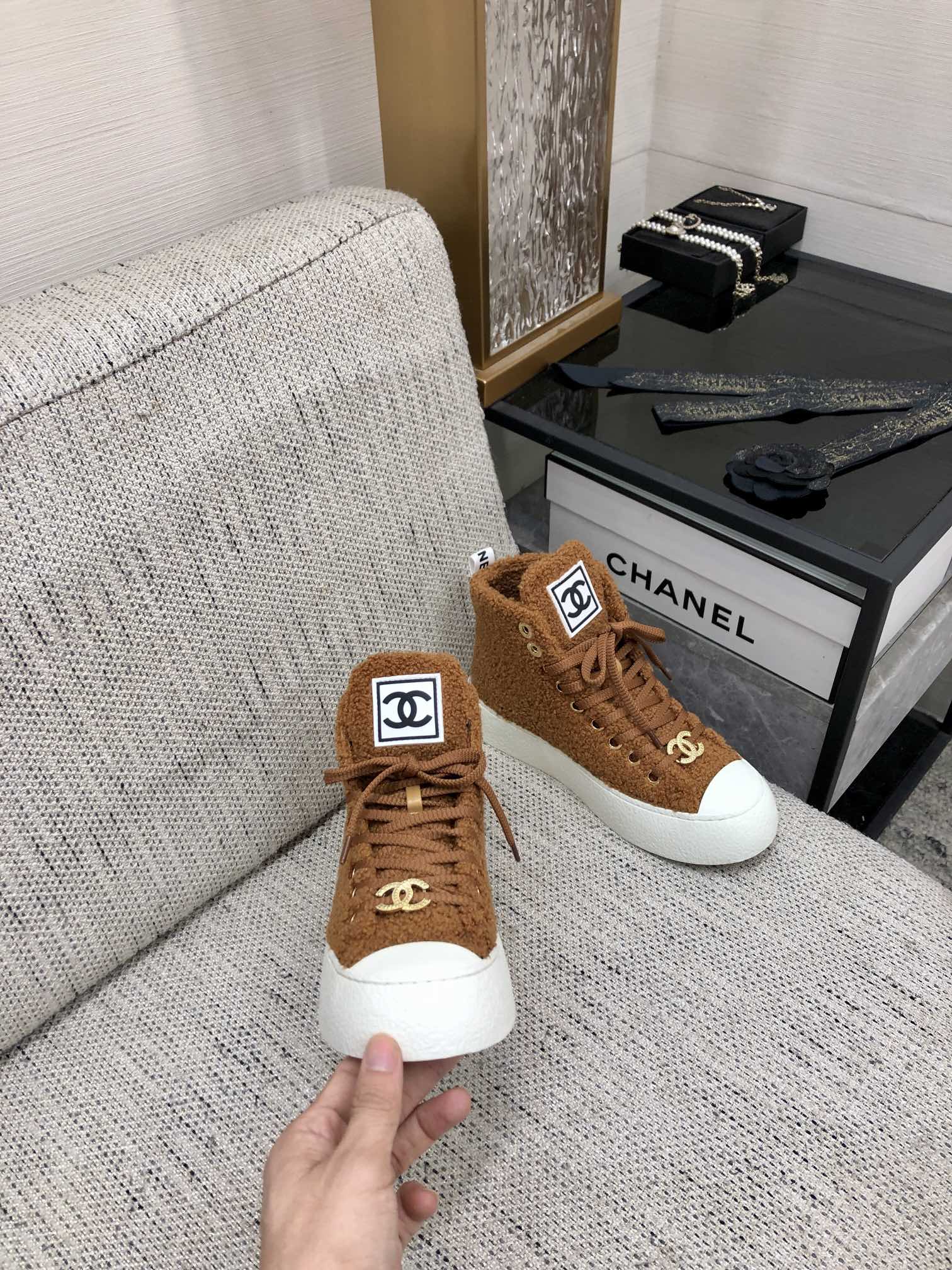 CC High Top Sneaker Brown Yellow Wool