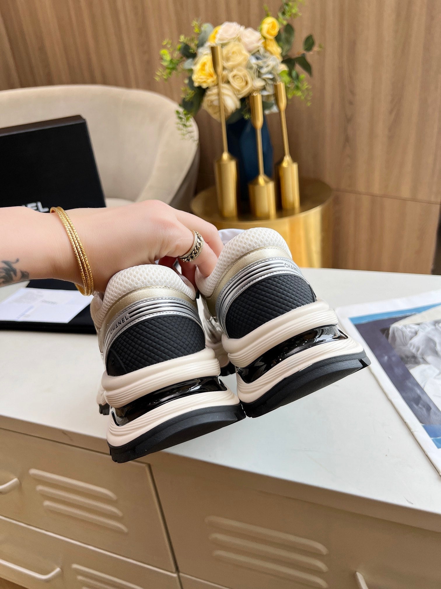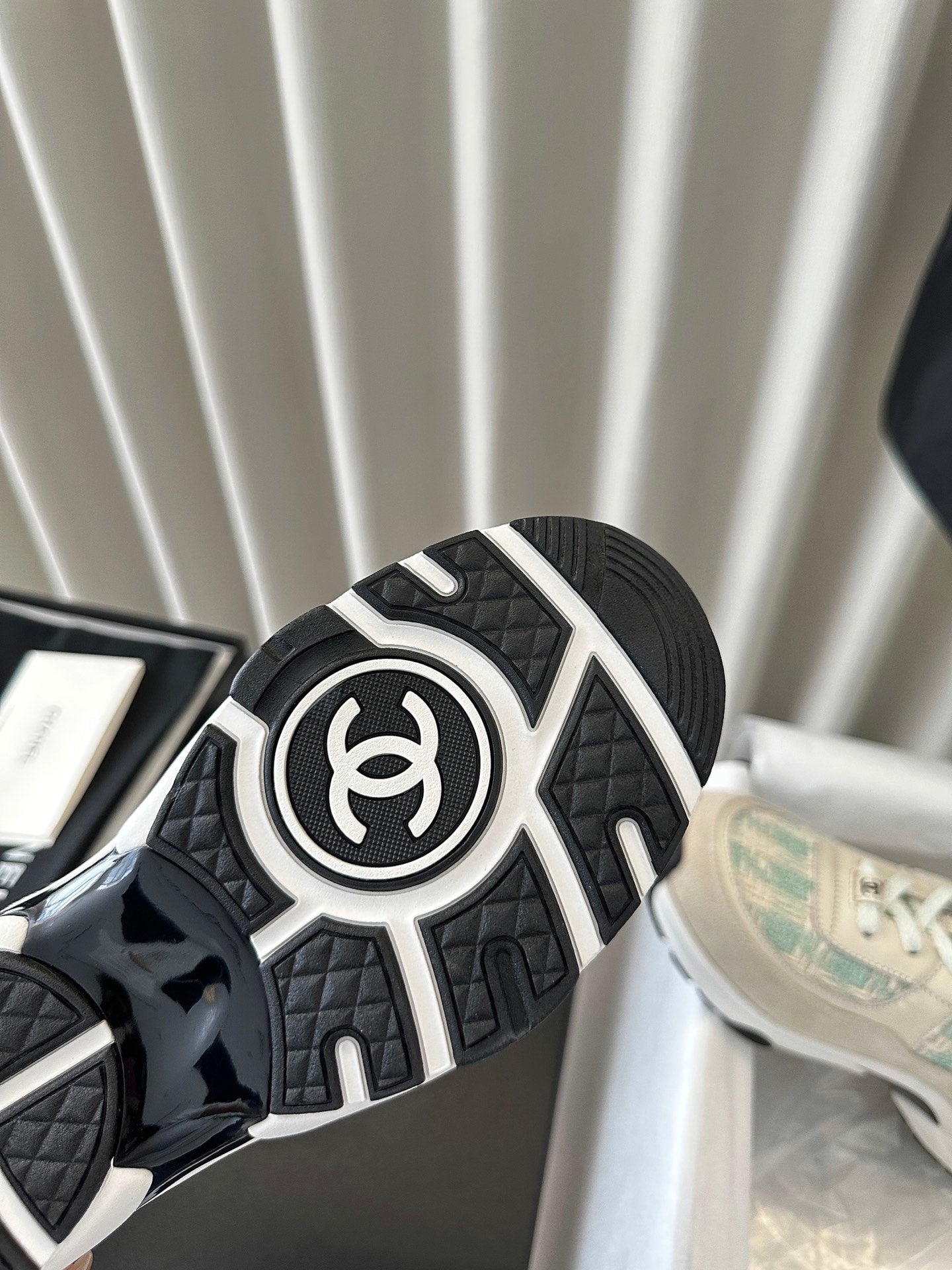 cc sneaker pink tweed dark cream calfskin suede calfskin