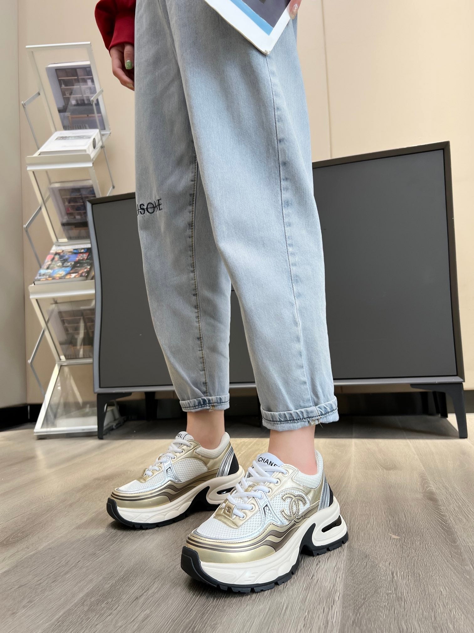 CC SNEAKER IN GOLD CALFSKIN AND SUEDE