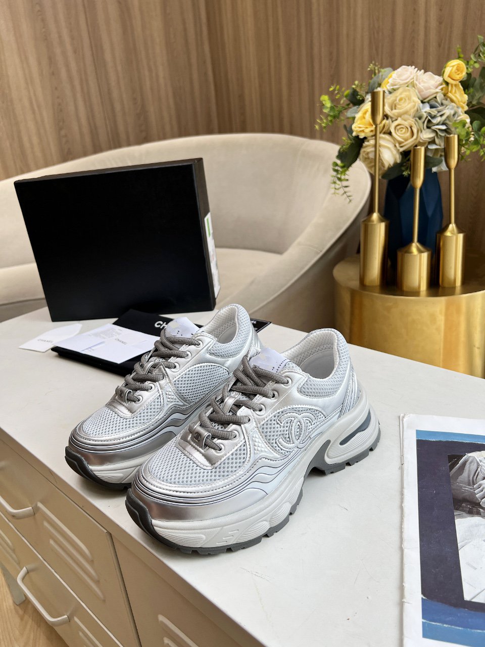 CC SNEAKER IN SILVER GRAY CALFSKIN AND SUEDE