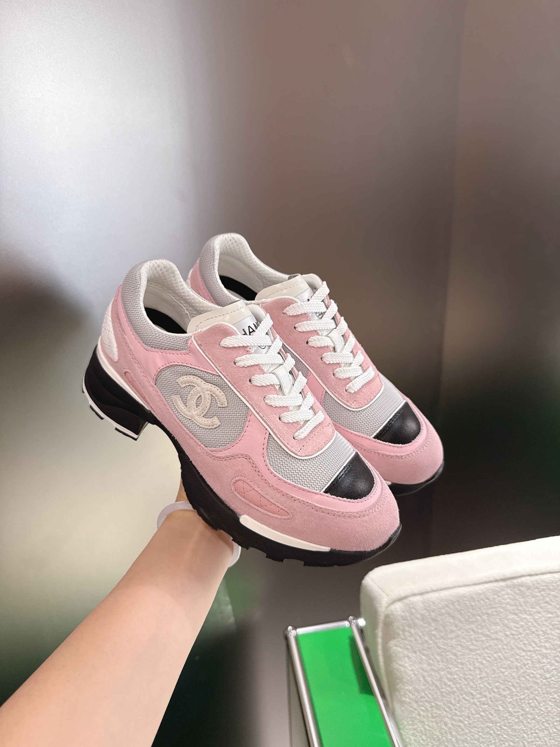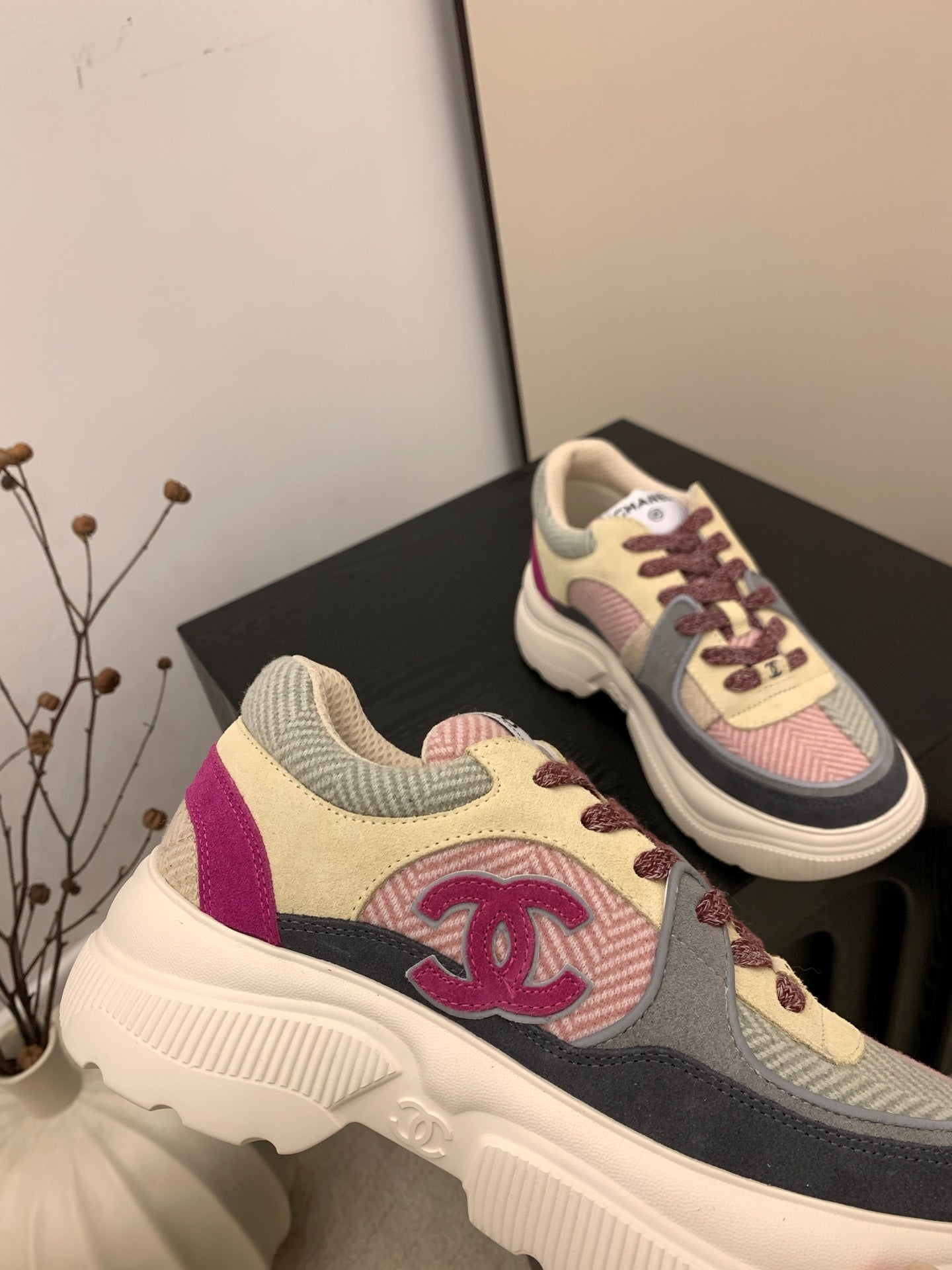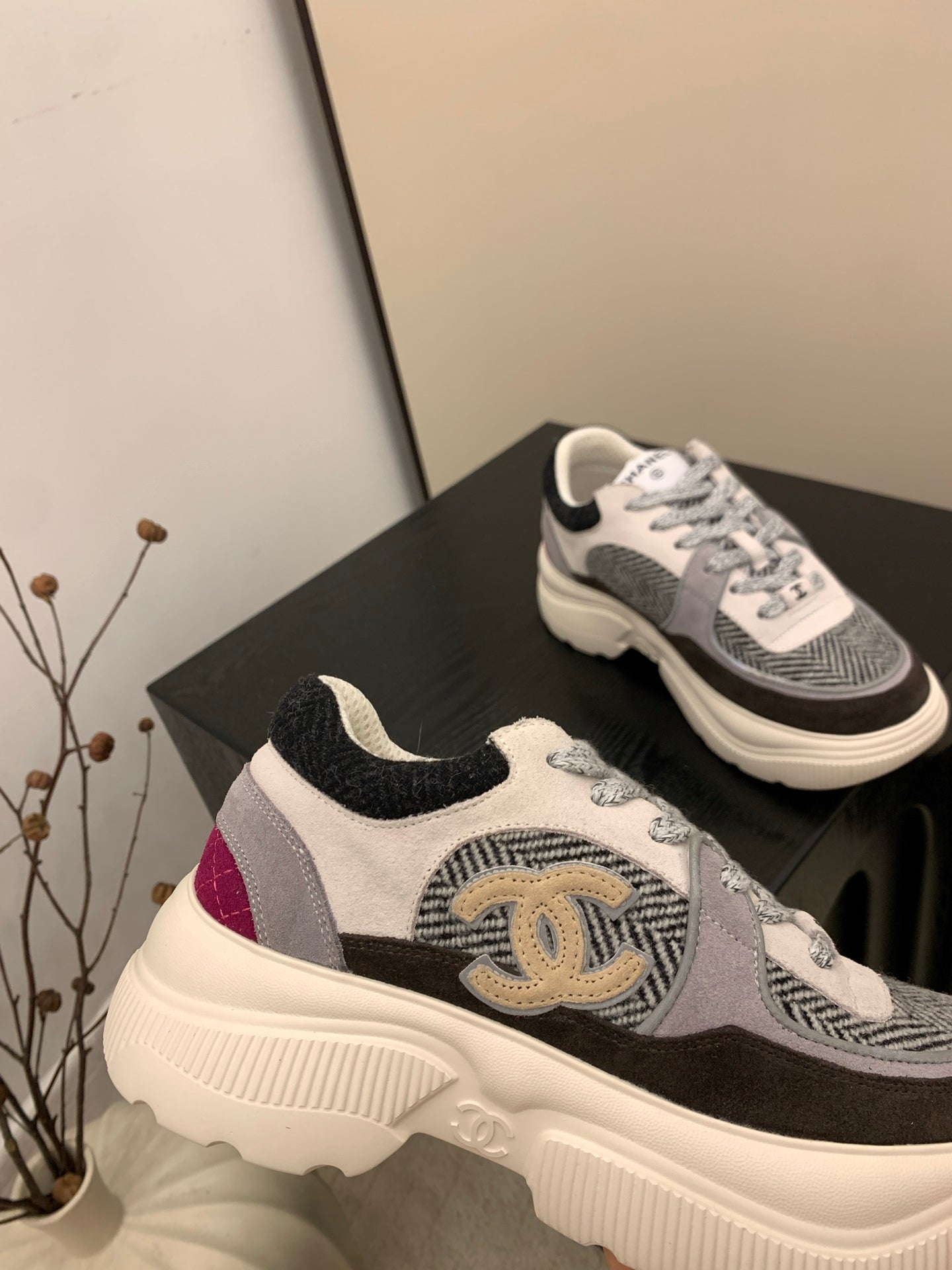 CC FW 25/26 Sneakers 40mm Black Pink Grey Fabric Calfskin 500181