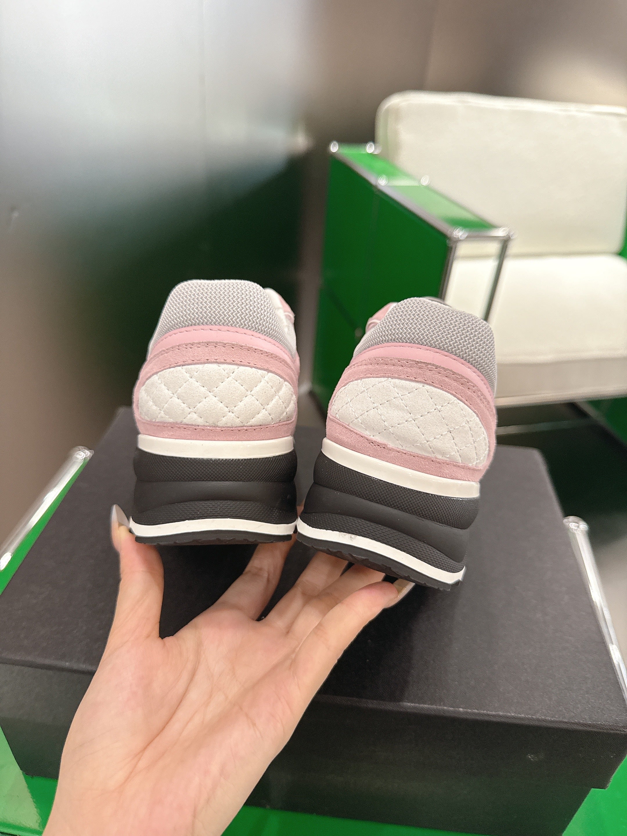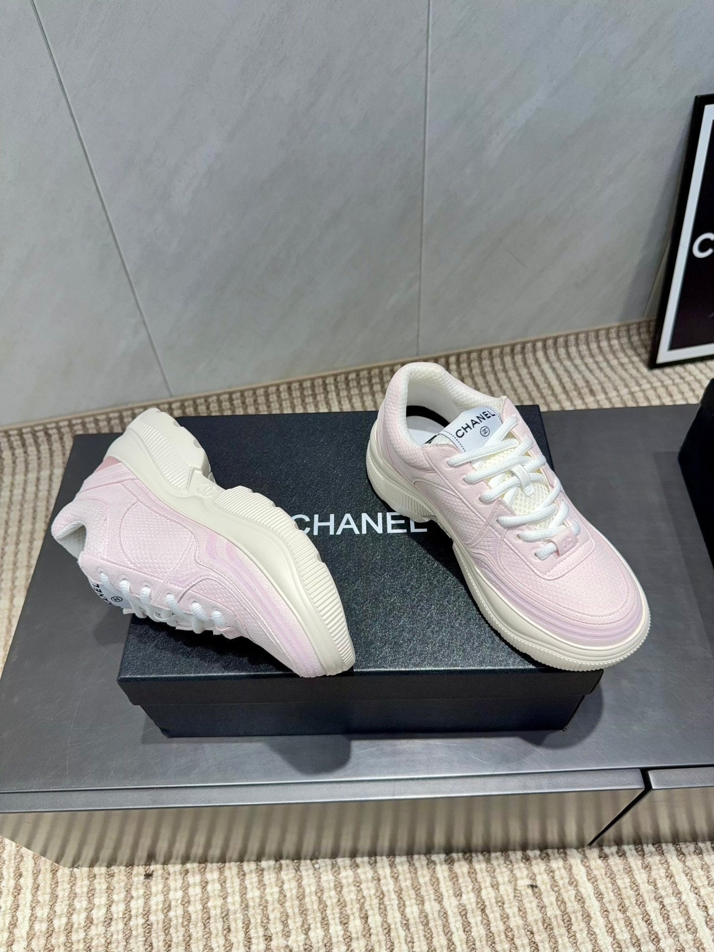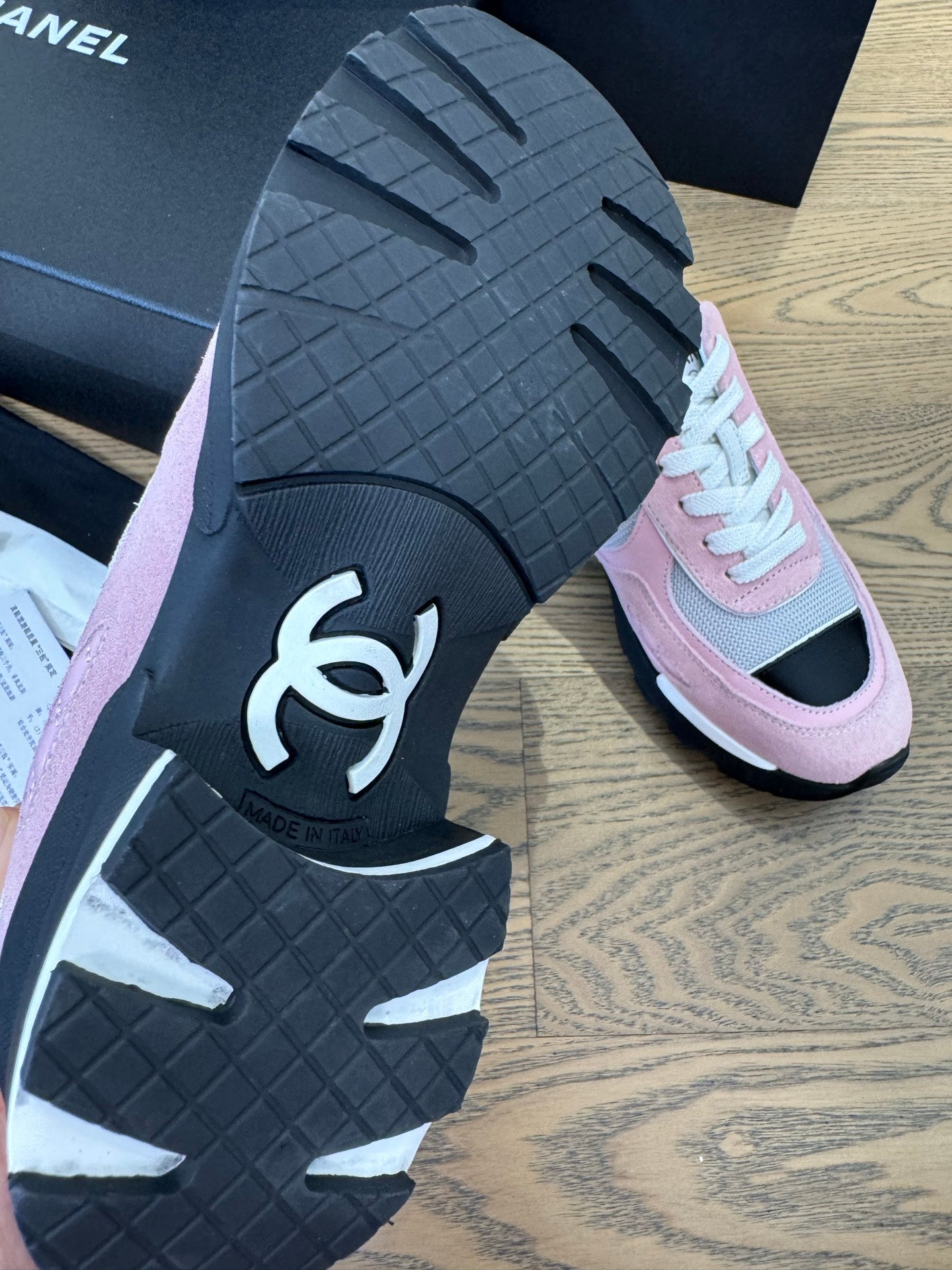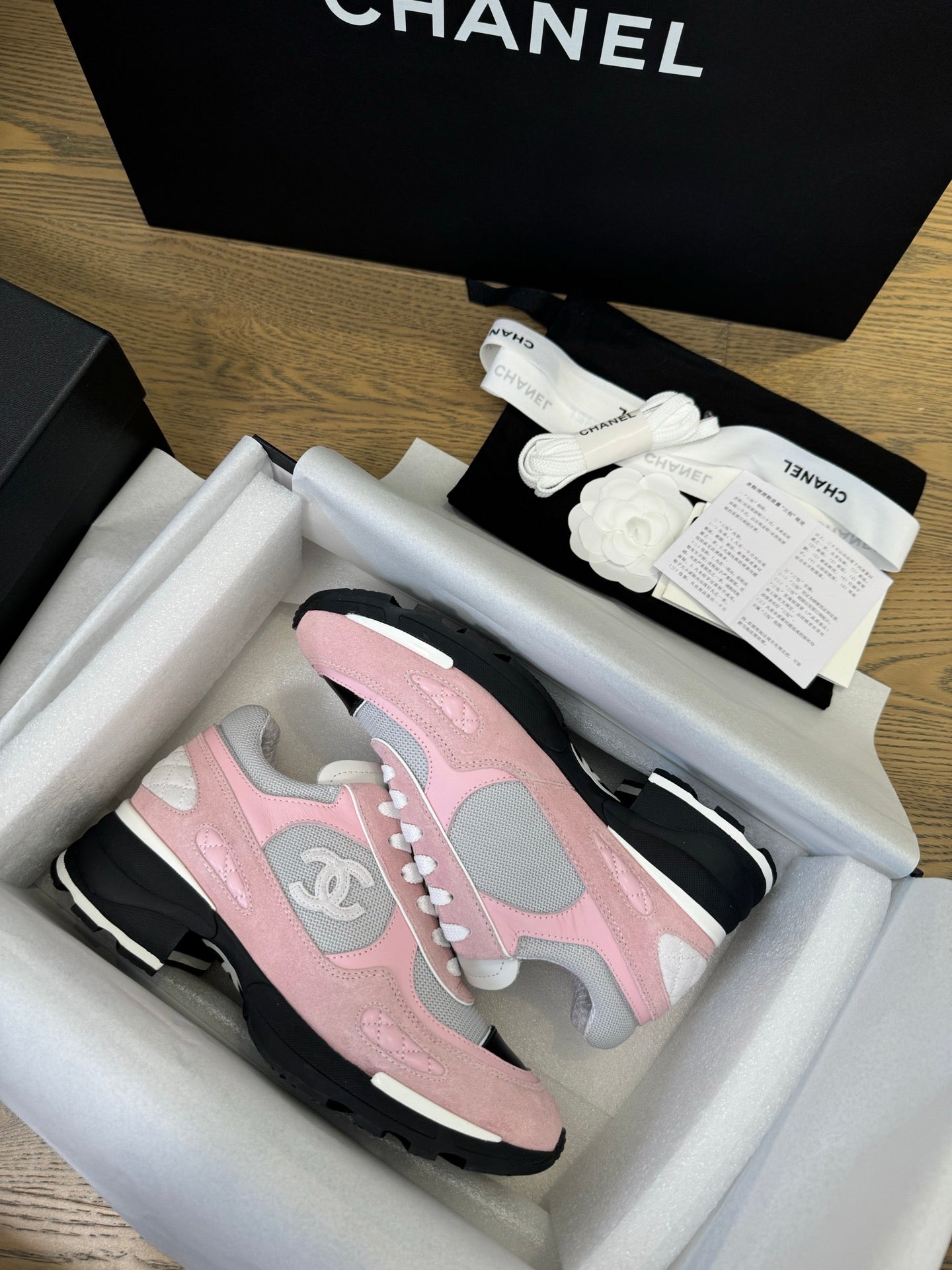Chanel 25 Sneaker Pink Brown White Suede Cowhide 540338