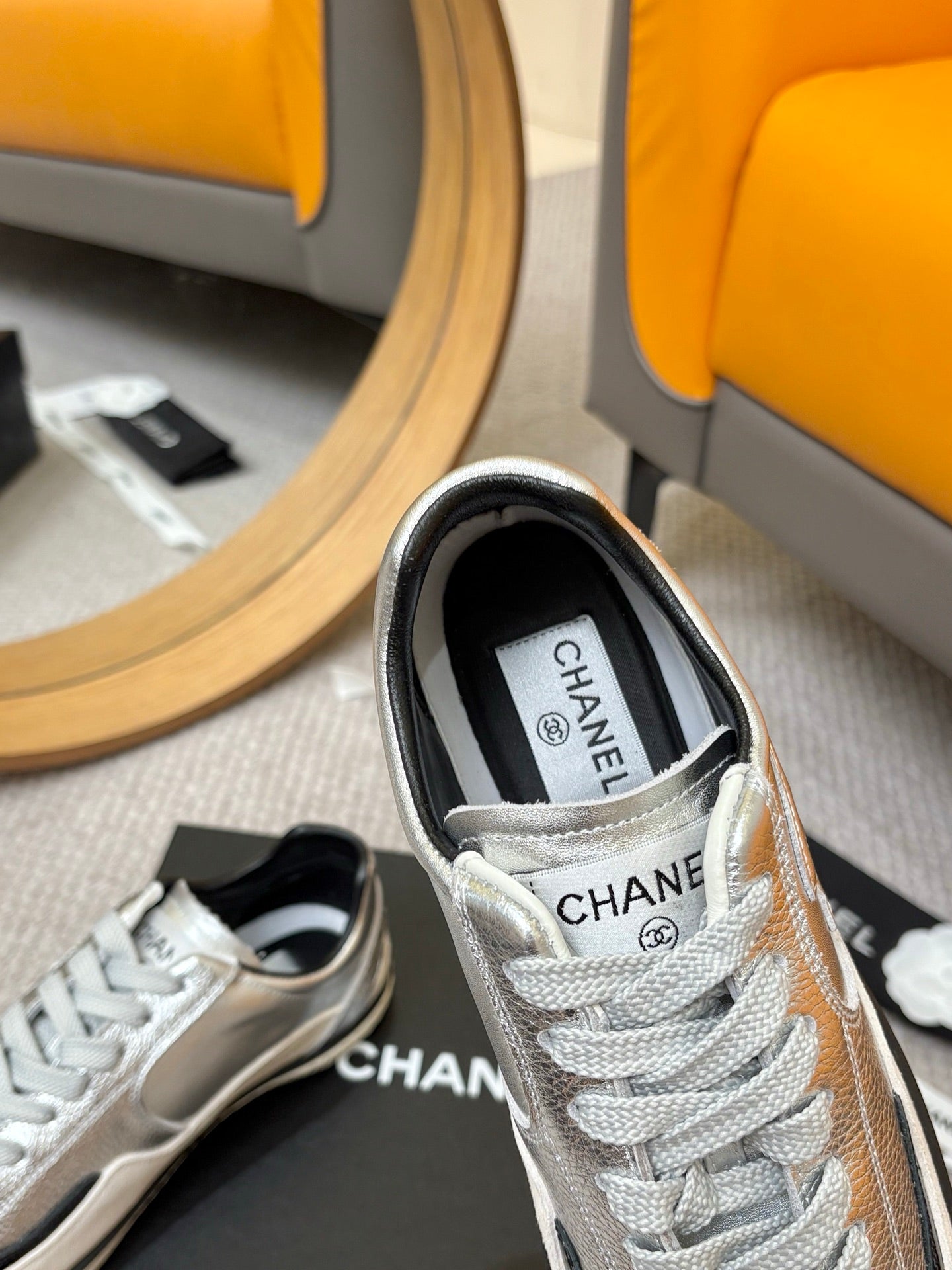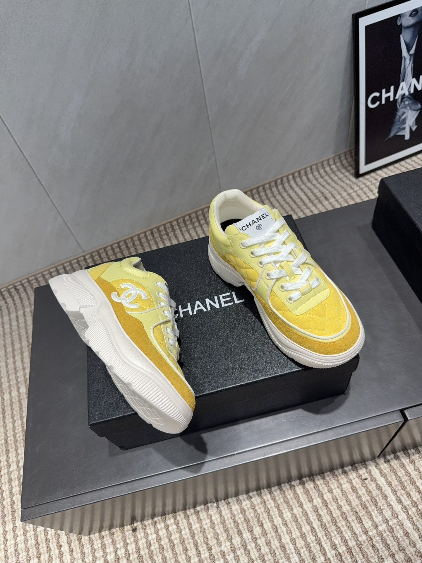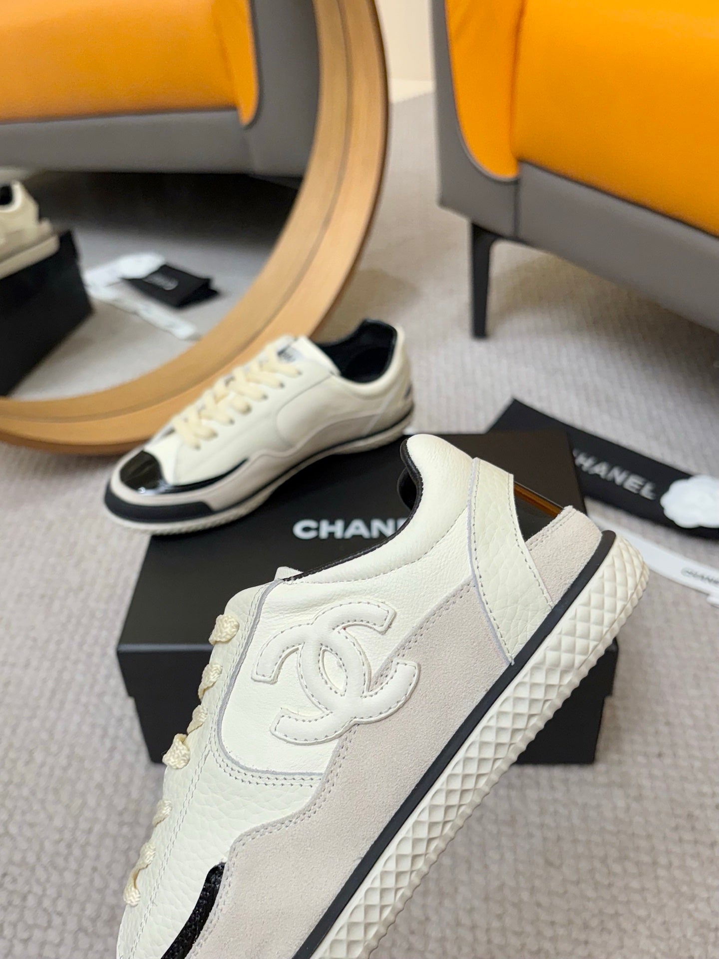 Chanel 25 Sneaker Yellow White Suede Cowhide 540336