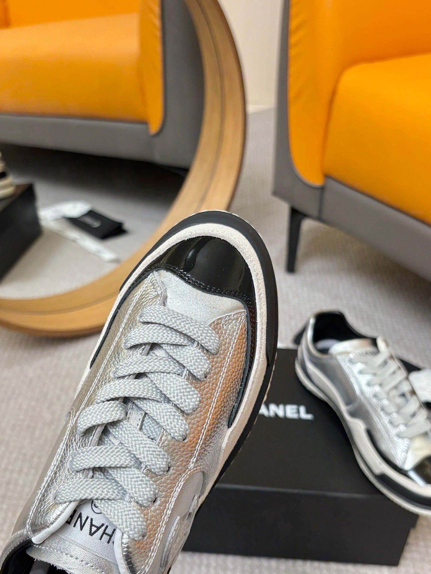 CC 25C Casual Sneakers Sliver Black Cowhide Suede Patent Leather 528155