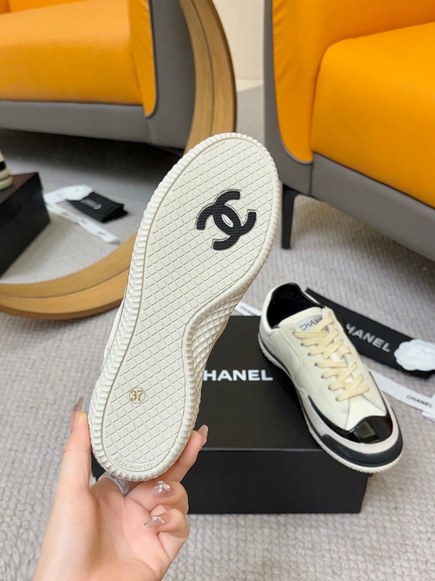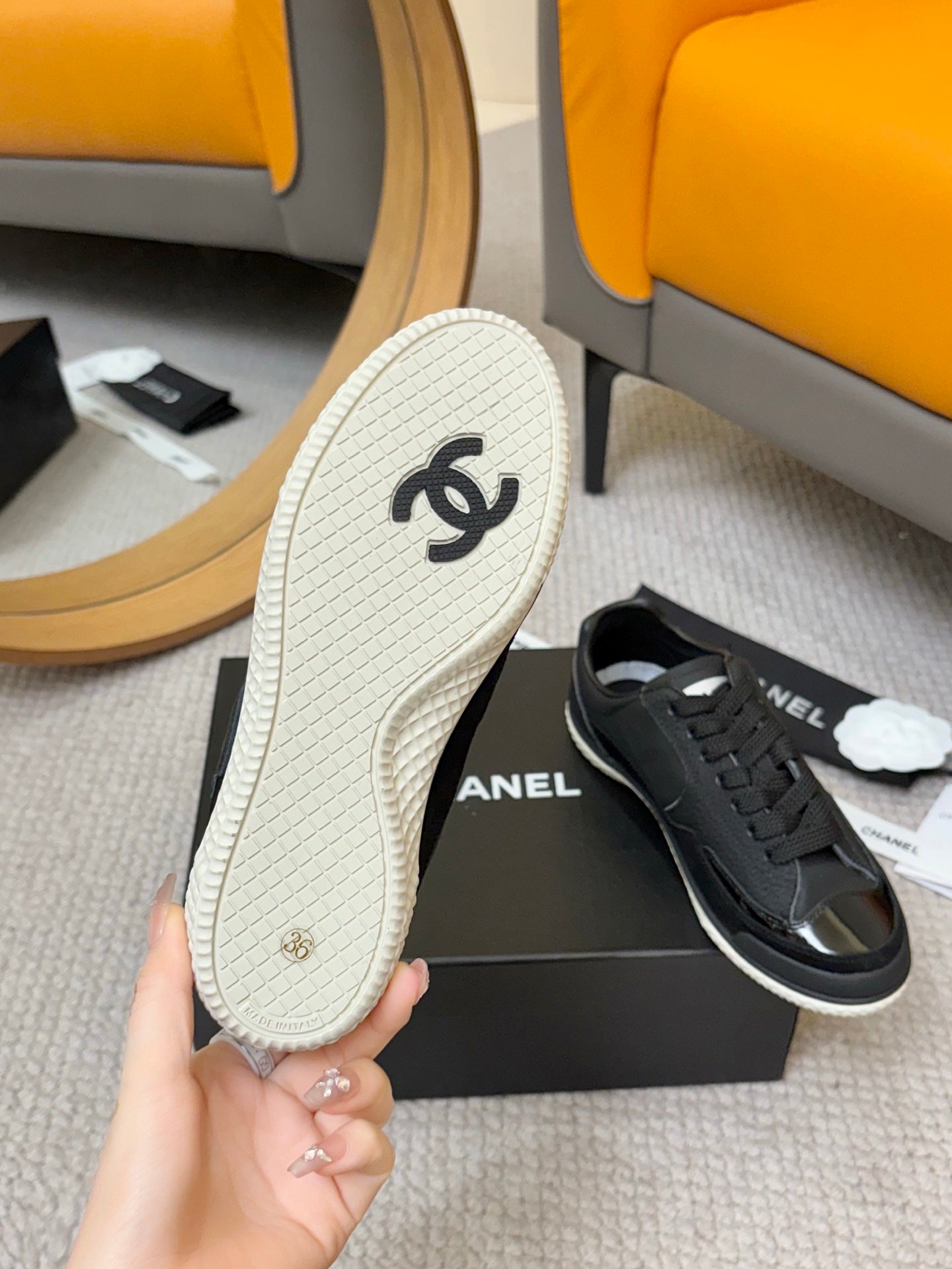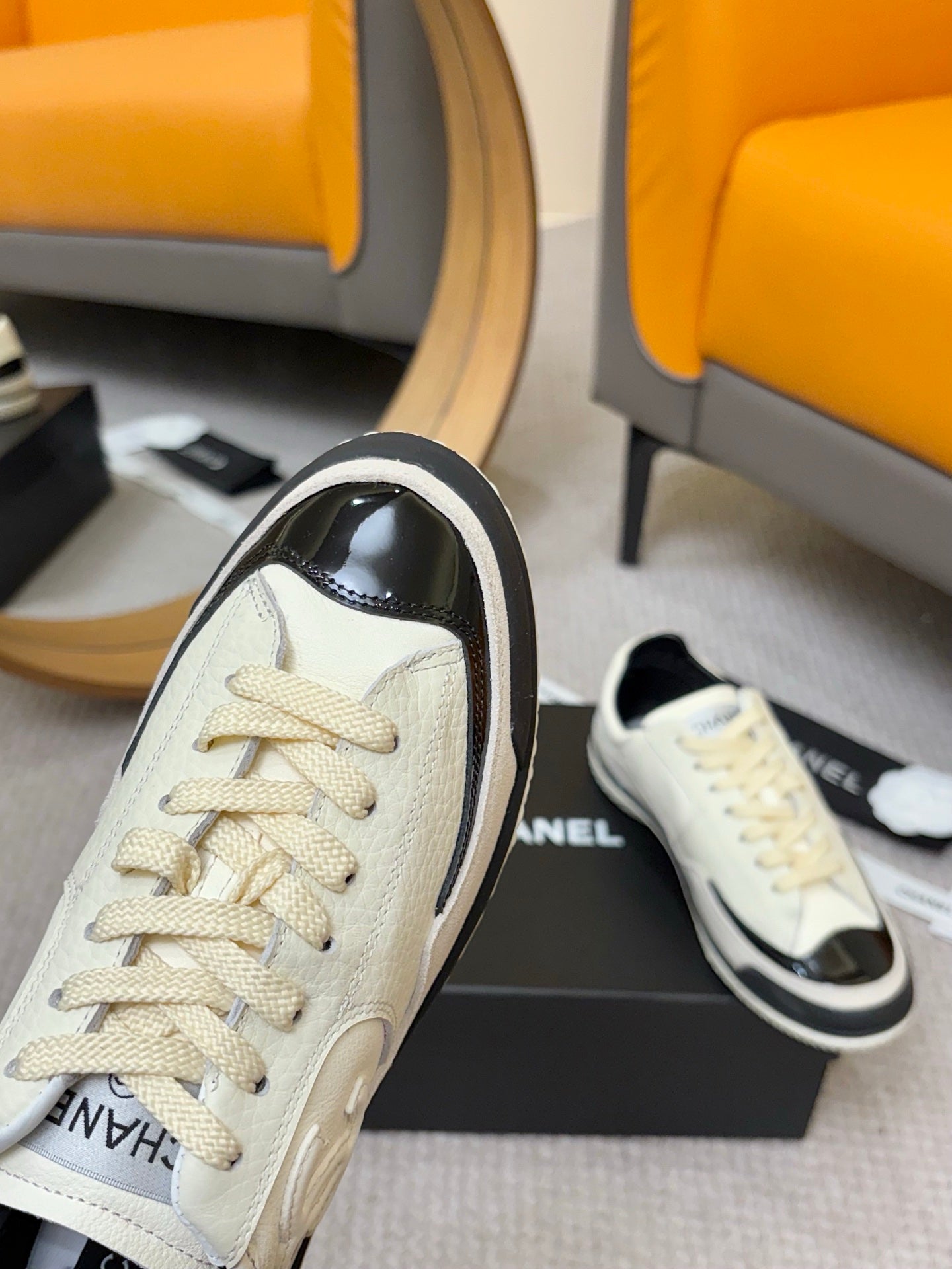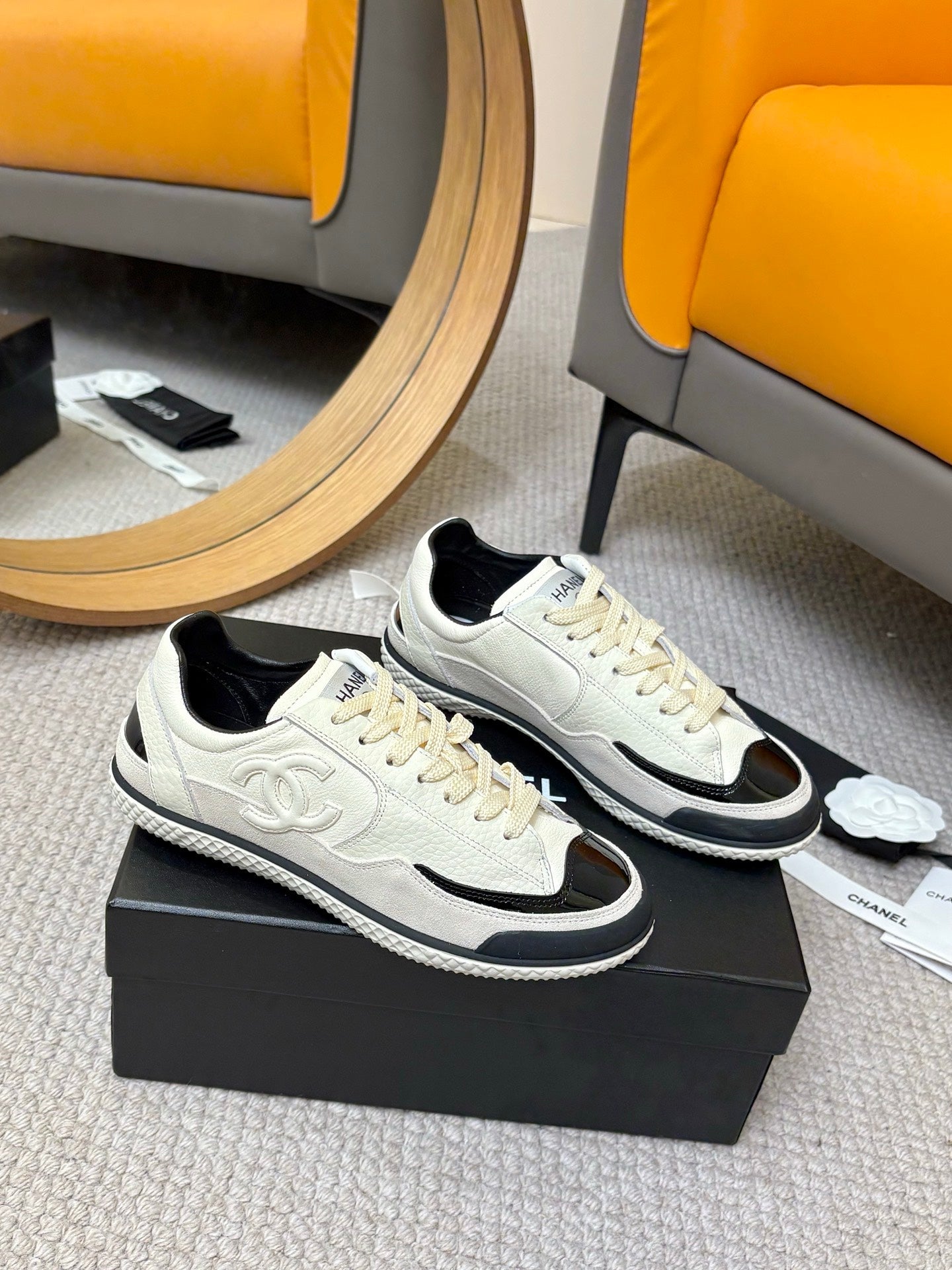 CC 25C Casual Sneakers Cream Black Cowhide Suede Patent Leather 528157