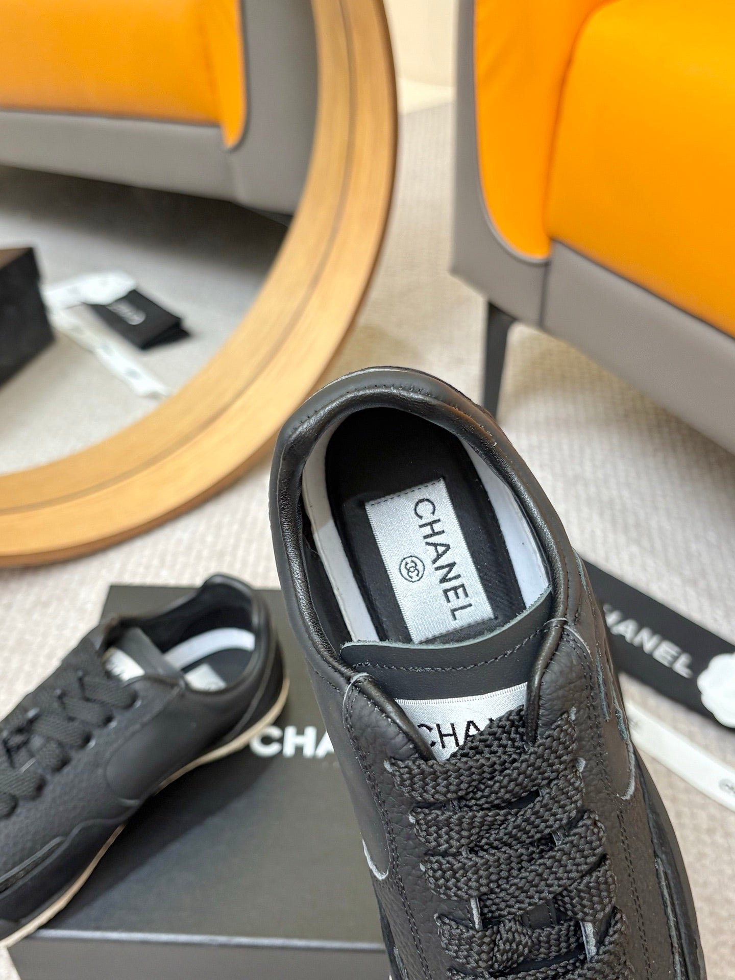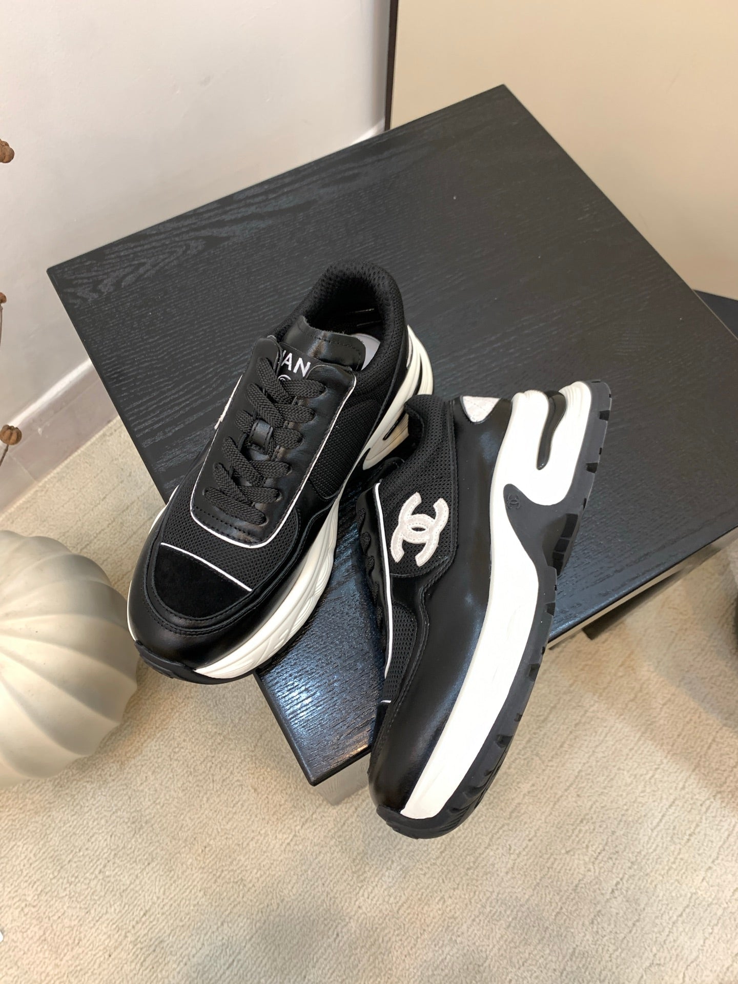 Chanel Sneakers Black White Leather And Mesh Fabric 537186
