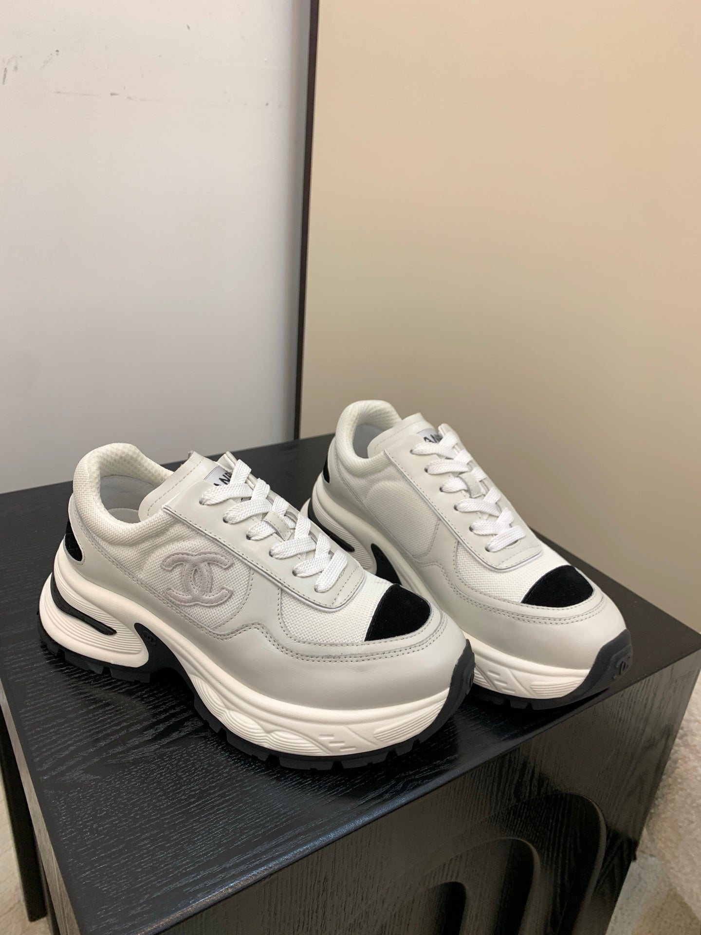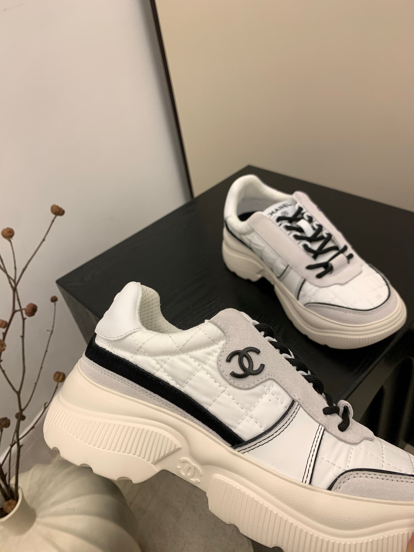 CC FW 25/26 Sneakers 40mm Black White Fabric Calfskin 500183