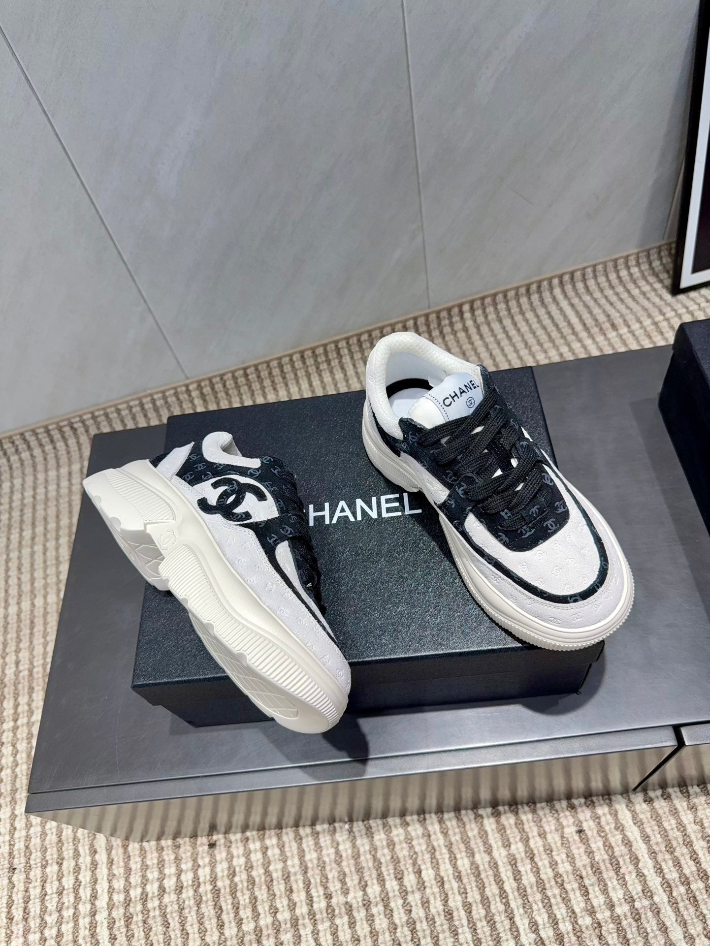 Chanel 2025 Sneaker Black and White Cowhite & Suede 507456