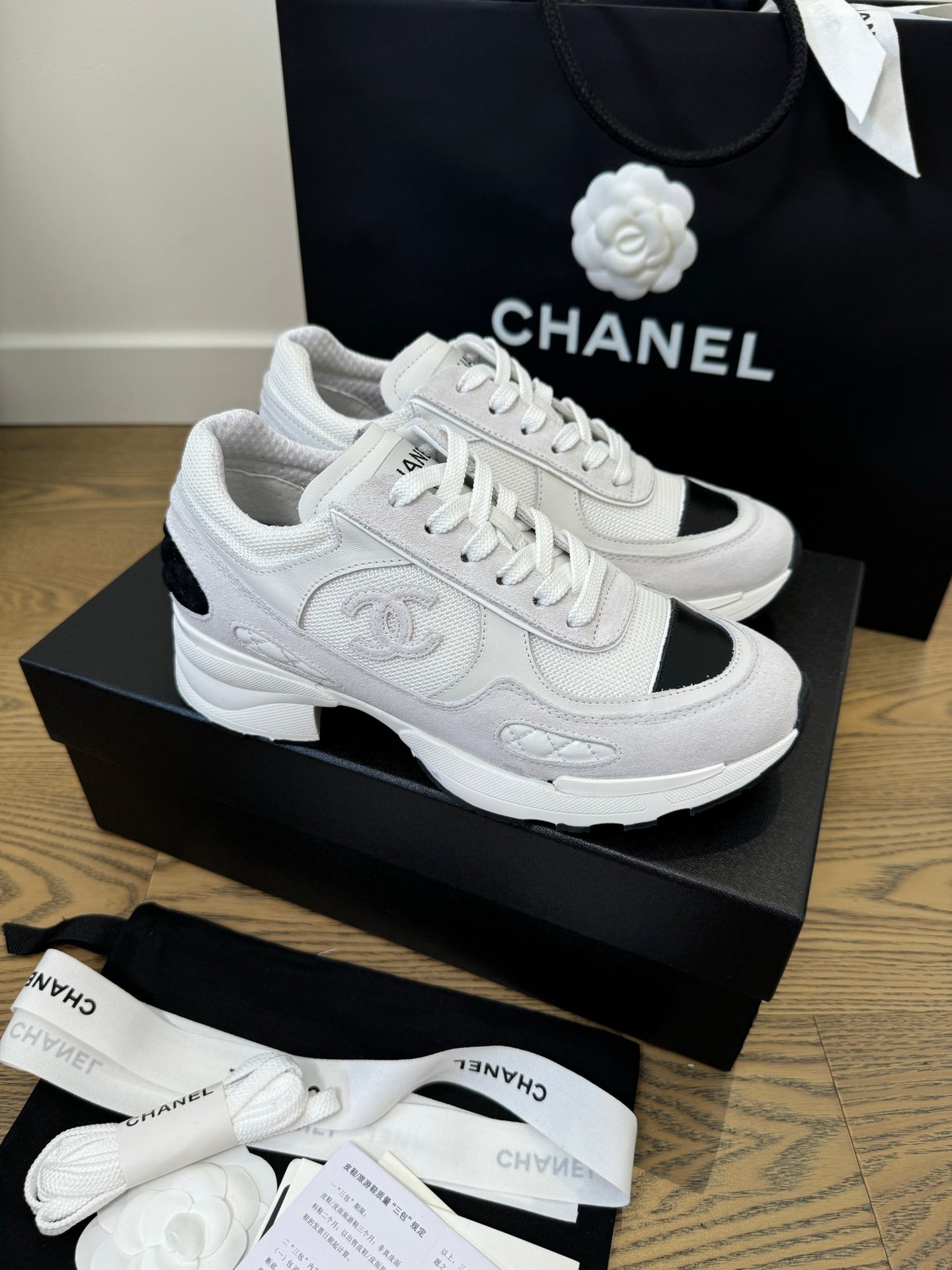 Chanel 2025 Sneaker Black mix White Cowhite & Suede 507458