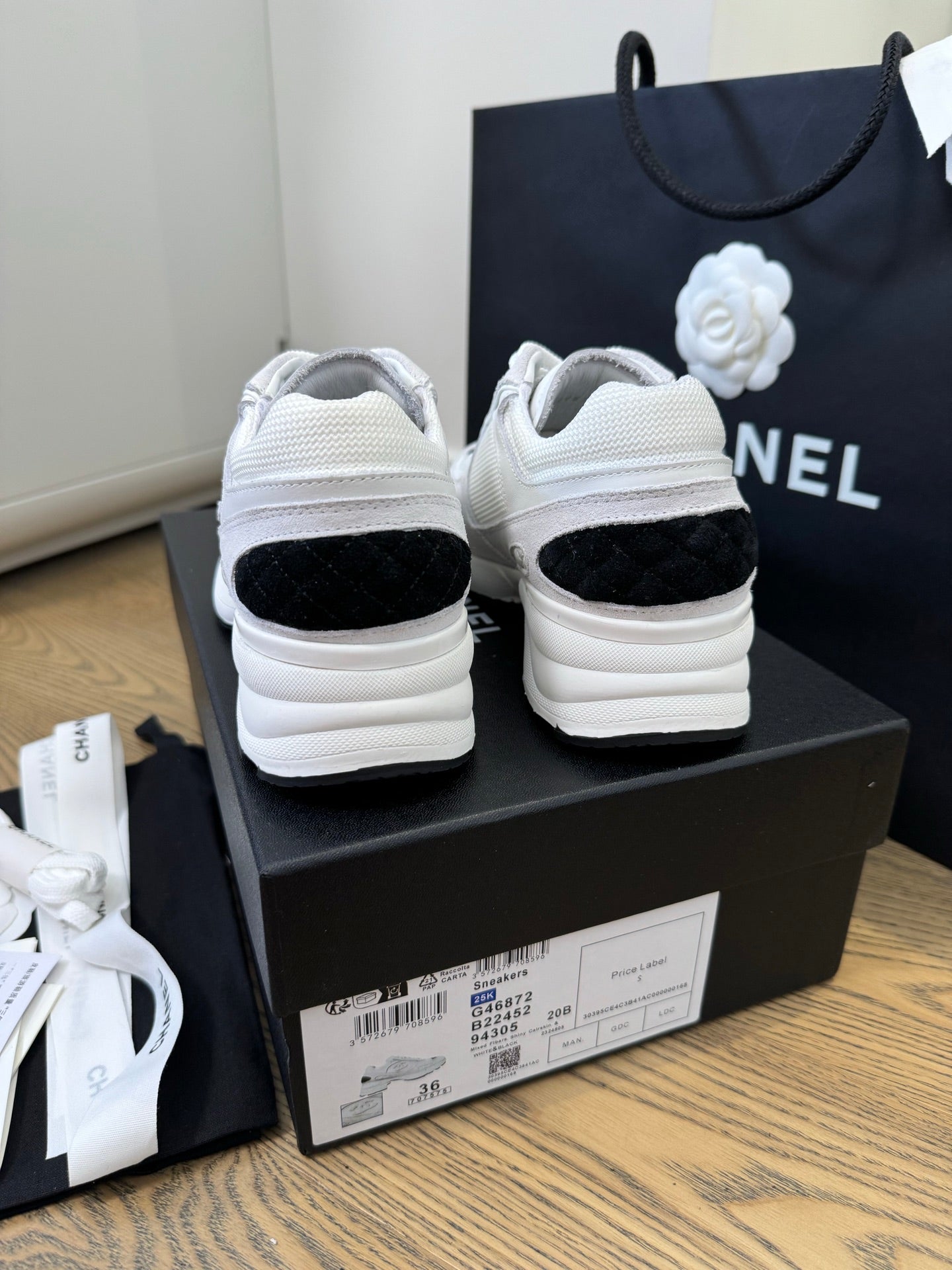 Chanel 25 Sneaker Black White Mesh Fabric 540320