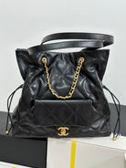 CC 25C Drawstring Backpack Black Lambskin Gold Hardware 243655