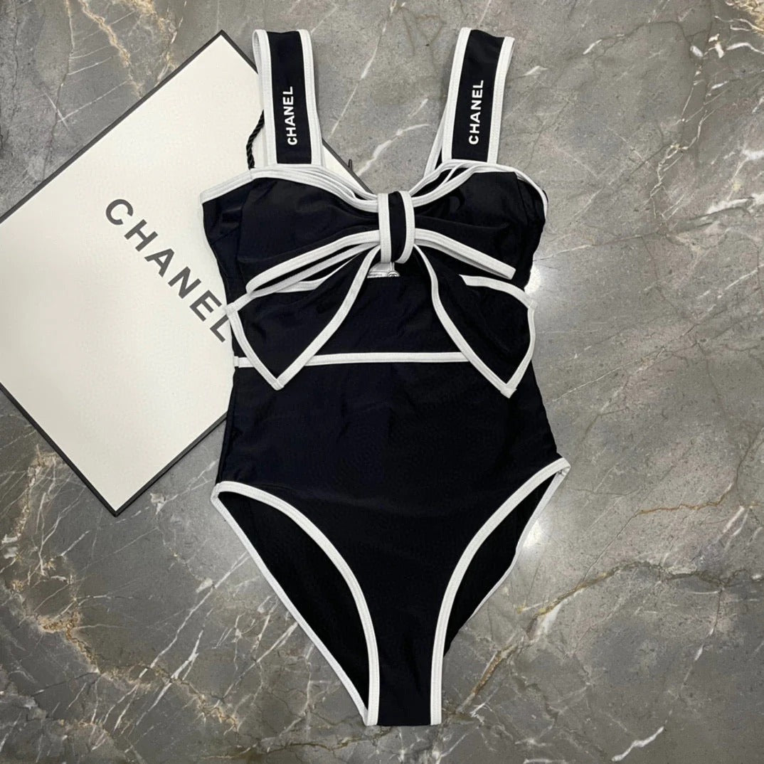 BODYSUIT SWIMSUIT IN BLACK AND WHITE TRIM 627829