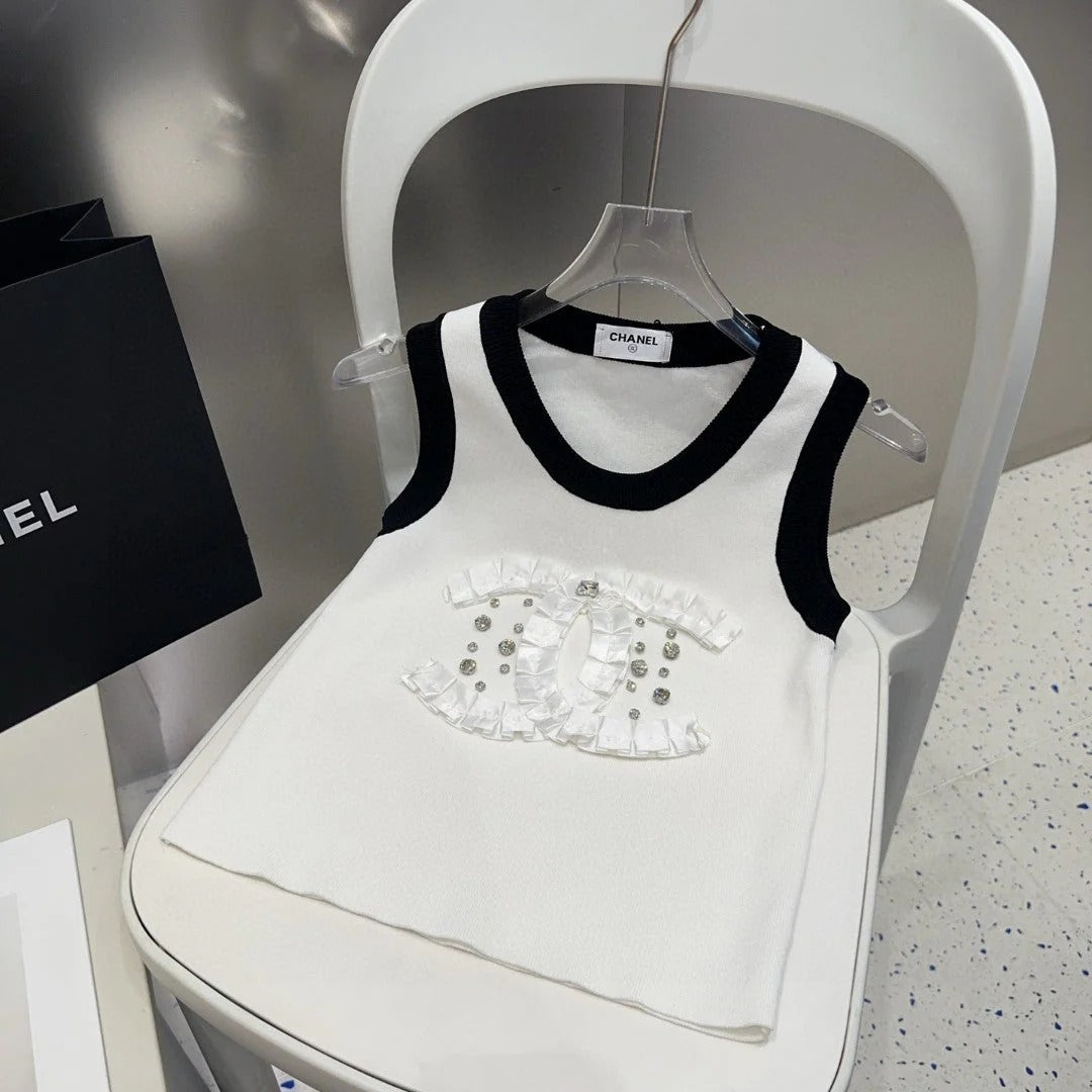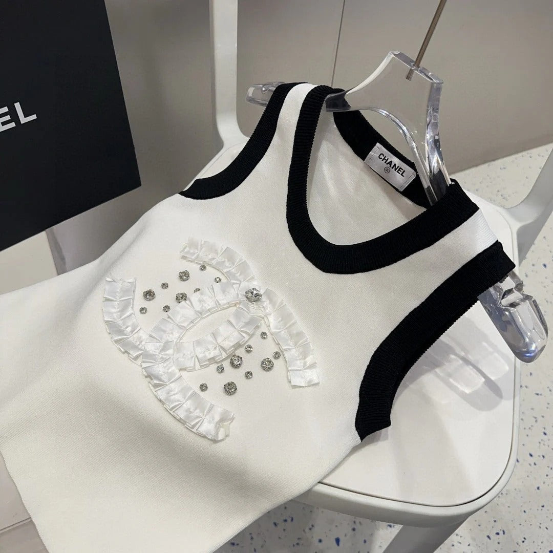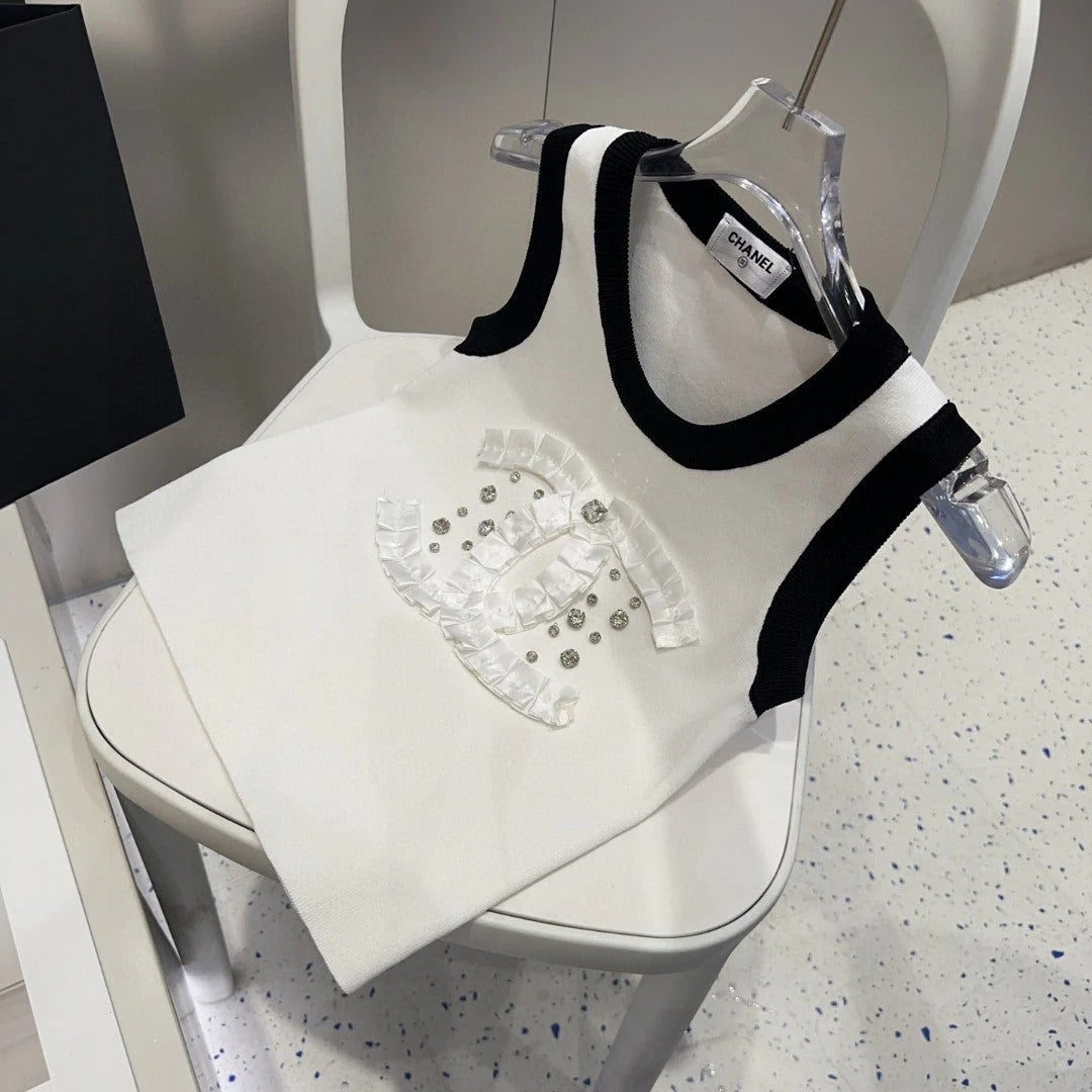 CAMISOLE 627702 IN WHITE COTTON RIBBED KNIT BLACK TRIM