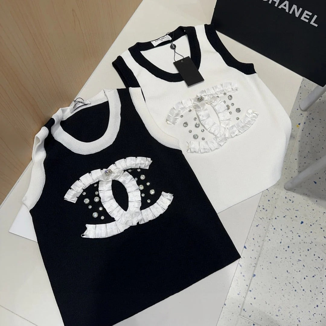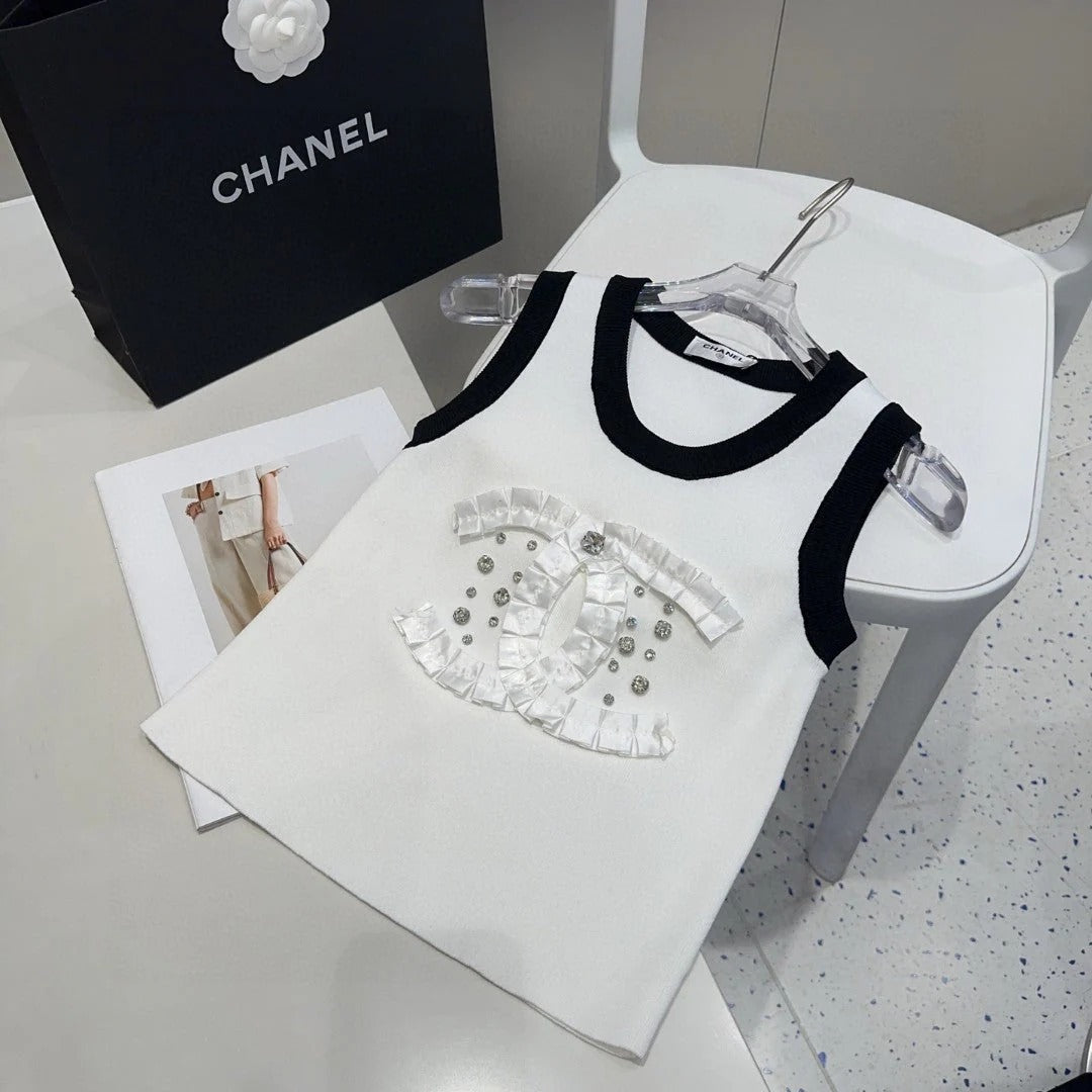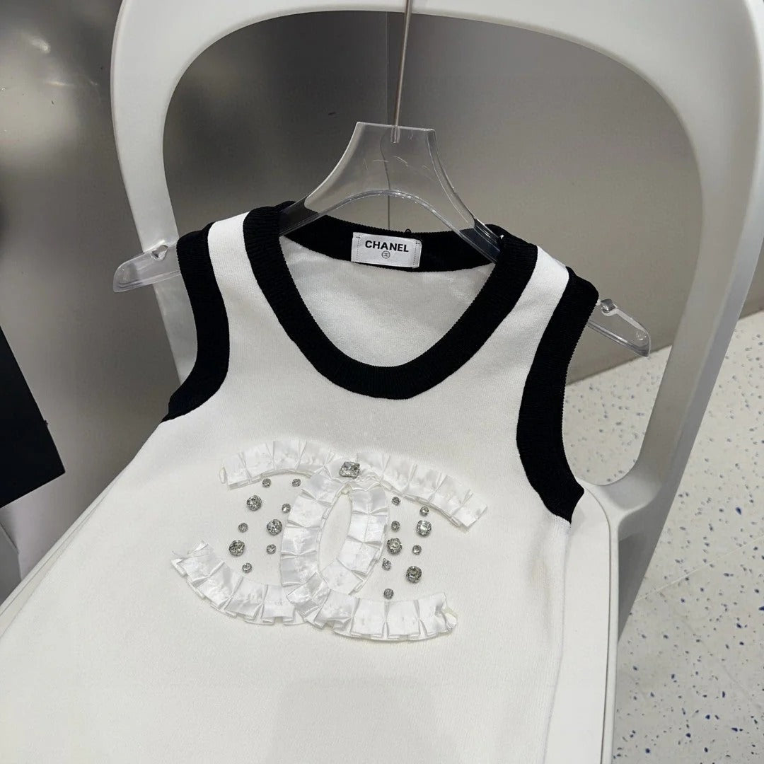 CAMISOLE 627702 IN WHITE COTTON RIBBED KNIT BLACK TRIM