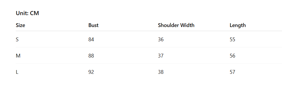 - Size : S, M, L