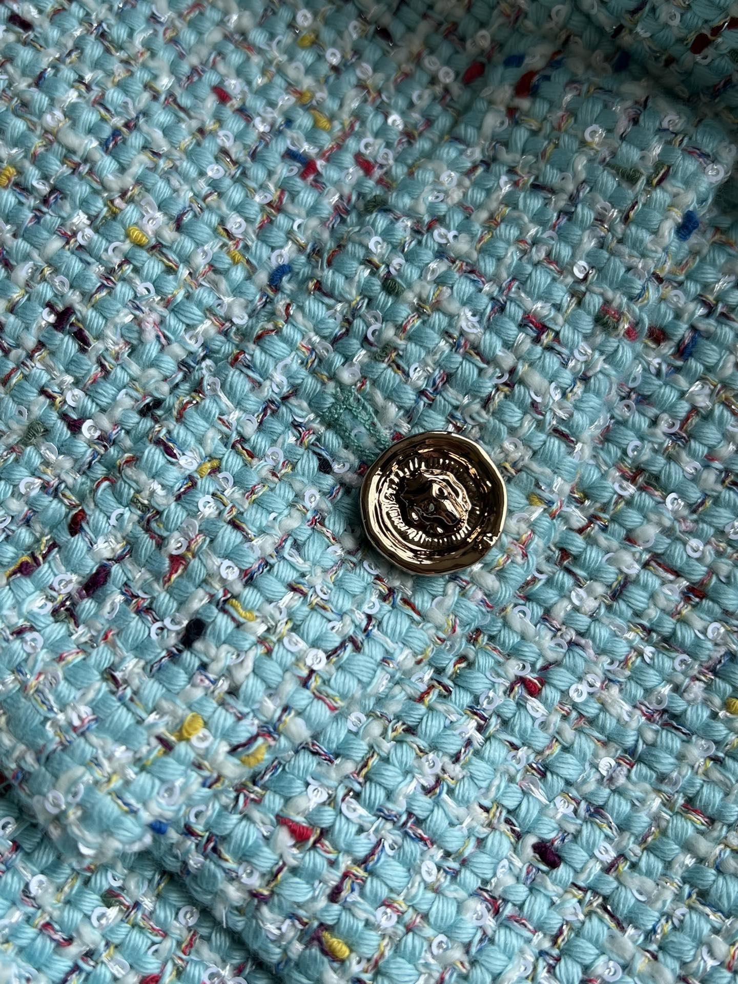 CC 25 Coat Blue-Green Round-Neck Wool Acrylic