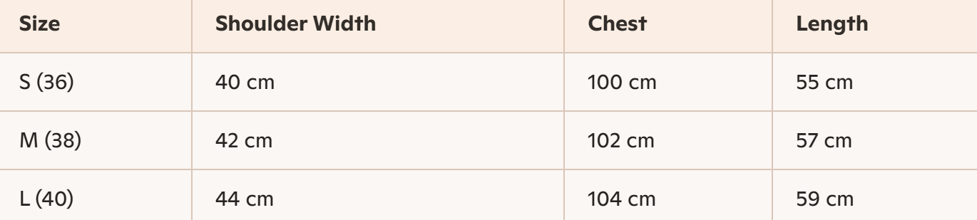 - For more information, please see the size guide below