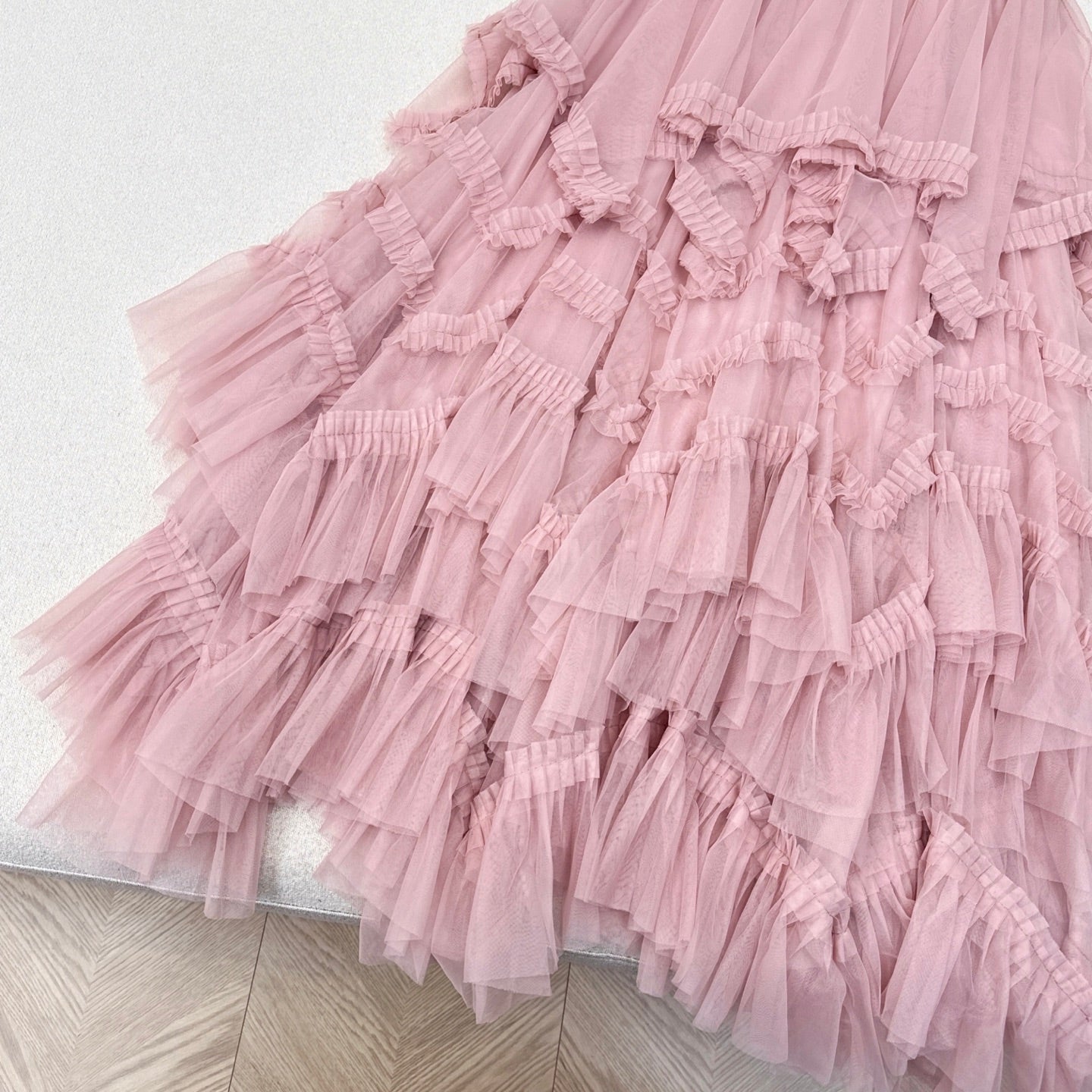 CC 25 Mesh Long Skirt Pink Polyester Fiber