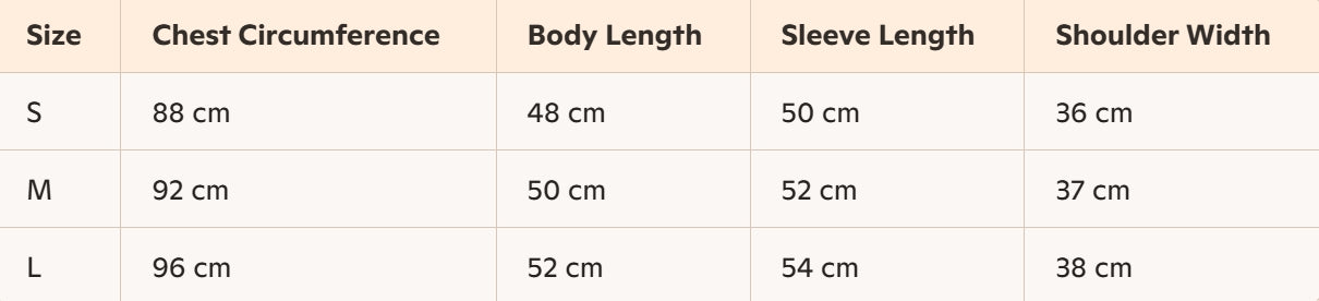 - Size : S, M,L