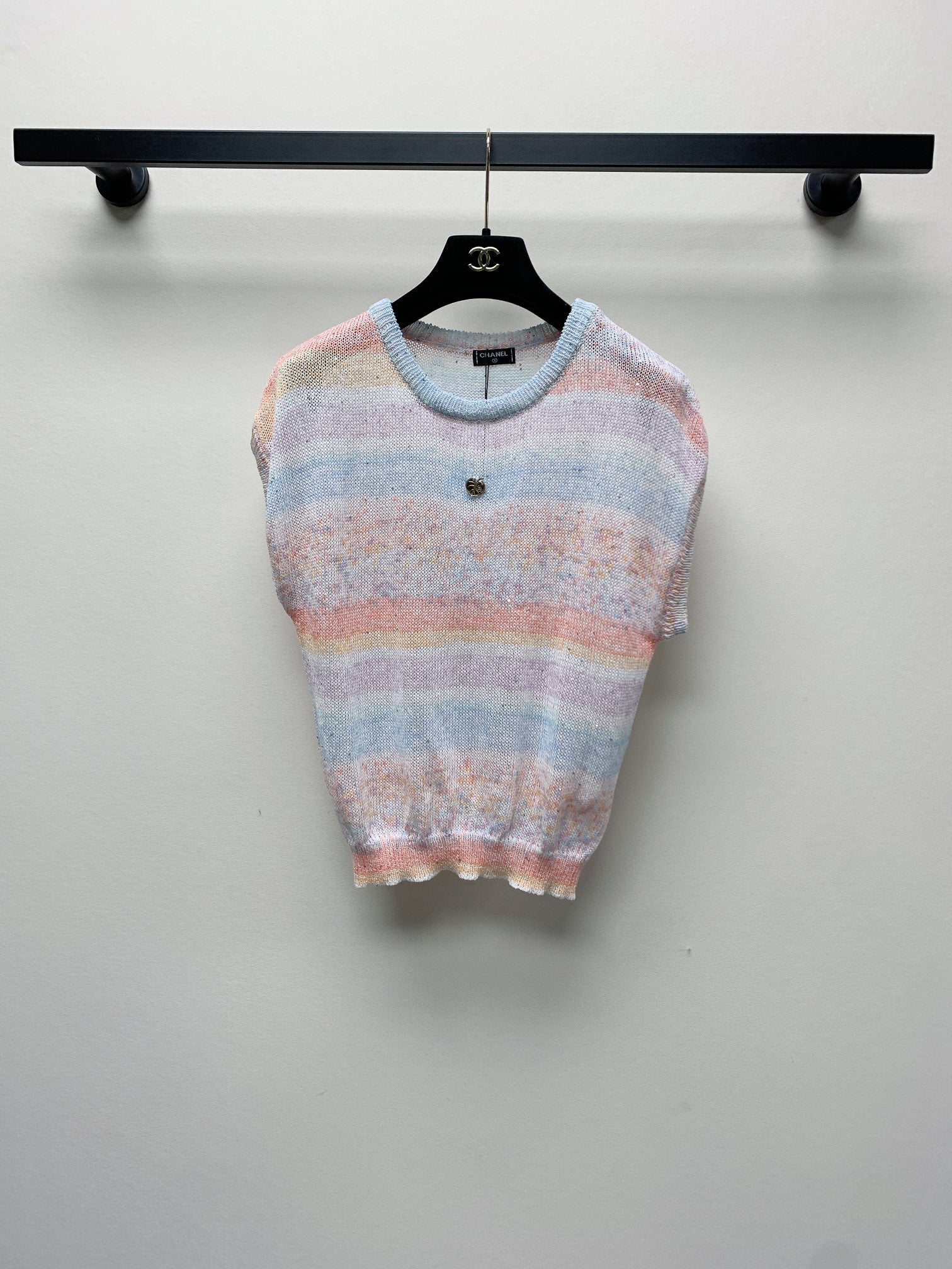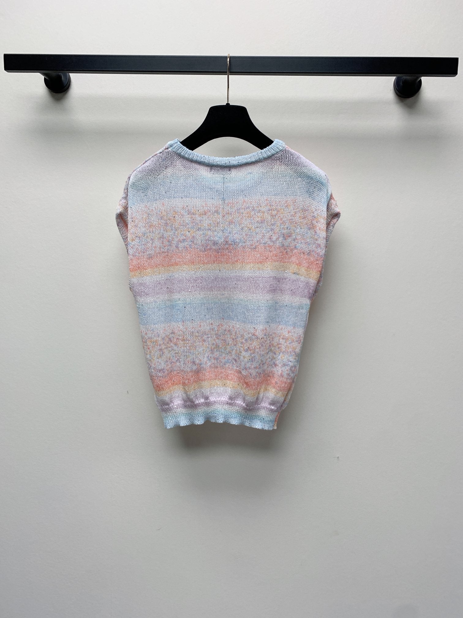 CC 25 Round Neck Contrast Color Stitching Sleeveless T-shirt in Colorful Tencel 277594