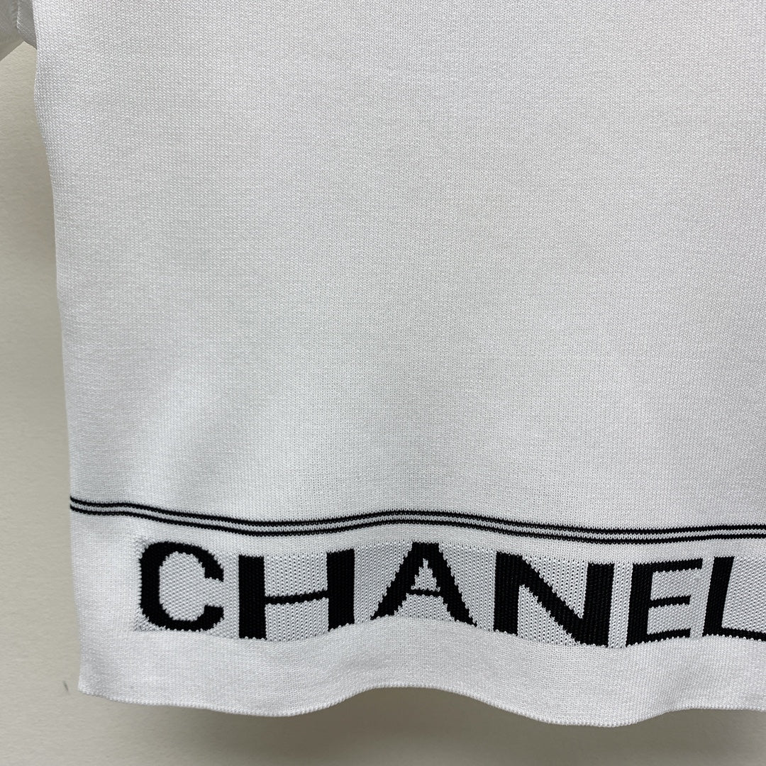 CC 25 Round Neck Knitted Embroidered Logo Top in White 277579